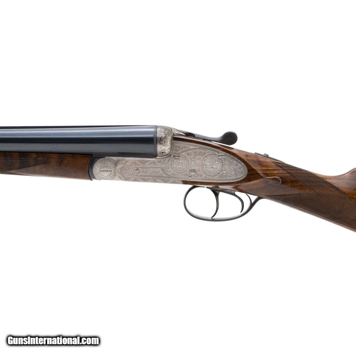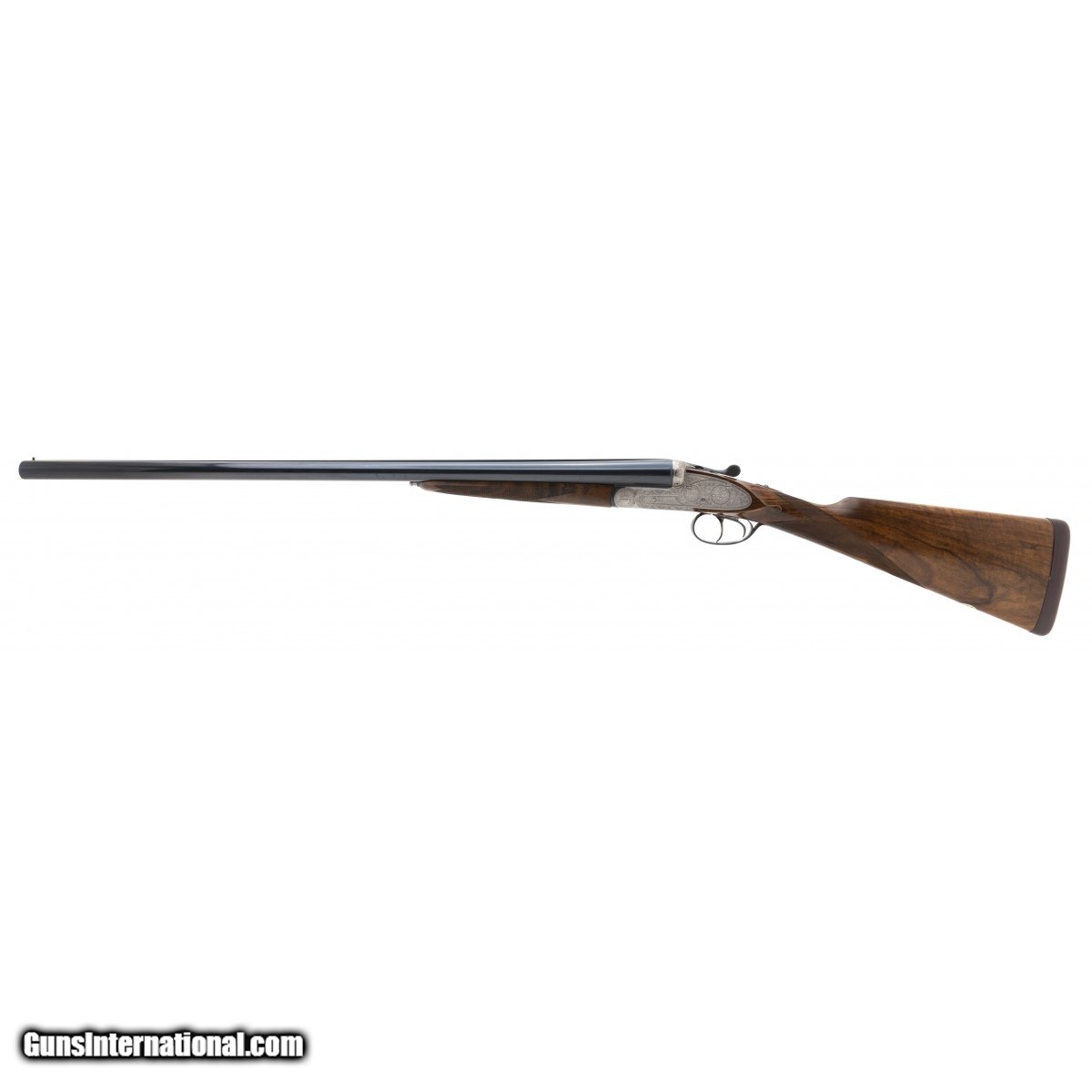 Description: " SN: 34272. Spanish made sidelock double. Has 27"" Mod/Imp Cyl barrel, scroll engraved coin finish sidelocks, double triggers and auto ejectors. Has a straight stock with leather covered pad, LOP is 14.25"". Shows light use, very good condition overall. Comes with canvas covered hard case. SOLD |