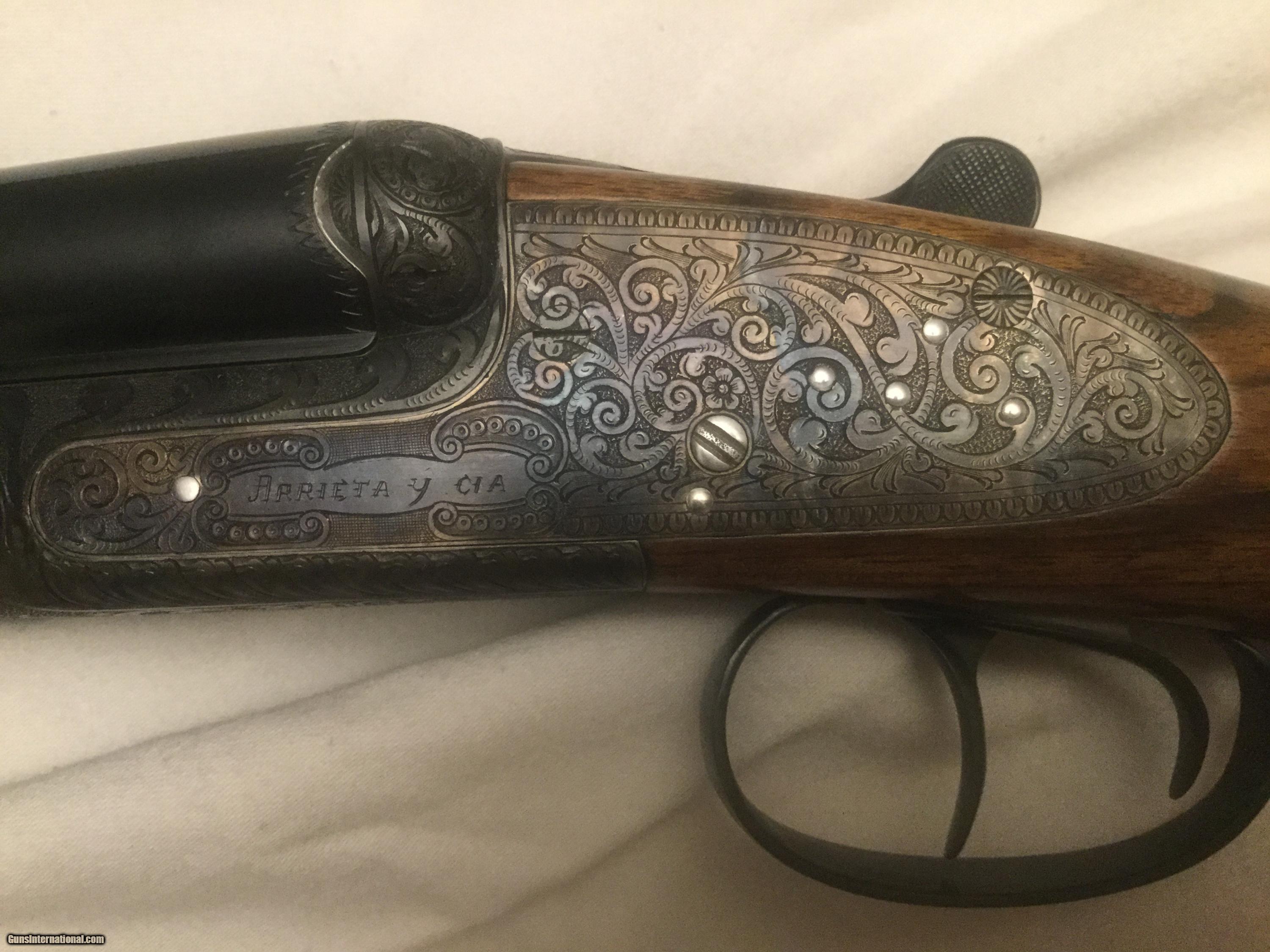 Description: Arrieta 28ga., 29" barrel side by side solid rib. Brand New, never been shot. Uplander round body, choked mod/IC, straight grip English walnut stock. Beautiful checkering on butt plate, double trigger, extractor. Arrieta y Cia, inscribed on left and rights sides. Case hardened receiver, beautiful scrolling on all metal surfaces. Gun is 100% brand new, never shot. Immediate delivery available all credit cards accepted with 3% charge or money order, or check. Will hold until check is cleared. 6lbs 2oz Contact Info: 406-590-2065 Dbselandergmail SOLD Condition: New |