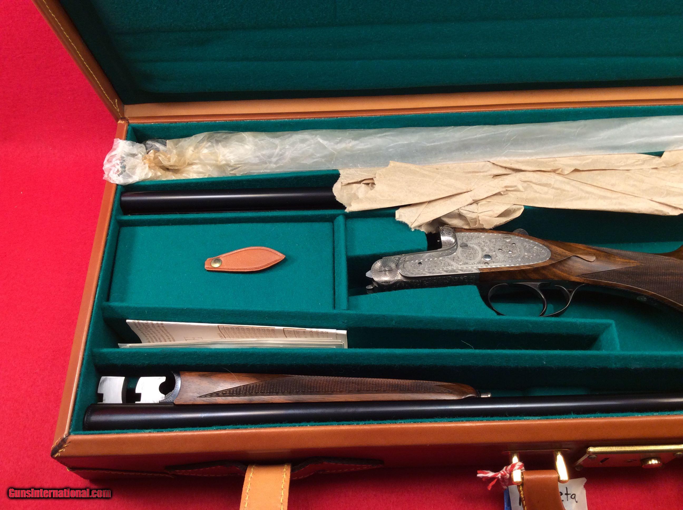 Description: Mountain Valley Armory is proud to offer this like new, factory cased Arrieta 578 side by side shotgun in 28 gauge with three factory barrels. All barrels are 27.5 inches in length and have a matt rib with a single bead attached. Barrel # 1 is choked skeet and skeet. Barrel #2 is choked full and improved . Barrel #3 is choked improved and modified.. All barrels are correctly numbered to the gun. Single trigger, extra fine line checkering on best quality select walnut straight stock and splintered forend, Checkered butt as well. Engraving is absolutely fantastic and wood and metal are as nice as the day the left the factory back in 1983. The current (and original) owner has stated he never fired this gun. The best way to reach us if you are interested in this firearm is to give us a call at 501-609-9595. We are open Monday through Saturday, 10 am to 6 pm CST. Please be sure to take a look at our other outstanding cased Arrieta offerings which include a .410 gauge - 3 barrel set and a pair of matching 20 gauge - 2 barrel set guns. SOLD |