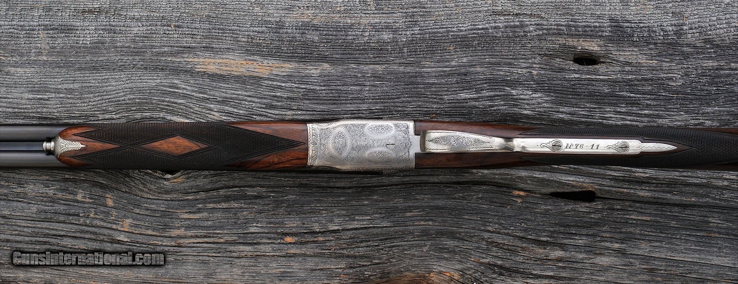 Description: Arrieta - 557 - 28 ga - Item Number: ARR57037611 Shotgun type: SxS Action: Sidelock Ejectors: Yes Trigger: Double Grip: Straight Grip Forend: Checkered Lop: 14 5/8 " Pad thickness: " Type of butt: Checkered Wood Drop comb: 1 3/8 " Drop heel: 2 1/4 " Cast amount: 1/4 " Cast: Off Weight: 6 lbs, 6 oz Manufactured in: Spain Manufacture Year: Finish: Coin Overall condition: Very Good Stock condition: Very Good Metal condition: Very Good Stock: Original finish Metal: Original finish Type of Case: none Extra barrels: 0 Barrel info: Gauge: 28 ga Chamber: 2 3/4 " Length: 29 " Chokes: IC/M Rib type: Concave Comments : Gun is in very good condition with a few light blemishes. Oval is initialed. SG-86 SOLD |