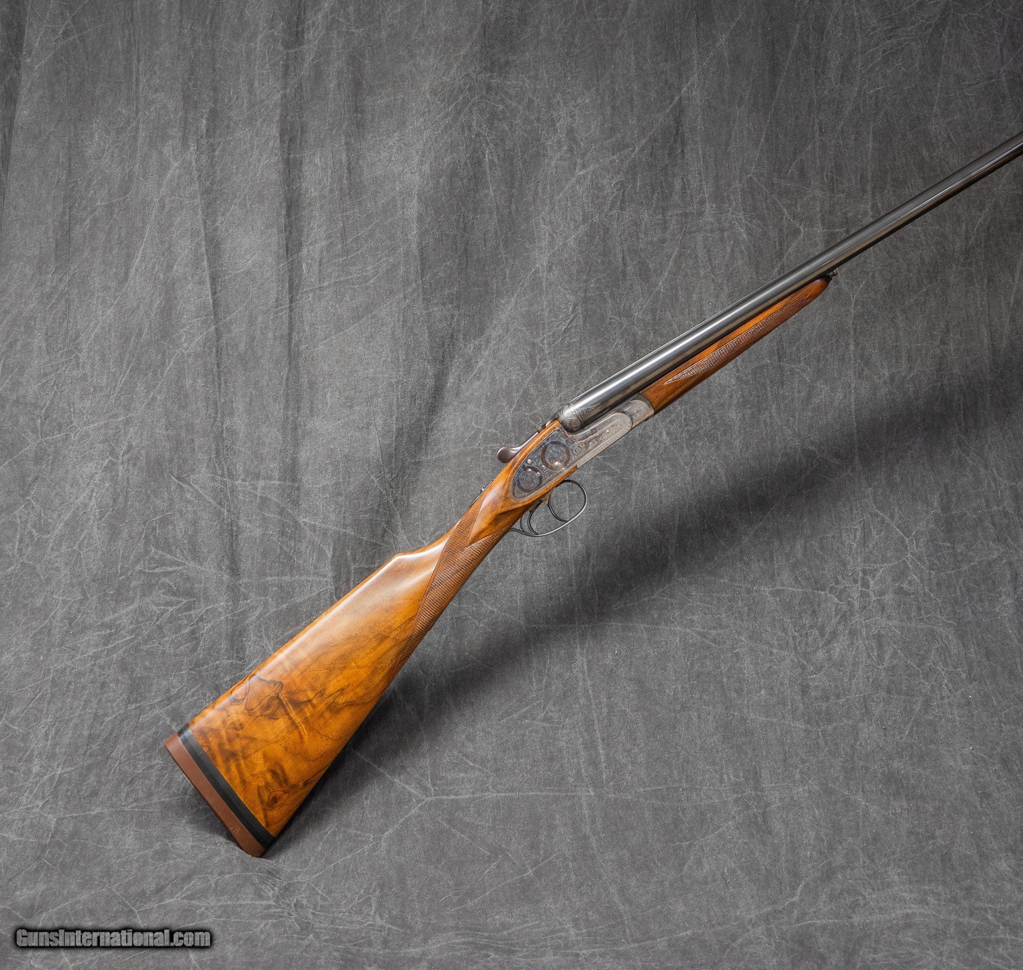 Description: Specifications Maker:ARRIETA Model:578 Gauge/Caliber:20 GA Barrel Length:27" Chambers:2 3/4" Rib Design:SOLID CONCAVE MATTED Weight:5LBS 14OZS Bore/Chokes Right/Bottom:.616 .005 I/C Left/Top:.617 .010 LT MOD Stock Dimensions Drop At Comb:1 3/8" Drop At Face:2" 4 1/2" Drop At Heel:2 1/2" Cast At Face:1/8" OFF 4 1/2" Cast At Heel:3/8" OFF Length Of Pull:14 3/4" Pitch:2"/ 4 DEGREES Special Features: HAND DETACHABLE SIDELOCK COLOR CASE HARDENED FINISH ENGLISH STYLE ROSE AND SCROLL ENGRAVED DOUBLE TRIGGERS ARTICULATED FRONT TRIGGER MANUAL SAFETY HIGHLY FIGURED ENGLISH STRAIGHT STOCK & SPLINTER FOREARM MADE IN SPAIN CONDITION: EXCELLENT Circa:1978 / SN 35193 Number:P9136 Price: $ 5495.00 SOLD |