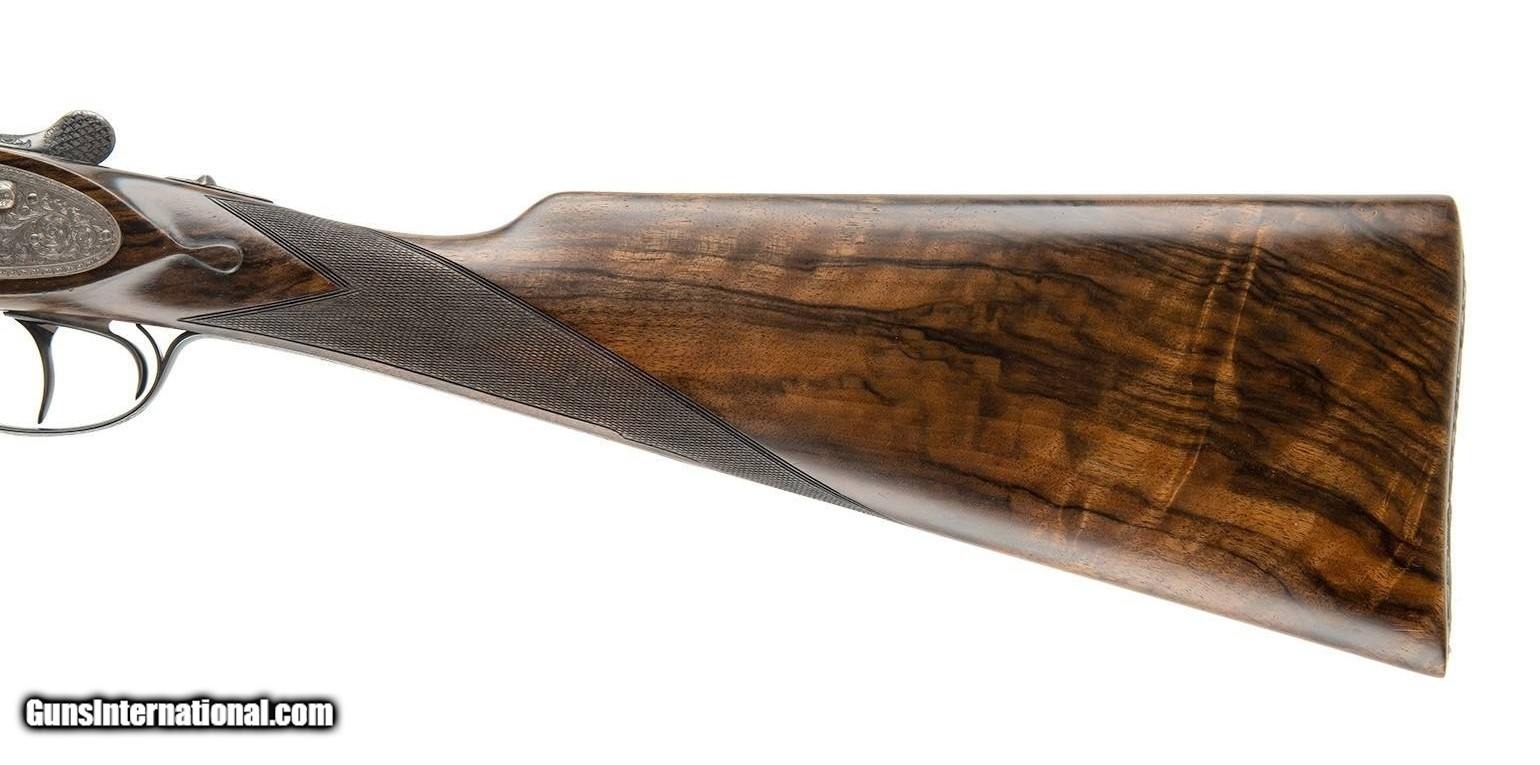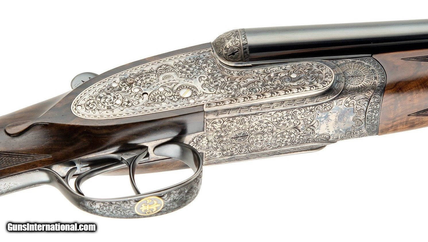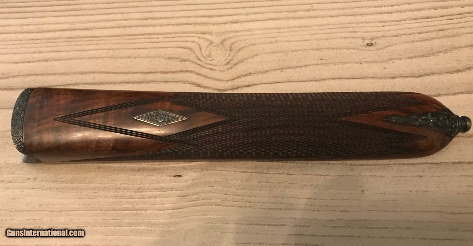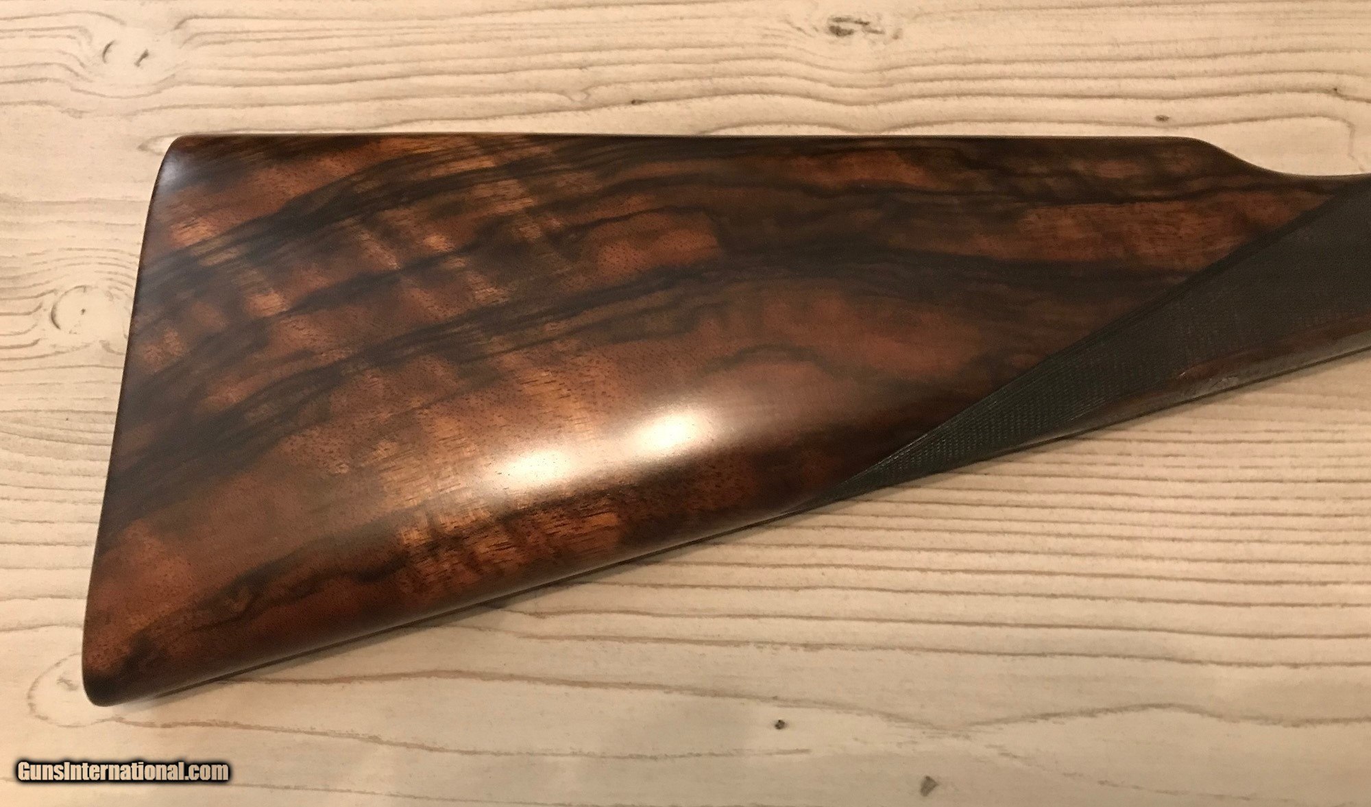 Description: Selling a fine condition Arrieta 802 20-gauge SxS shotgun with 28" IC/M barrels. This is one of Arrieta's nicest models with Holland style Royal engraving. It has a self-opening action. I've only owned this gun a short while but the previous owner(s) must of carried it alot more than they shot it. The barrel blueing is almost perfect and the bores as well. The wood has only a couple of very slight handling marks and the finish is even and lusterous. It appears to have had a few extra coats of oil rubbed in over the years but well done. The checkering is unmarked. The case colors are quite faded with approximately 1/2 of the original colors remaining. Everything about the gun functions as it should and the action remains snug and there is no looseness with the forearm removed. The first 6 pics are from the dealer I purchased the gun from. The condition remains unchanged since I purchased it from him a few months ago. SOLD Manufacturer: Arrieta Model: 802 Barrel Length: 28 Chambers: 2-3/4 Ejectors: automatic ejectors Metal Condition: 99% with faded colors Wood Condition: 98% Bore Condition: 99%+ Action: sidelock Triggers: double, front hinged Stock: straight English Stock Comb: 1-5/8 Stock Heel: 2 Stock Cast: slight cast off Fore End: splinter Butt Pad: checkered LOP: 14-3/4 Rib: concave Weight: 6 lbs. 0 oz. Manufacture Date: 1999 Chokes: fixed Choke Left: IC Choke Right: M Engraving: Holland Royal |