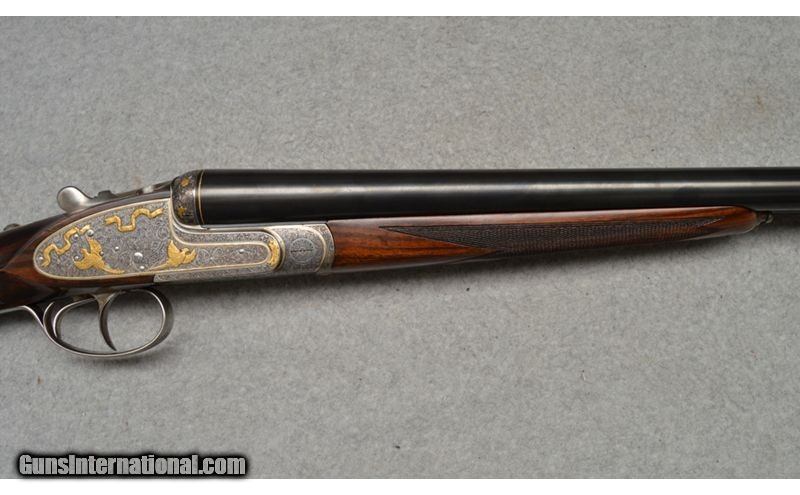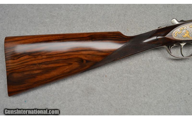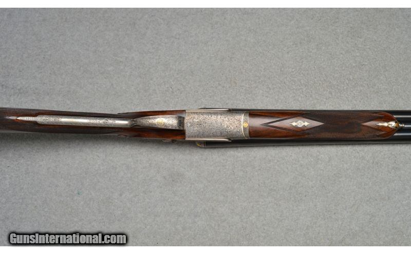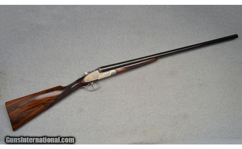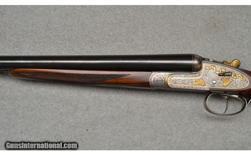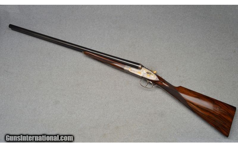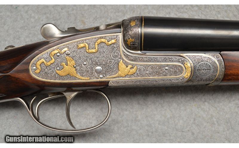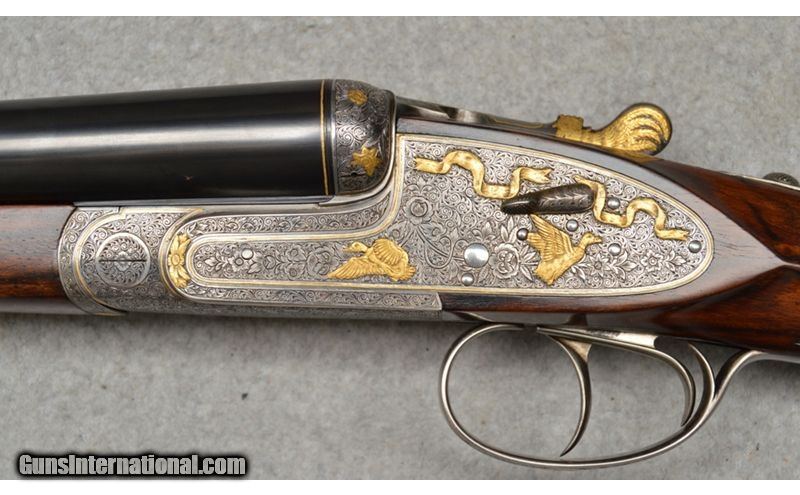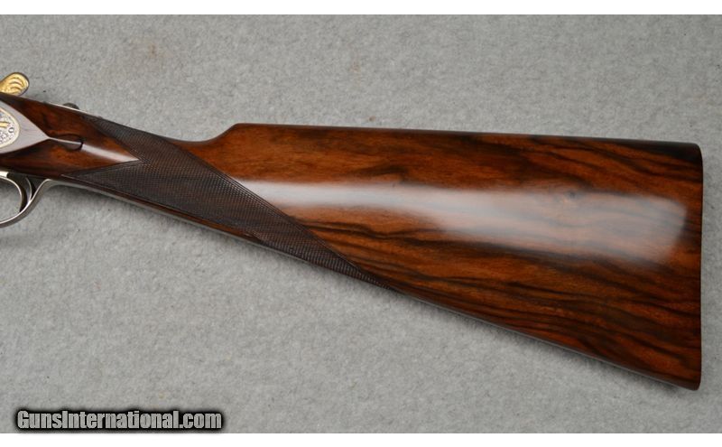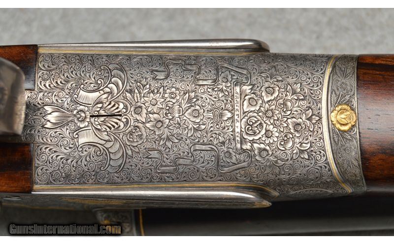 Description: Arrieta Best quality sidelock self opener gold ribbon engraved, 12 gauge shotgun pair are in excellent condition. The guns feature straight grips, skip line checkered butts, a coin finished receiver profusely engraved and has gold inlaid with ribbons, flowers, and different kinds of birds. Only minor blemishes on Gun 2's barrel. SOLD AS A PAIR. WILLNOT SEPERATE. Gun 1; SN:35185, $7,999.99 Gun 2; SN:35186, $5,999.99 TOTAL: $13,999.98 12 Gauge SOLD Metal Condition: Excellent Wood Condition: Excellent Barrels: 27" Both Stock Dimensions: 13 7/8" LOP Both Fore End: Wooden with a checkered pattern Butt Pad: Wooden Weight: 7lbs Sights: Single bead Chokes: MOD, IC. 1/4 , MOD Item Location: Fort Worth, TX |