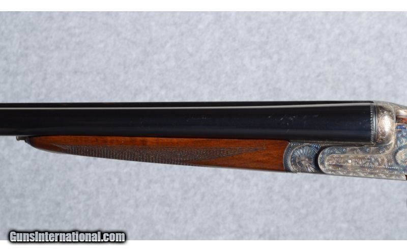 Description: Arrieta Gunmark Sable 25 Sidelock 12 Gauge in very good condition save for some light scratches in the metal and wood. Features a 25" barrels with a Churchill rib and silver front bead sight. An ejector gun with double triggers, articulated front, auto-resetting safety, cocking indicators and push-button forend release. The shotgun is stocked with a straight-grip deluxe walnut with a blind brass initial plate, wrap-around extended checkering and muli-point checkering on the splinter forend. The stock measures 14 3/4" LOP; 1 1/2" DAC & 2" DAH and weighs 6 Lbs. 3 Oz. SOLD Caliber Info: 12 Gauge Chambers: 2 3/4 Metal Condition: Very good. Has some light scratches. Wood Condition: Very good but with a small number of scratches. Bore Condition: Very good, bright and shiny. Barrels: 25 Triggers: Double triggers. Stock: Straight grip deluxe walnut. Stock Dimensions: 14 3/4" LOP; 1 1/2" DAC & 2" DAH. Fore End: Splinter. Butt Pad: Checkered wood-butt. Weight: 6 Lbs. 3 Oz. Sights: Churchill rib with front silver bead sight. Chokes: Mod. & Imp. Mod. Item Location: Avon, OH |