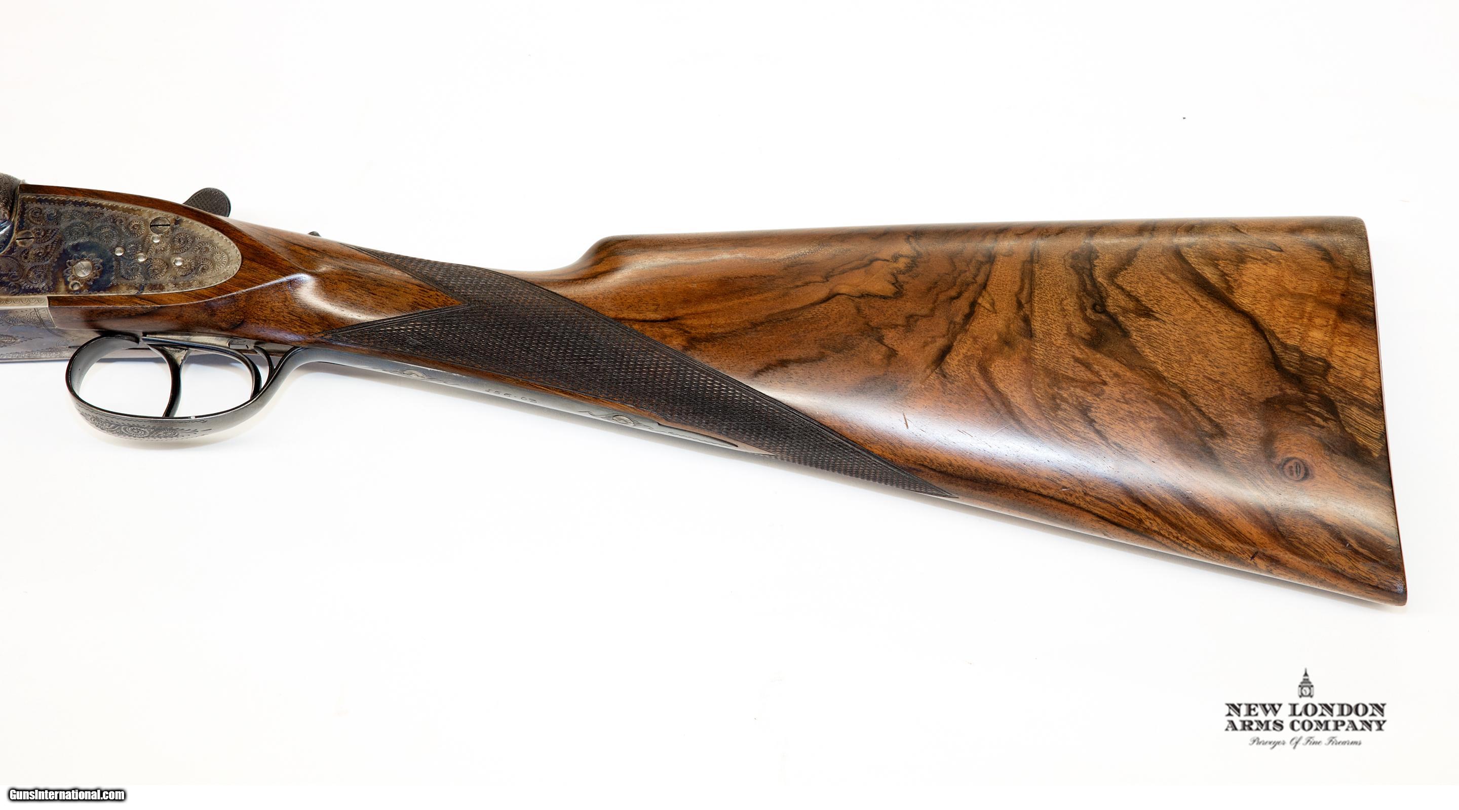 Description: Sale Pending!!!!!!!!! Beautiful little Arrieta in a nice factory leather case (with canvas cover) in the unusual 16/20 combination on a 20G frame. The gun is in excellent condition. Barrel #1 (marked in gold) is 28", 16G, choked .005 and .015 Barrel #2 is 28", 20G, choked .005 and .008. Each barrel has a dedicated fore end. Gun has very nice case colors. Awesome piece of wood. Quite a value for the money. SOLD Serial Number: 156-03 Chambers: 2 3/4 Ejectors: Yes Action: Sidelock Triggers: Double Stock Comb: 1 5/8 Stock Heel: 2 1/4 Stock Cast: Neutral Butt Pad: Wood engraved LOP: 14 3/4 Rib: Concave Weight: 6 lbs. 2 oz. Manufacture Date: 2003 Case: Leather Factory |
