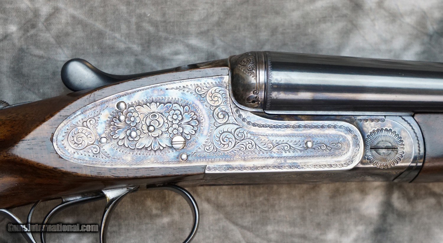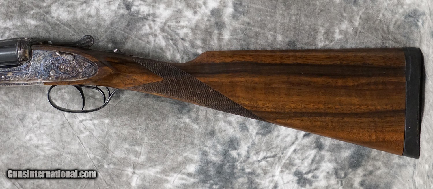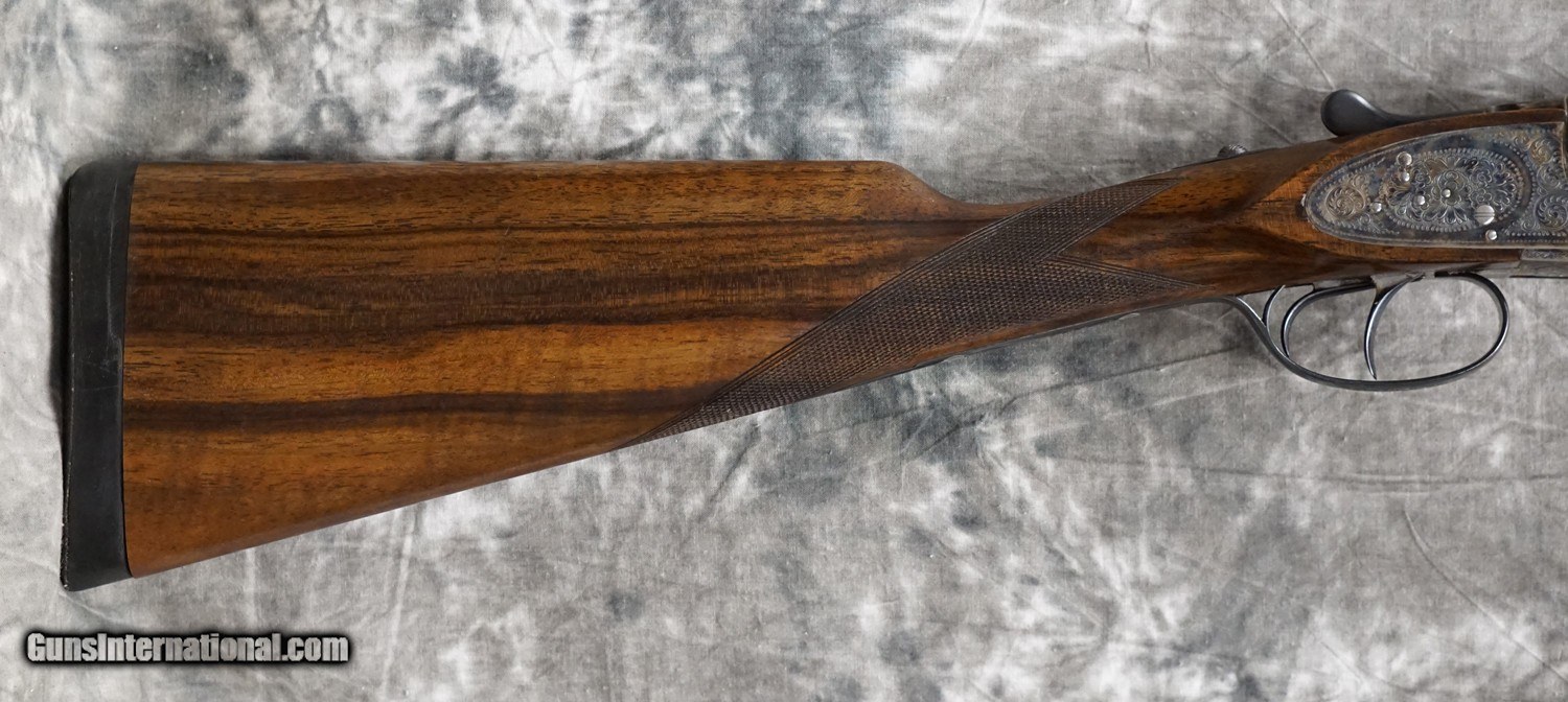 Description: Pre-Owned Arrieta Model 557 Side-Lock Ejector Field 20GA with 28" factory swamped rib barrels, fixed chokes (SKT/IC). Factory Case-Color hardened action with hand-detachable locks, English rose and scroll engraving with double triggers, minor finish wear-75%+ original case-color hardening remains. Factory English straight-hand stock to recoil pad and splinter forearm. Minor finish wear and handling marks on stock. Does not include case. SOLD Shotgun Gauge: 20 Gauge |