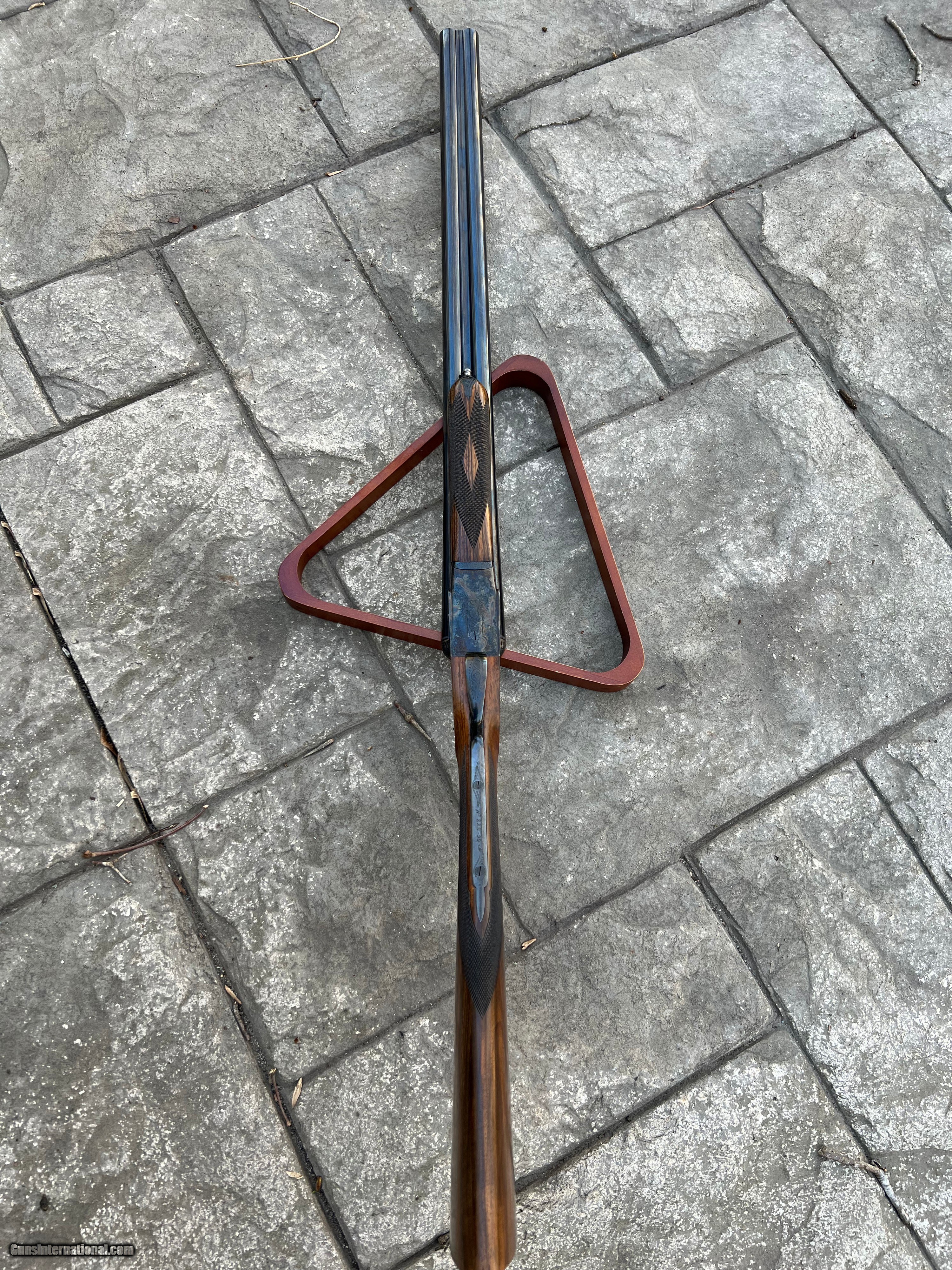 Description: SOLD PENDING FUNDS Arrieta Model 570 side lock, 12 gauge, 26" barrels, Improved Cylinder/Cylinder, ejectors, auto safety, splinter fore end, straight grip, double triggers, checkered butt, cast off for right hand shooters, LOP 14 1/2, DAC 1 1/2, DAH 2 5/8, 6 lbs. 8 oz., beautiful engraving, attractive Spanish straight grain stock with some handling marks, bluing exellent, case coloring excellent, no case, well cared for and looking for a new home. Barrels are a beautiful blue and shine brightly, which reflected the outdoor light and the trees overhead. Please check my other listings. Payment by certified check, personal check or postal money order. Shipping is $50 to your FFL. SOLD Shotgun Gauge: 12 Gauge Manufacturer: Arrieta Model: 570 Barrel Length: 26 Chambers: 2 3/4 Ejectors: Yes Condition: Very Good plus Metal Condition: Excellent Wood Condition: Very Good + Bore Condition: Excellent Triggers: Two Stock Comb: 1 1/2 Stock Heel: 2 5/8 Stock Cast: Off Fore End: Splinter Butt Pad: None LOP: 14 1/2 Sights: Front bead Choke Left: Improved Cylinder Choke Right: Cylinder Engraving: Beautiful Scroll Case: No |