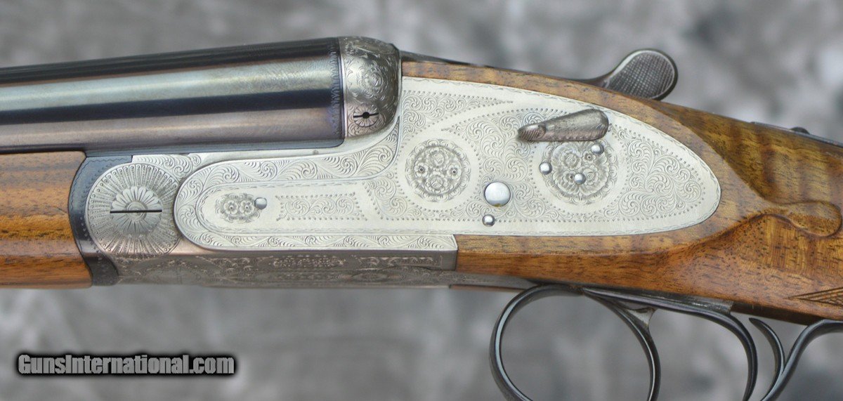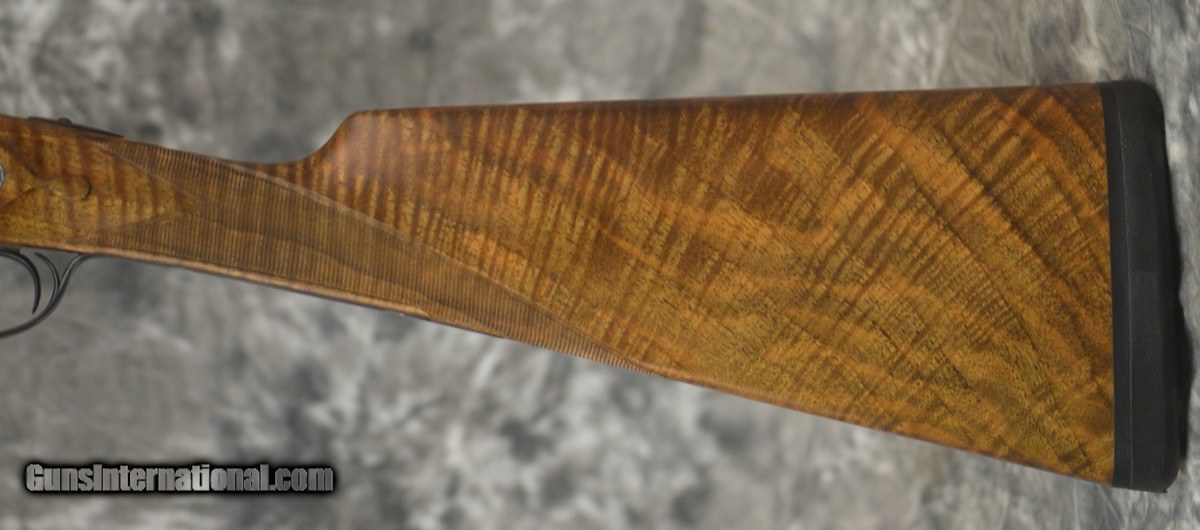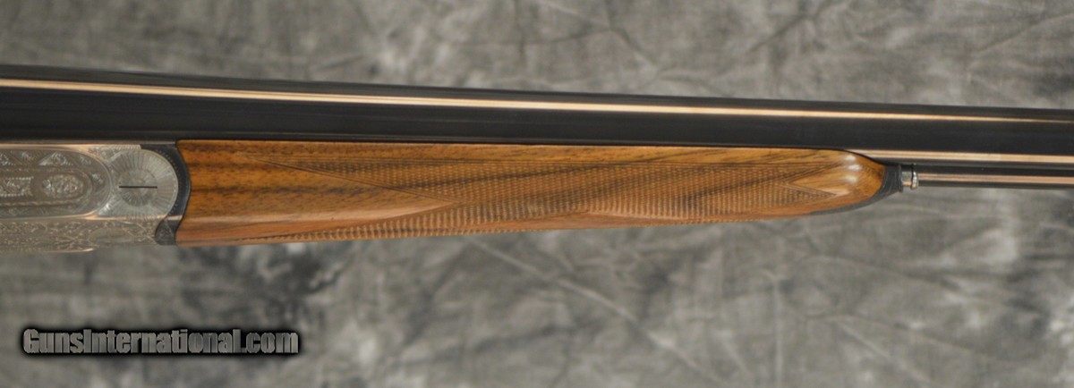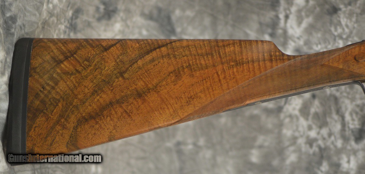 Description: Pre-Owned Arrieta Model 570 Game 20GA with 27 1/2" fixed choke (IC/M) barrels, Churchill solid rib with game bead. Coin finished 5-Pin side-lock action with English scrolls and Hand-Detachable locks, double triggers. Outstanding factory English straight-hand stock to recoil pad, splinter forearm. Overall outstanding condition with only very minor handling marks. Does not Include case. SOLD |