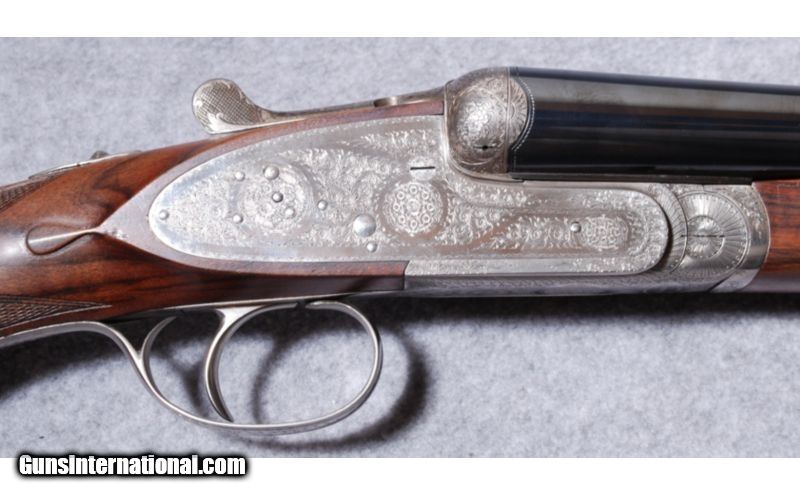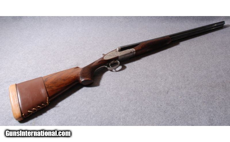 Description: Gun has 3 lops, was shortened at some point then added back with a leather boot to cover. ( see pictures )Gorgeous scrollwork; finest "Purdey" style rose and scroll engraving patternSingle non selective triggerChrome lined chopper-lump barrels SOLD Manufacturer: Unknown Caliber Info: 12 Gauge Chambers: 2 3/4 Metal Condition: Excellent with very little wear. Wood Condition: Good, stock was shortened by previous owner, spacer/pad installed and covered with leather butt-pad. Bore Condition: Excellent Barrels: 27.5 side x side Triggers: Single non selective Stock: Checkered walnut, hand rubbed oil finish Stock Dimensions: 12.5", 14" and 14.75" (with leather pad) Fore End: Checkered walnut, hand rubbed oil finish Butt Pad: Leather lace-up Weight: 8 lbs Sights: Front bead & mid bead Chokes: Full / Modified Extras: Hard case. Item Location: Rapid City, SD |