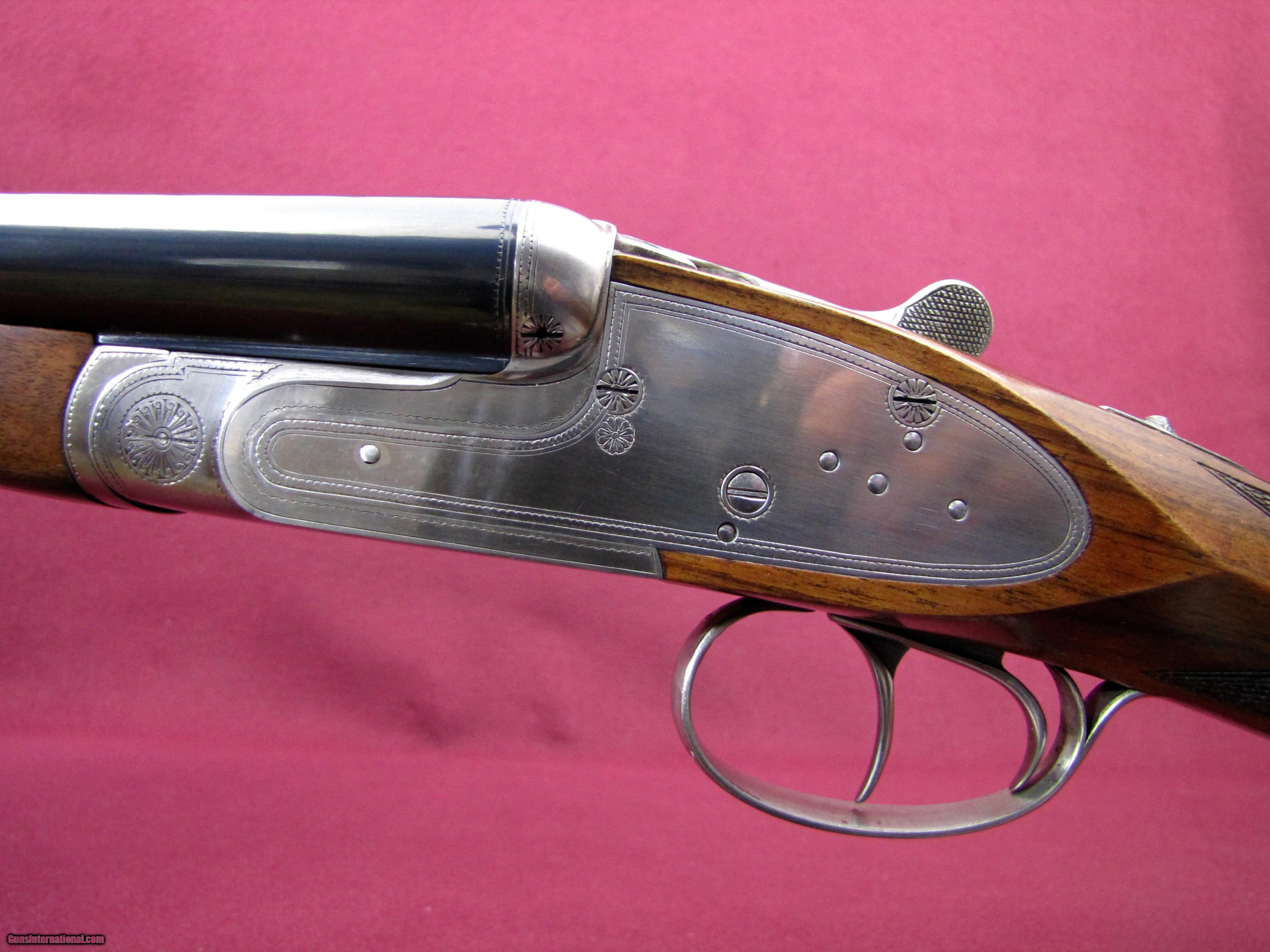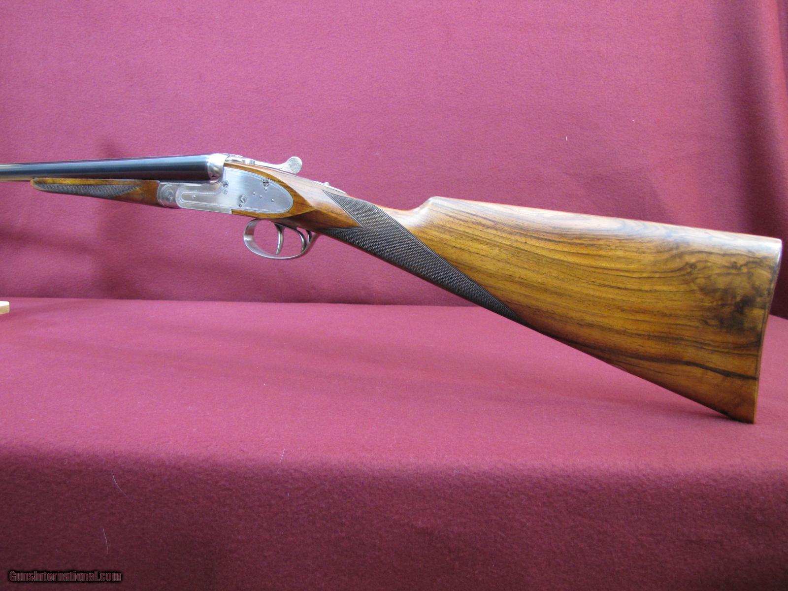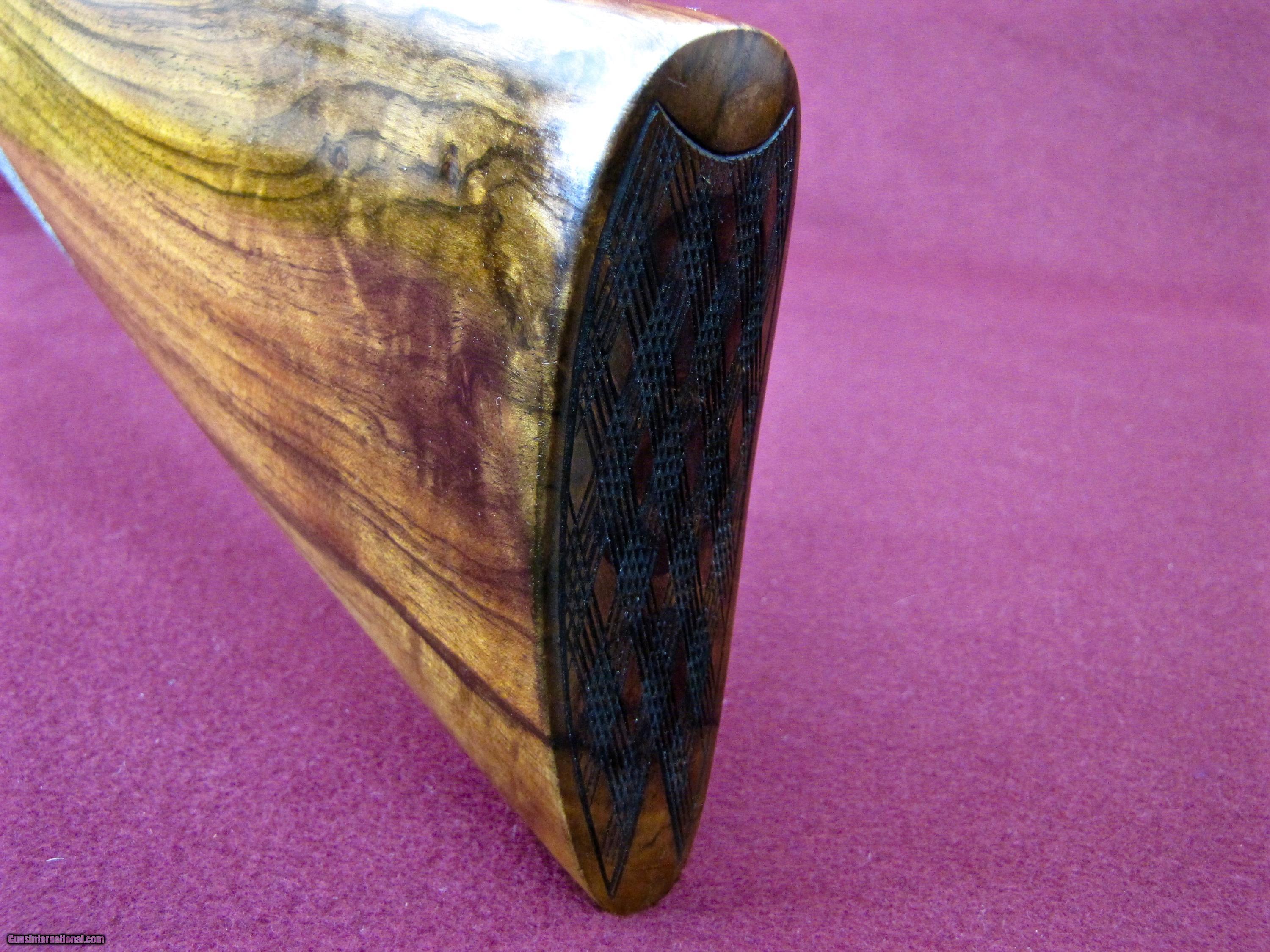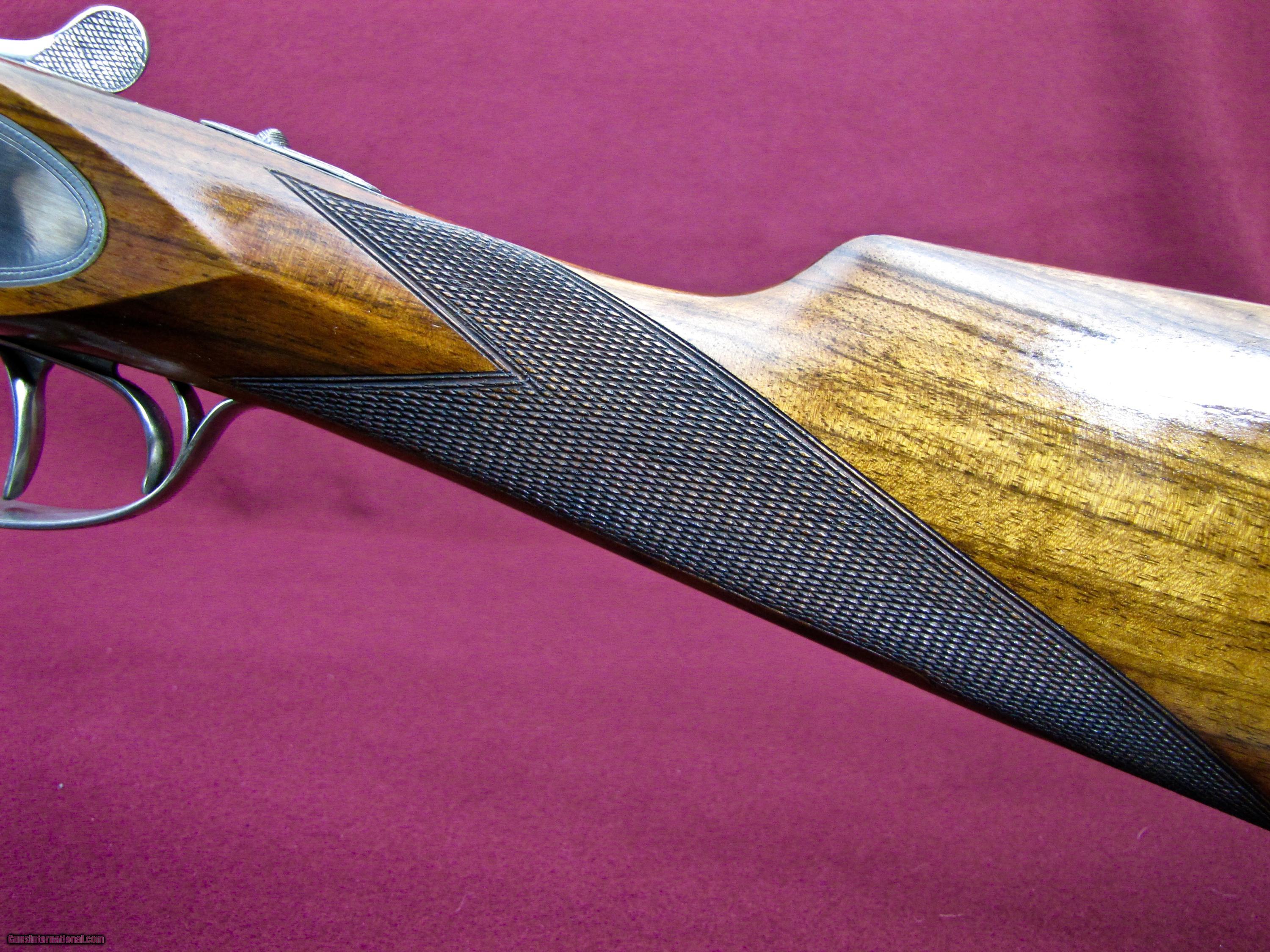 Description: I have for sale a lovely little Arrieta made for Orvis. This is the Custom Uplander Model in 20 gauge. This is a true sidelock gun which comes with all the bells and whistles. By this I mean bushed firing pins, articulated front trigger, cocking indicators, ejectors, rolled edge trigger guard, straight grip stock with hand cut checkering, splinter forend with anson latch, and checkered butt. Stock is of high grade walnut with great grain pattern and perfect straight flow through the wrist which is so important on this small doubles. It also has hand rubbed oil finish with only a few very light impressions. Stock dimensions are 1 1/2 X 2 3/8 X 14 3/4 over the checkered butt and has 3/8 inch cast off for the right hand shooter. This gun comes with 27 inch barrels which are choked .003 (skeet) and .004 (light Improved Cylinder). Barrels have a raised solid rib with hand cut crosshatching to reduce glare. Trigger pulls are light and very crisp as you would expect from a true sidelock with front trigger being articulated. Weight of the gun is 6 pounds exactly and balance is right on the hinge pin. This gun is in excellent plus condition, has been shot very little with top lever way to the right and still tight. This will be a great little gun for Grouse, Quail, or Woodcock and certainly won't wear you out carrying it. Price of the gun is $3600 plus $50 shipping to your FFL. As always there is a three day non-firing inspection period with the buyer paying shipping charges if returned. SOLD Manufacturer: Arrieta for Orvis Model: Custom Uplander Chambers: 2 3/4 Ejectors: Selective well timed Metal Condition: 98% Plus Wood Condition: 98% Plus Bore Condition: Excellent Barrels: 27 Inches Barrel Type: Side by Side Triggers: Double Front articulated Gauge Info: 20 Stock: Straight/English Stock Comb: 1 1/2 Stock Heel: 2 3/8 Stock Cast: 3/8 inch off for Right Hand Fore End: Splinter Butt Pad: Checkered LOP: 14 3/4 Rib: Solid Raised Finish: Hand Rubbed Oil Weight: 6 pounds 0 ounces Sights: Single Front Bead Manufacture Date: 2000 Choke Left: Light Improved Cylinder Choke Right: Skeet Engraving: Hand Cut Border |