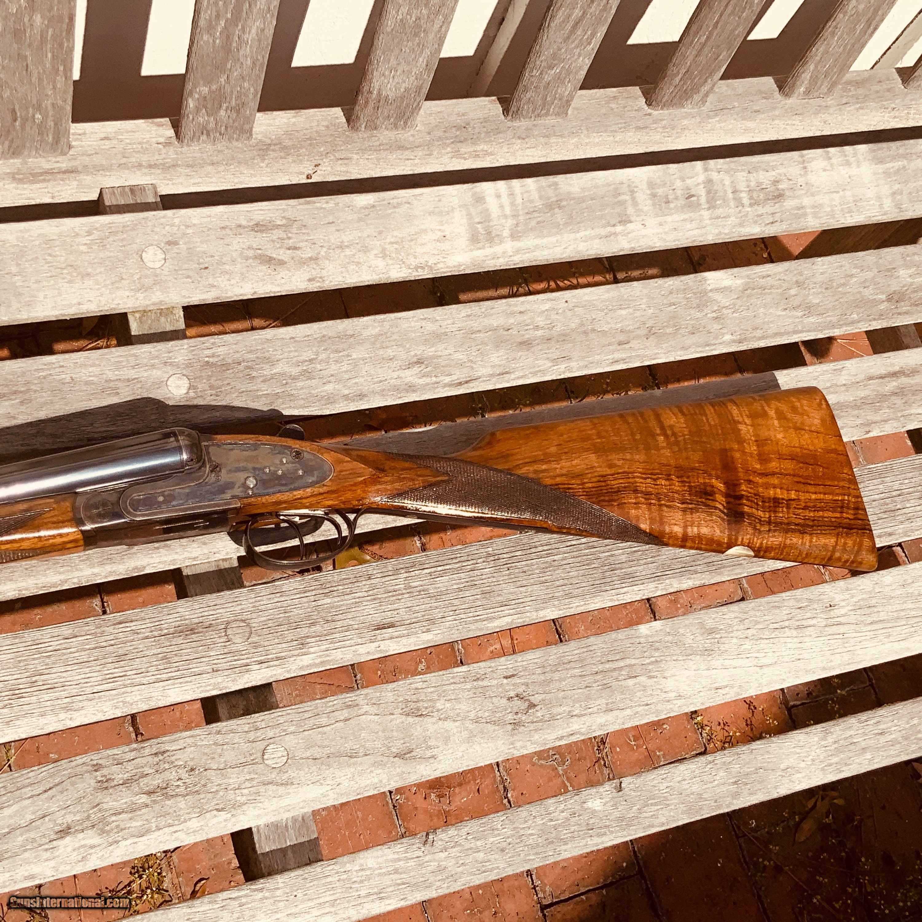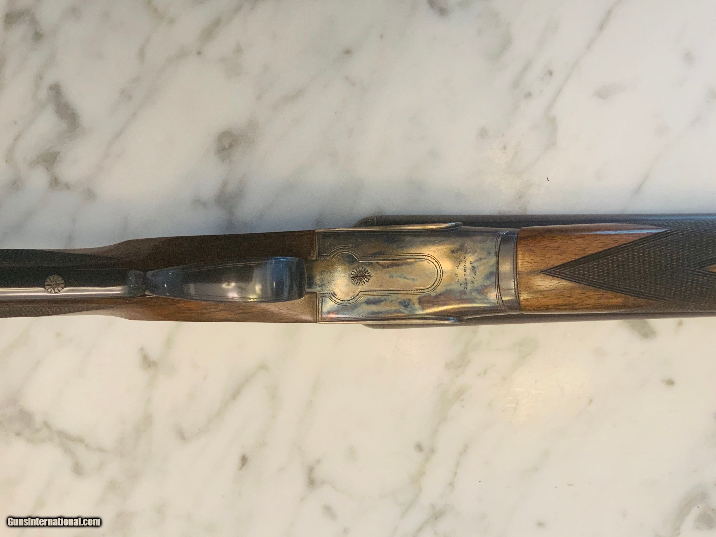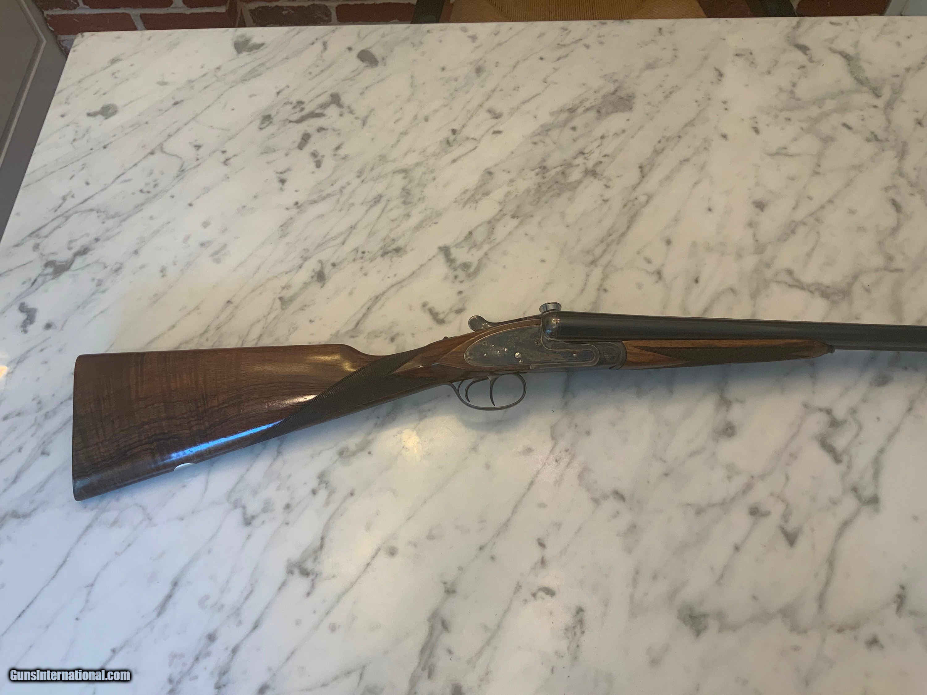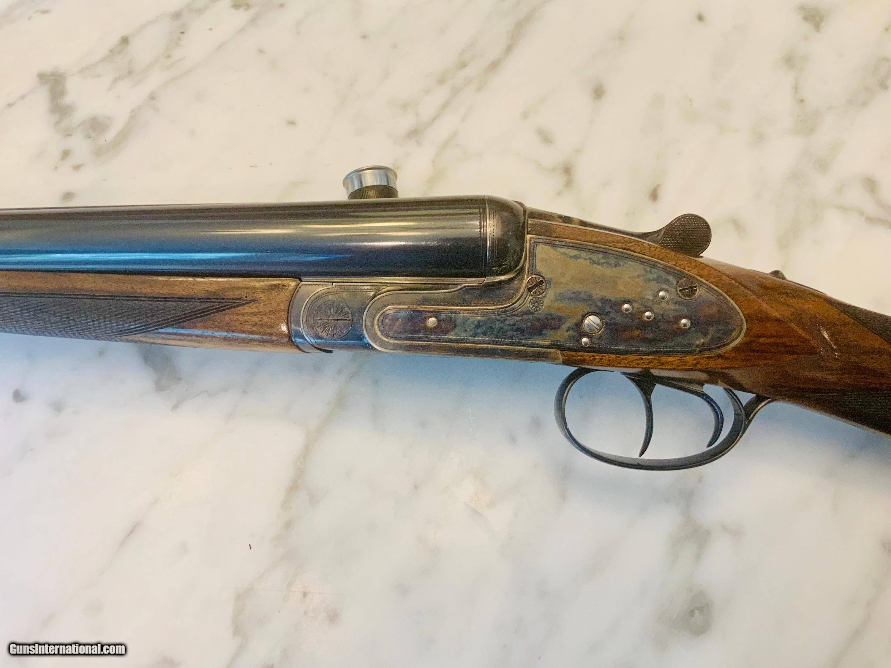 Description: ARRIETA/ORVIS SIDELOCK, 1999, 12 gauge, Original finish, 28" chrome lined chopper lump barrels, IC (.010) and MOD (.020), 2 3/4 chambers, ejectors, Double Trigger articulating front, Safety sears, 6lb 13oz, gas port, bushed firing pins, Fabulous wood, Case, used little.. SOLD Manufacturer: ARRIETA Model: ORVIS CUSTOM UPLANDER Serial Number: 116-99 Chambers: 2 3/4 Ejectors: YES Metal Condition: Excellent Wood Condition: Excellent Bore Condition: Excellent Barrel Type: SXS Action: SIDELOCK Triggers: DOUBLE Gauge Info: 12 Stock Comb: 1 1/2 Stock Heel: 2 1/4 Fore End: Splinter Butt Pad: Checkered Wood LOP: 14 1/2 Finish: Blue and Case Hardened Weight: 6lb 13oz Choke Left: .020 Mod Choke Right: .010 IC Engraving: Boarder Item Location: Maryland |