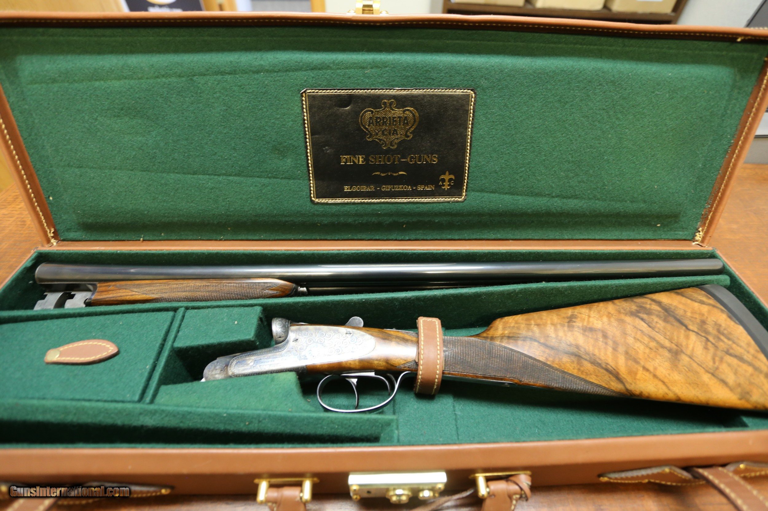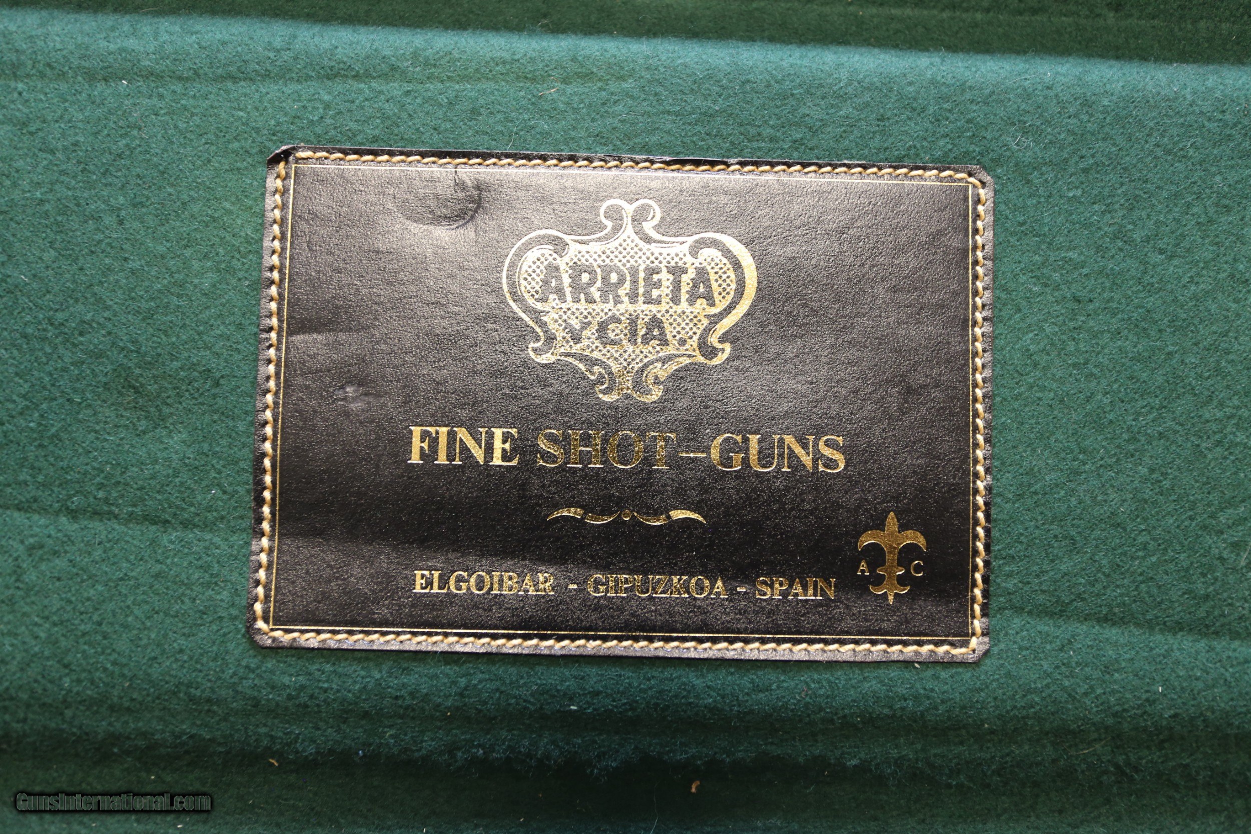 Description: **Sold Pending Funds** Arrieta Round Body Side Lock 12g-2inch Side By Side Shotgun. Overall very good condition, light normal handling wear. Must ship to FFL, $100 for shipping and handling SOLD Shotgun Gauge: 12 Gauge Manufacturer: Arrietta Model: 2 inch Serial Number: 57-03-175-03 Barrel Length: 27 inches Bore: 12 Chambers: 2 inch Ejectors: Yes Condition: Very Good Metal Condition: Good Wood Condition: Good Bore Condition: Good Barrels: 27 inches Action: Round Body Side Lock Triggers: Double Trigger Stock: English Butt Pad: Decelerator LOP: Approximately 14.5inches to front trigger Weight: Approximately 5lbs 14 3/4oz Choke Left: IC Choke Right: Cylinder Case: Makers Case Item Location: Bozeman MT |
