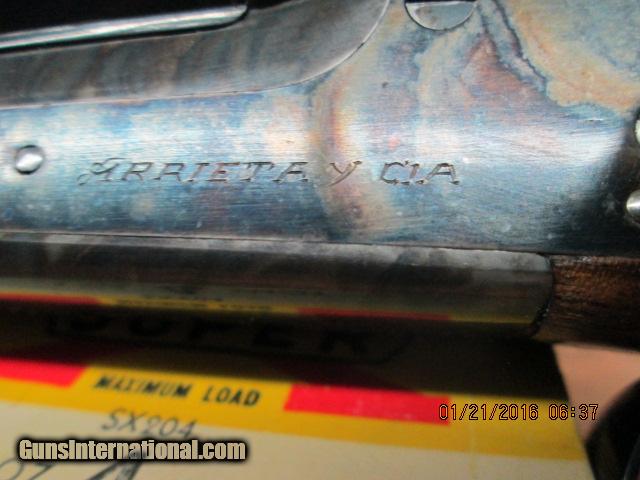 Description: ARRIETA ROUND BODY "WINGSHOOTER SPECIAL" UPLANDER 28GA. SIDE X SIDE EJECTOR SHOTGUN. 29" SOLID RIB BARRELS WITH LIKE NEW BORES,MODIFIED & IMP. CYLINDER FIXED CHOKES.ENGLISH STRAIGHT GRIP CHECKERED & STREAKED WALNUT STOCKS IN 99% CONDITION. 14 3/4" L.O.P. OVER CHECKERED BUTT.1 1/2" D.A.C. AND 2 1/4" D.A.H. GUN WEIGHS IN AT 6 LBS.2 3/4' CHAMBERS WITH EJECTORS.CASE COLORED ROUND BODY ACTION.GUN IS ON CONSIGNMENT AND IN LIKE NEW CONDITION. 6359.00 PLUS 65.00 USPS REGISTERED INSURED SHIPPING.CHECKS TAKE 10 DAYS TO CLEAR,M/O'S TAKE 5 DAYS TO CLEAR.NO CREDIT CARDS TAKEN.CALL DANNY AT 828=698=8804 IF NEEDED.GOD BLESS! SOLD |