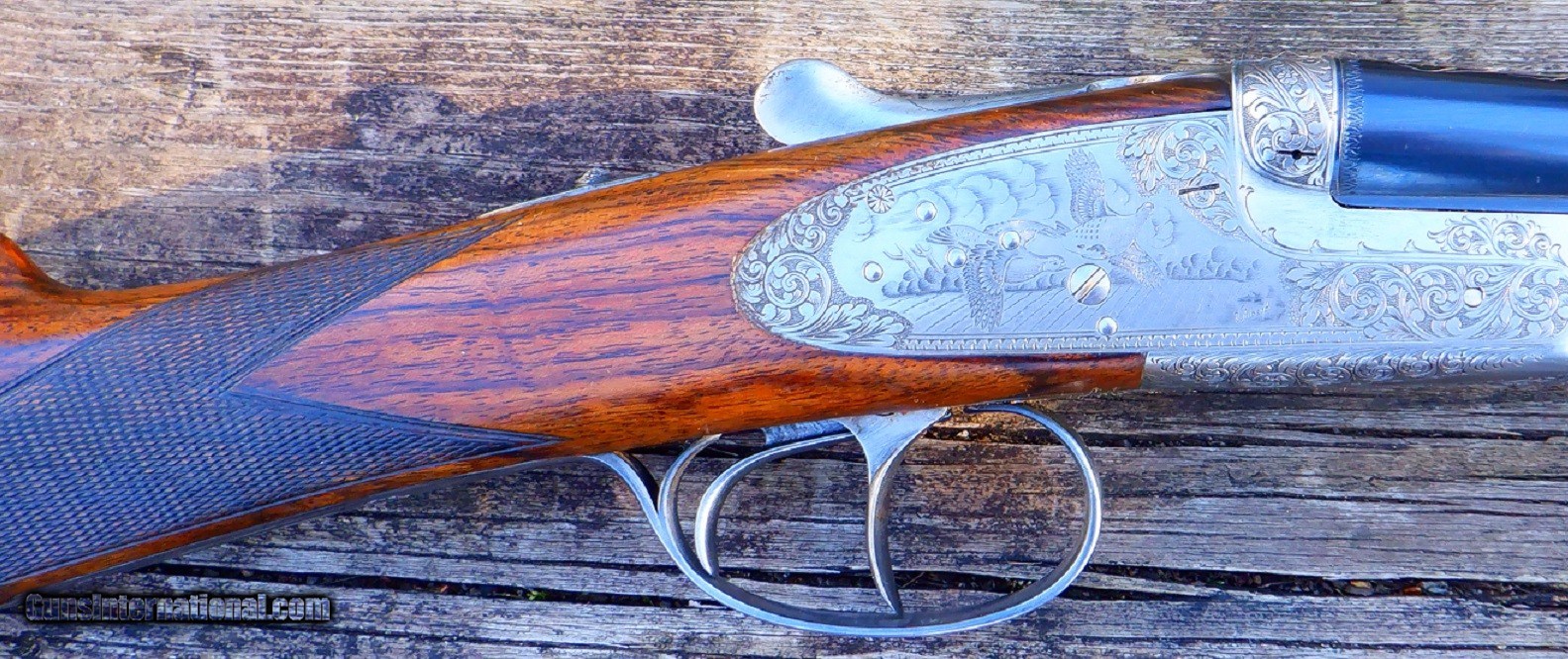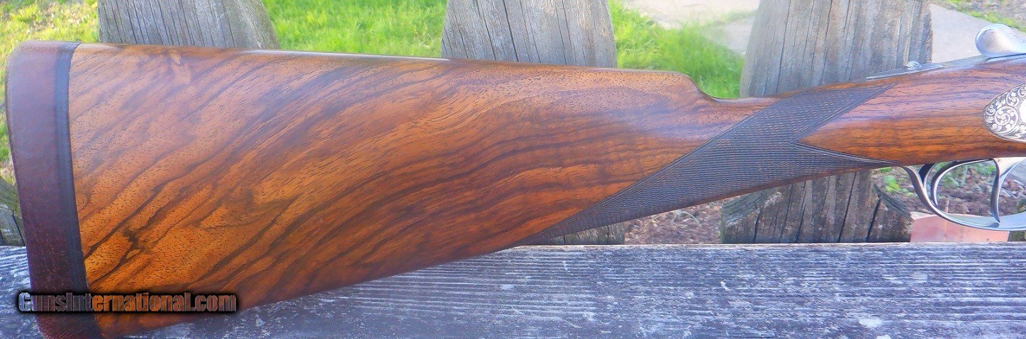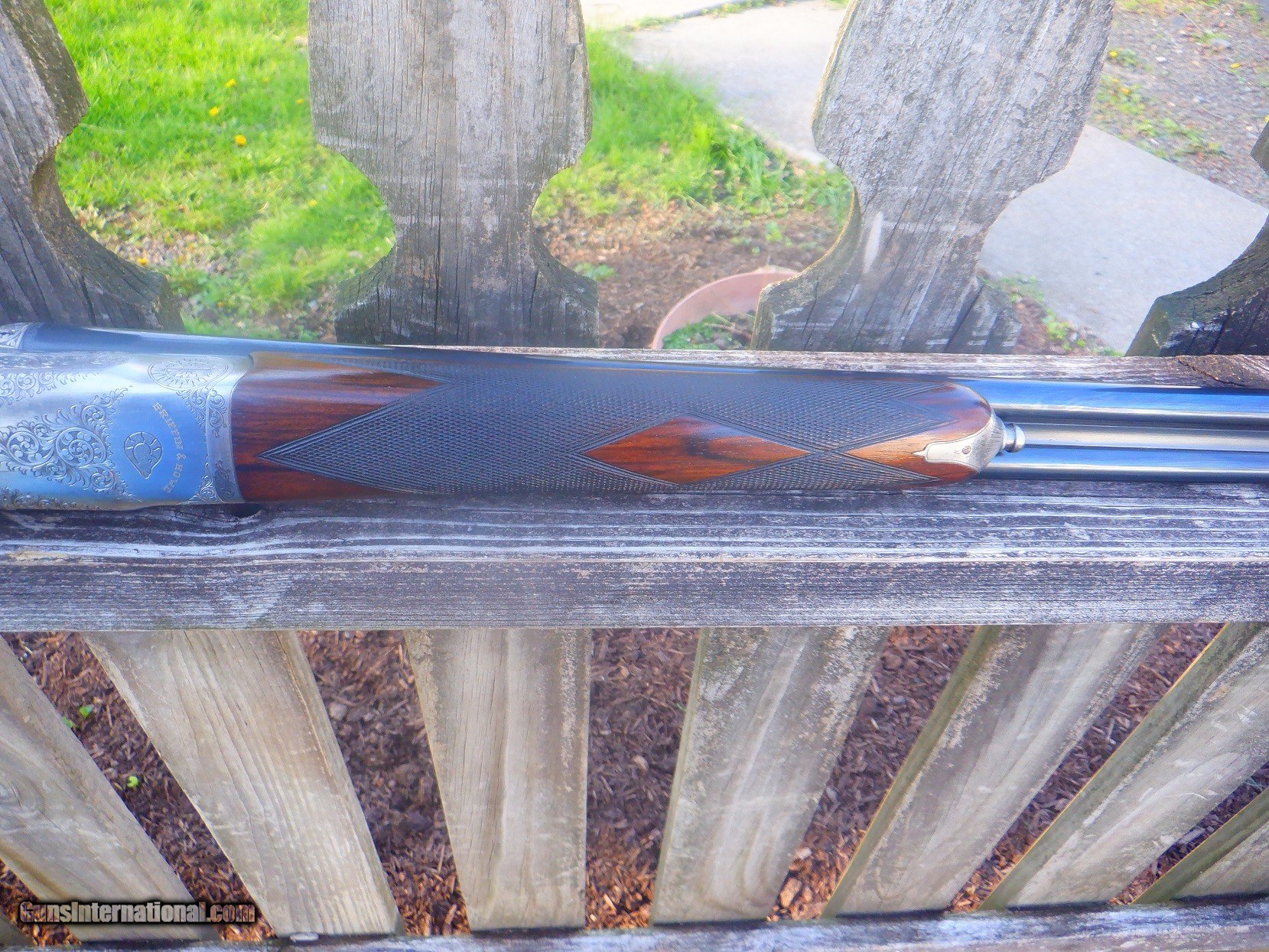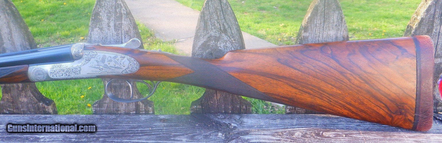 Description: ARRIETA - SIDELOCK EJECTOR 410 GAUGE - IMPORTED BY GRIFFIN & HOWE - ROUNDED BODY COIN FINNISHED RECEIVER GAME SCENE ENGRAVED - BUSHED STRIKERS - DOUBLE TRIGGERS WITH FRONT TRIGGER ARTICULATED - 28" BARRELS CHOKED IC/MODIFIED - DUAL WHITE BEADS ON FINE MATTED RIB - STRAIGHT HAND STOCK DIA. 15 1/2" OVER LEATHER COVERED PAD DROP COMB 1 7/16" X DROP HEEL 2" SPLINTER FOREND -WEIGHT 5 lbs. 13 ozs.AS NEW CONDITION SOLD |