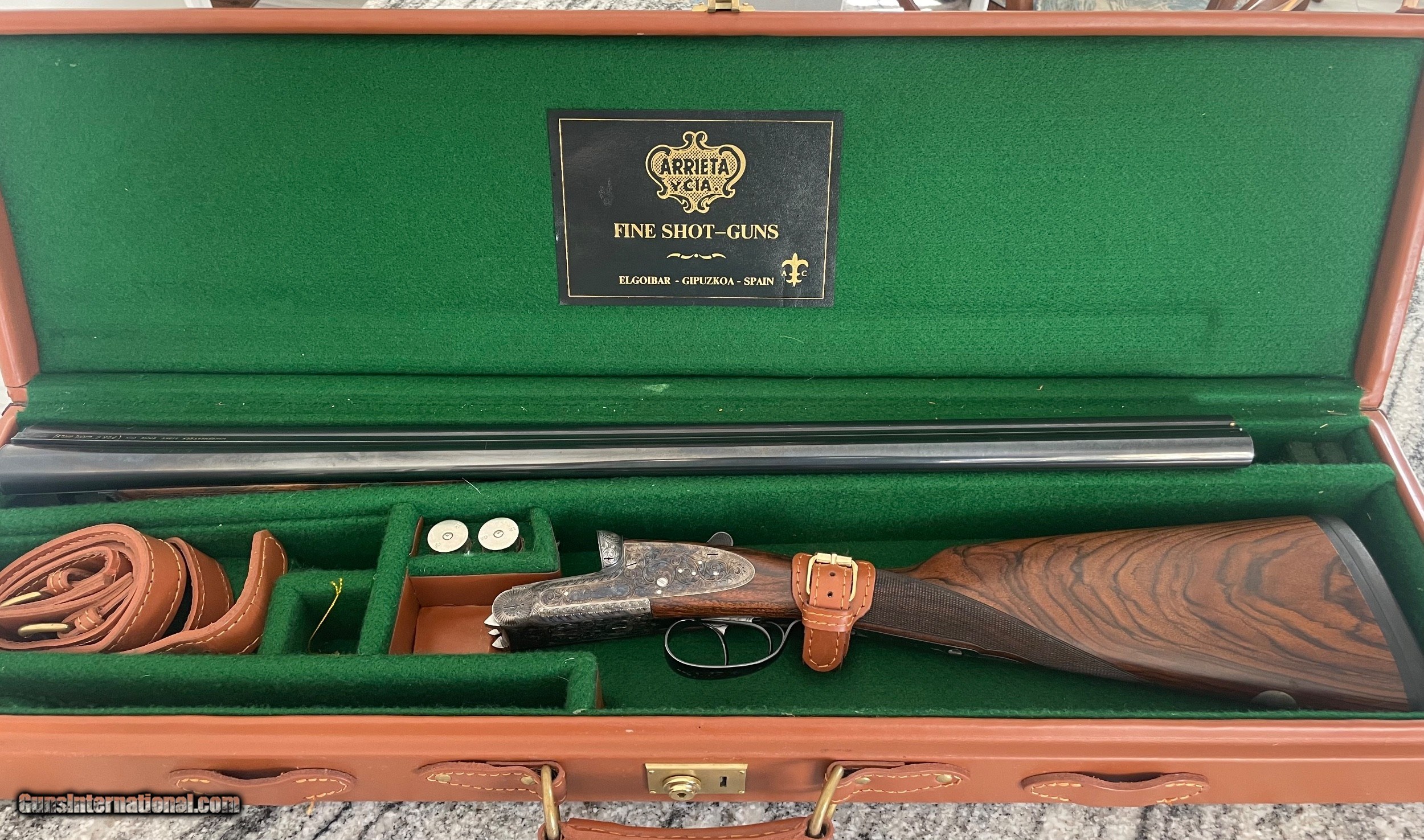 Description: *sold pending finds**Rare Arrietta 2 inch chambered sidelock. This is the cheapest one on the internet. Gun is like new and in original case. Pictures speak for themselves. Please call or text with questions. 423 534 5375. I TRADE. MAKE OFFER LOP 14 1/4 weight 6lbs choked C and IC Drop at the heel 2 1/8 27 inch barrels Cased SOLD Shotgun Gauge: 12 Gauge Manufacturer: Arrietta |