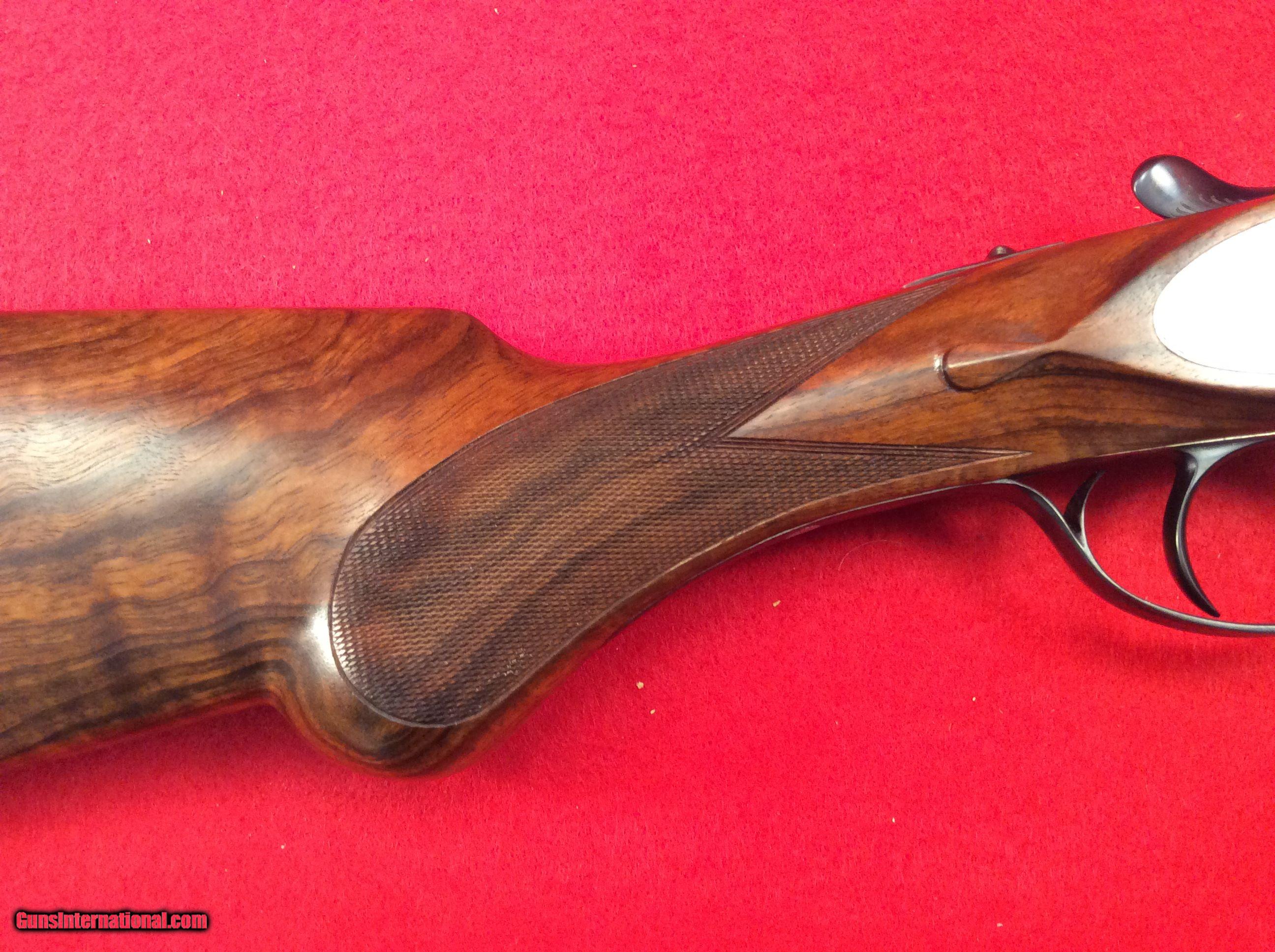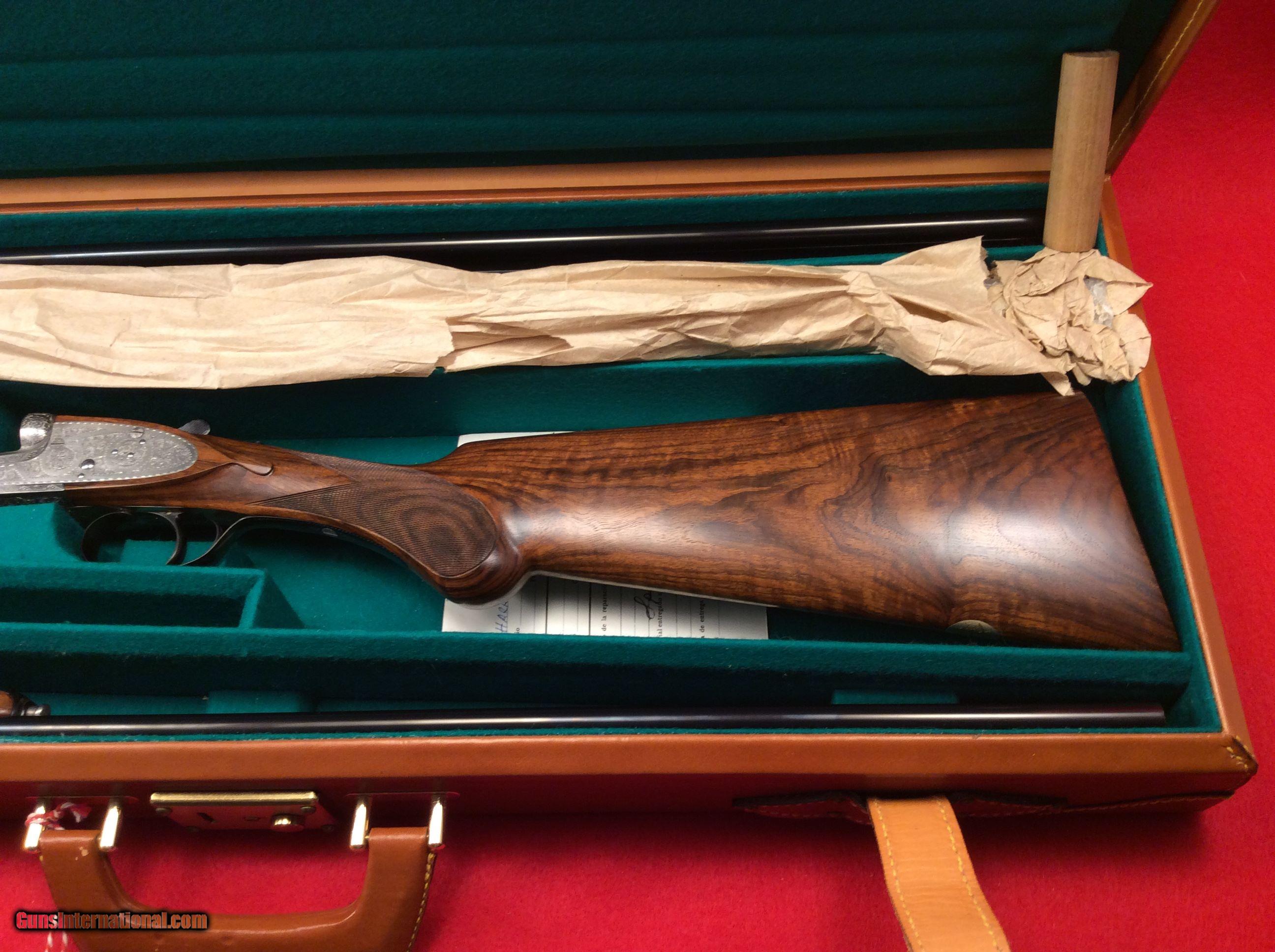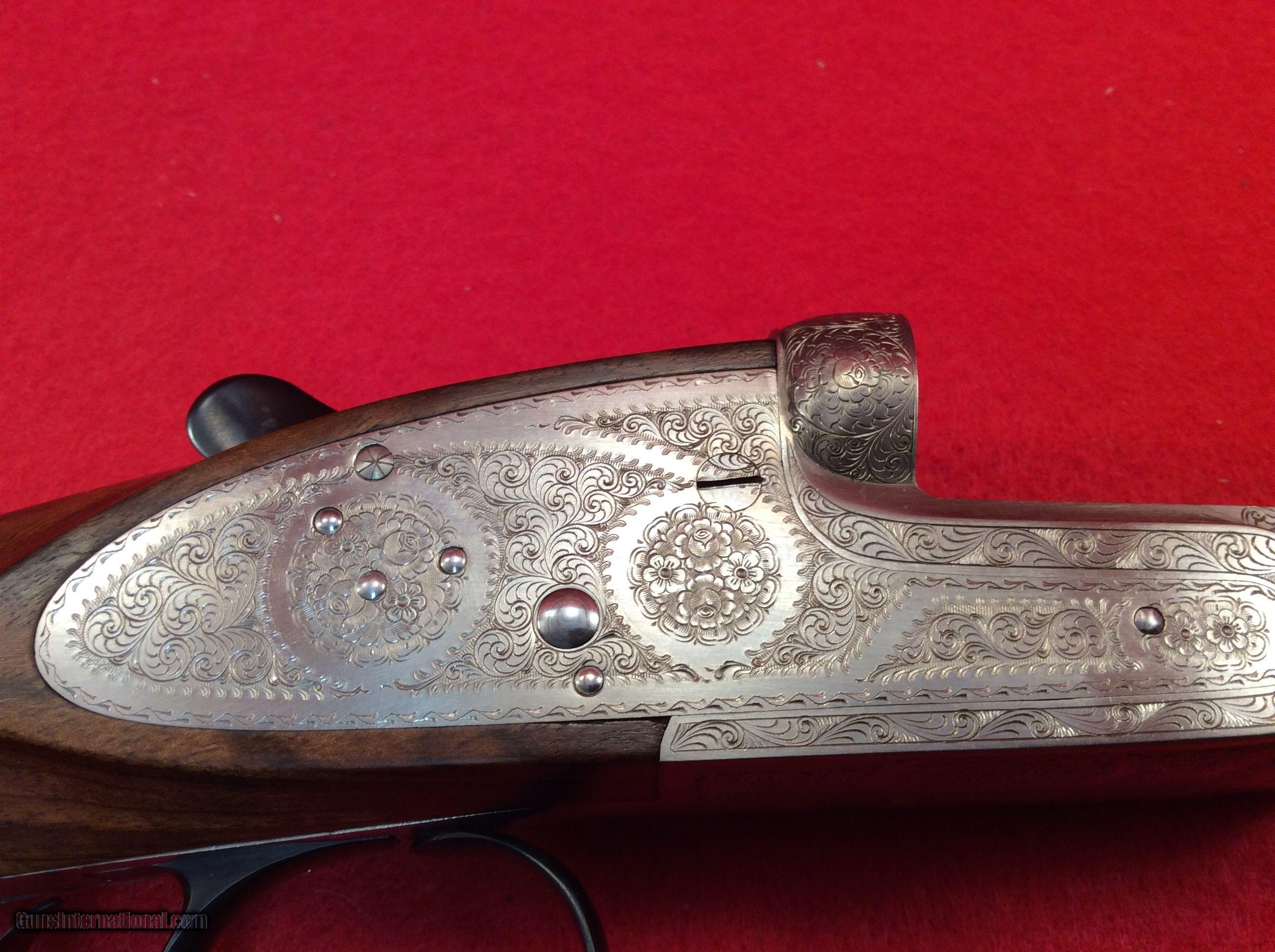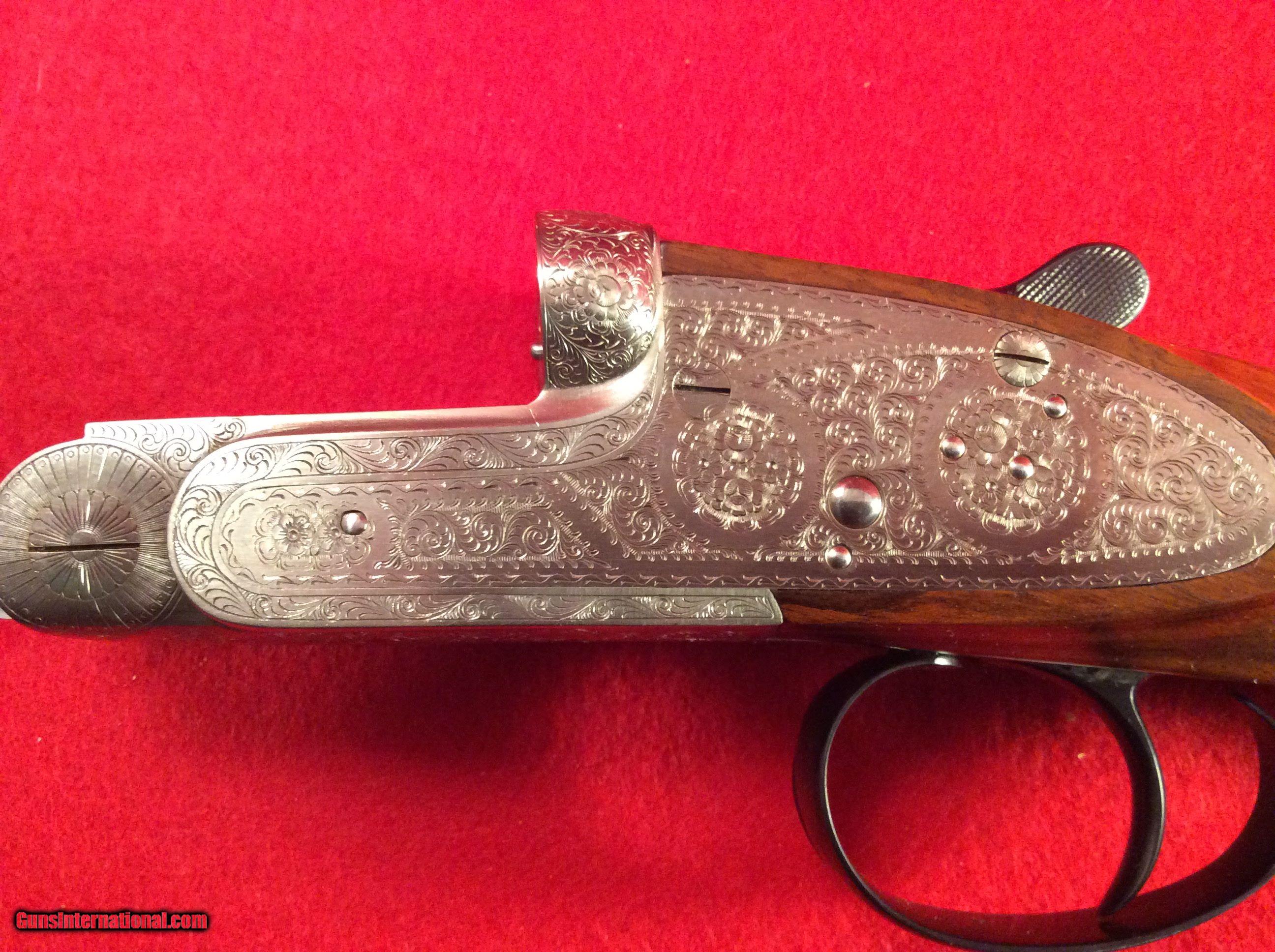 Description: Mountain Valley Armory is proud to offer this like new cased Arrieta 578 side by side shotgun in 410 gauge with three factory barrels. All barrels are 27.5 inches in length and have a matt rib with a single bead attached. Barrel # 1 is choked skeet and skeet. Barrel #2 is choked full and modified. Barrel #3 is choked improved and modified.. All barrels are numbered to the gun.. Single trigger, extra fine line checkering on best quality select walnut straight stock and splintered forend, Checkered butt as well. Engraving is absolutely fantastic and the wood and metal are as nice as the day the left the factory back in 1983. Factory fitted case is also in excellent condition. The current (and original) owner has stated he never fired this gun. The best way to reach us if you are interested in this firearm is to give us a call at 501-609-9595. We are open Monday through Saturday, 10 am to 6 pm CST. Please be sure to look at our other cased Arrieta offerings which include a 28 gauge, 3 barrel set and a pair of 20 gauge, 2 barrel sets. SOLD |