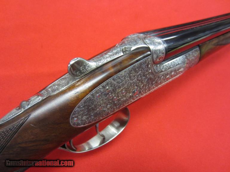 Description: Model 872 Round Body small gauge set: full coverage floral and scroll engraving, nicely figured wood on the straight stock and splinter forends, 26" chopper lump barrels, 2 3/4" 28 gauge and 3" 410 bore, H&H style hand detachable locks and assisted openers, double triggers (front articulated), 1 3/8" x 2" x 14 3/4" over checkered butts. Come in a semi fitted leather case with dust cover. SOLD |
