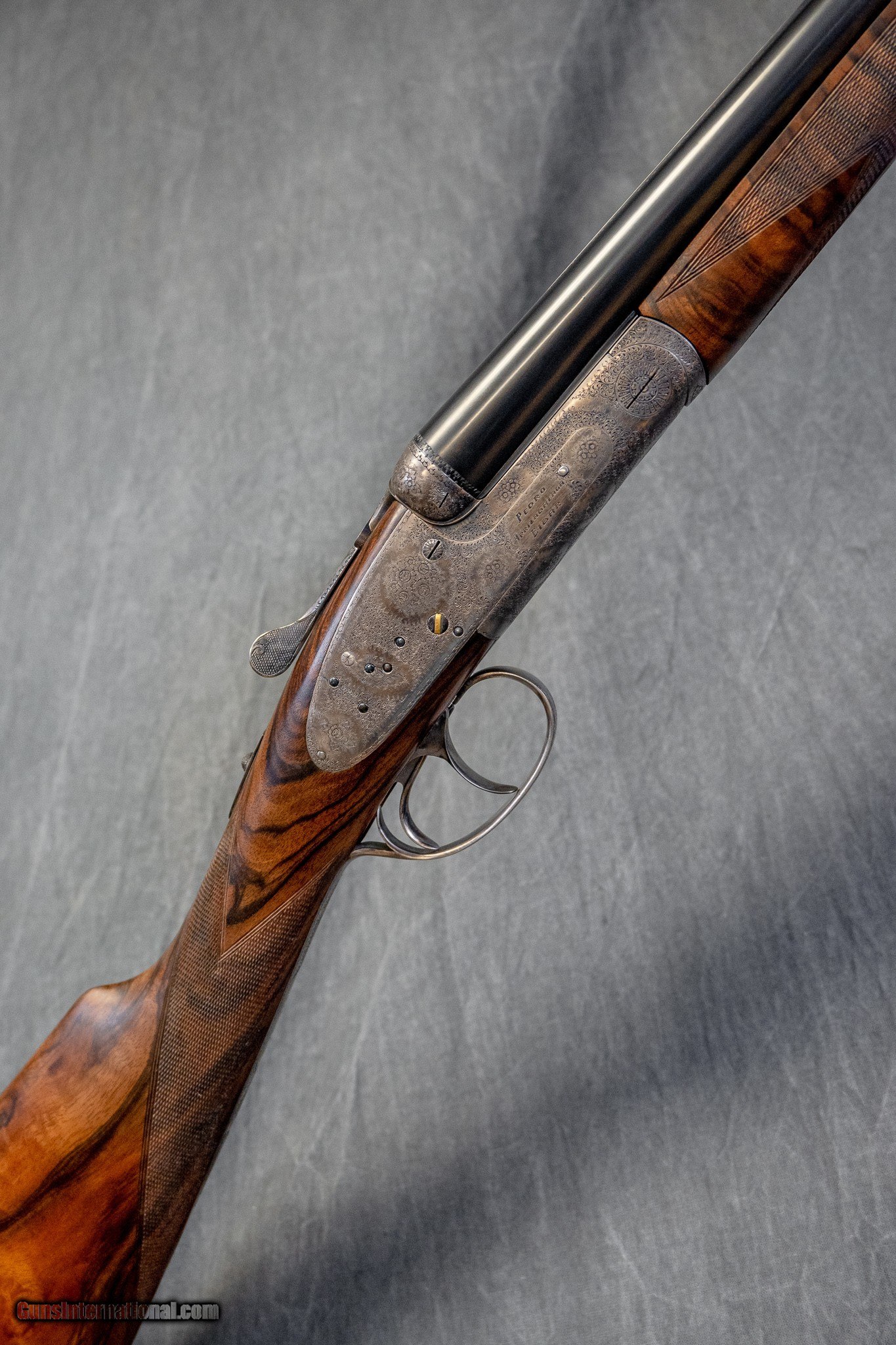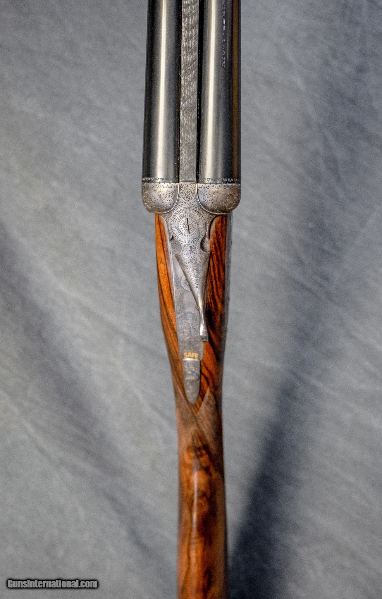 Description: Specifications Maker:ARRIZABALAGA Model:BOSS ROUND BODY Gauge/Caliber:28 GA Barrel Length:29" Chambers:2 3/4" Rib Design:FLAT HAND FILED Weight:6 lbs Bore/Chokes Choke Tubes:5 BRILEY SERIES S63 FLUSH CHOKES: C, LT SKT, IM SKT, IC, LM Stock Dimensions Drop At Comb:1 5/16" Drop At Face:1 1/2" 4 1/2" Drop At Heel:1 3/4" Cast At Face:0" 4 1/2" Cast At Heel:0" Length Of Pull:14 3/4" Pitch:2" / 4° Special Features: CASE HARDENED SIDELOCK ENGRAVED IN FINE, ENGLISH ROSETTE & SCROLL IN CLASSIC BOSS STYLE ARTICULATED DOUBLE TRIGGERS EJECTORS EXHIBITION GRADE STRAIGHT STOCK CHECKERED BUTT EXT 9" SPLINTER FOREARM BROWN LEATHER CASE CONDITION: EXCELLENT Circa:2007 / SERIAL # 46.03.010.07 Number:C8771 To see and enjoy the entire inventory of fine shotguns, rifles and handguns on display in the Fieldsport Gun Room, please visit us at: Fieldsportltd/gunroom/all.php SOLD Shotgun Gauge: 28 Gauge |