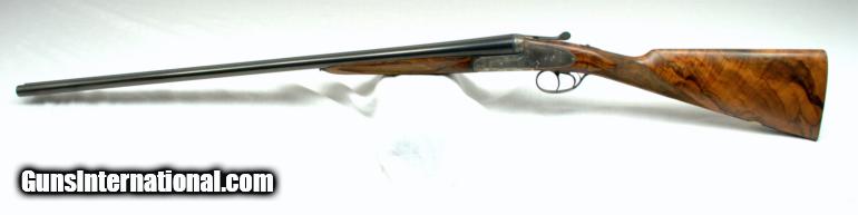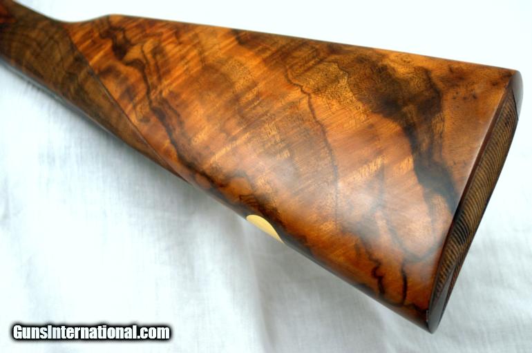 Description: ARRIZABALAGA BOSS SIDE X SIDE ... 20 gauge ... 29" barrels ... 2 3/4" chambers ... double triggers ... automatic safety ... weight 6.4 lbs ... LOP 14 3/4" ... drop at comb 1 1/2" ... drop at heel 2 3/8" ... cast off 3/16" heel ... R- bore .623 constriction .613, L- bore .623 constriction .601 ... articulated front trigger ... Holland & Holland style self-opening system. The wood on this firearm was hand picked by Jim Austin of New England Arms and features a beautifully figured and marbled Circassian walnut straight grip buttstock and a full splinter forend with exquily executed checkering on both. The receiver has Boss house style bouquet & scroll engraving with "Pedro Arizzabagala Eibar" on the lock plates. A 'yet to be initialed' gold oval is inlaid in the bottom of the buttstock. This gun is new & unfired and there is not a better one in the entire world. Please review photos for more detail and call with questions. See our other listing for ... "Only the best!" SOLD |