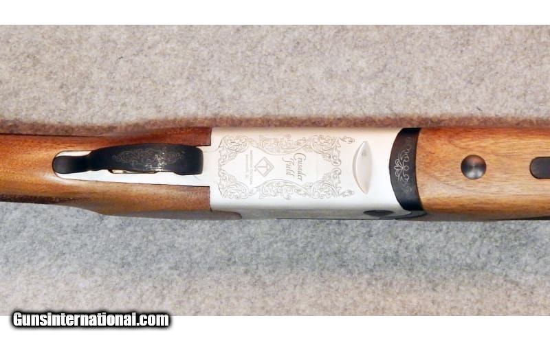 Description: American Tactical Imports ~ Crusader Field ~ Chambered in 12 Gauge. Is a break action over and under field length shotgun. Features 28" blued twin barrels, the upper barrel has a modified choke inserted, the lower barrel has a skeet choke inserted, both barrels are paired with a fixed front fiberoptic sight. Firearm has an ornately engraved stainless receiver complimented with walnut furnishings. 12 Gauge SOLD Chambers: 12 Gauge. Metal Condition: Very good condition. Wood Condition: Very good condition. Bore Condition: Good condition. Triggers: 3.5 pounds. Stock Dimensions: 14" LOP. Fore End: Walnut. Butt Pad: Rubber. Weight: 7.25 pounds Sights: Fixed front fiberoptic. Chokes: Modified and skeet. Item Location: Acworth, GA |