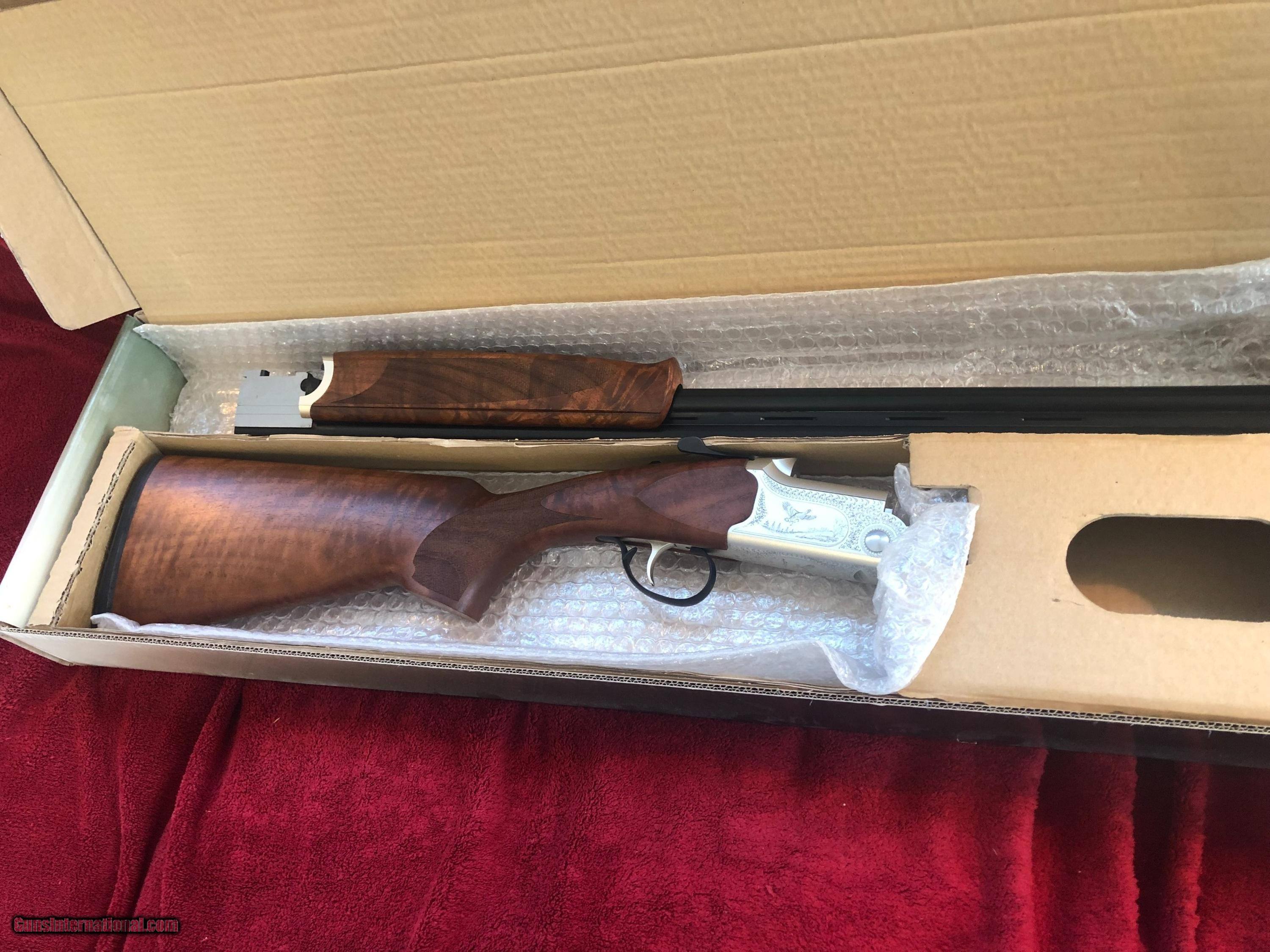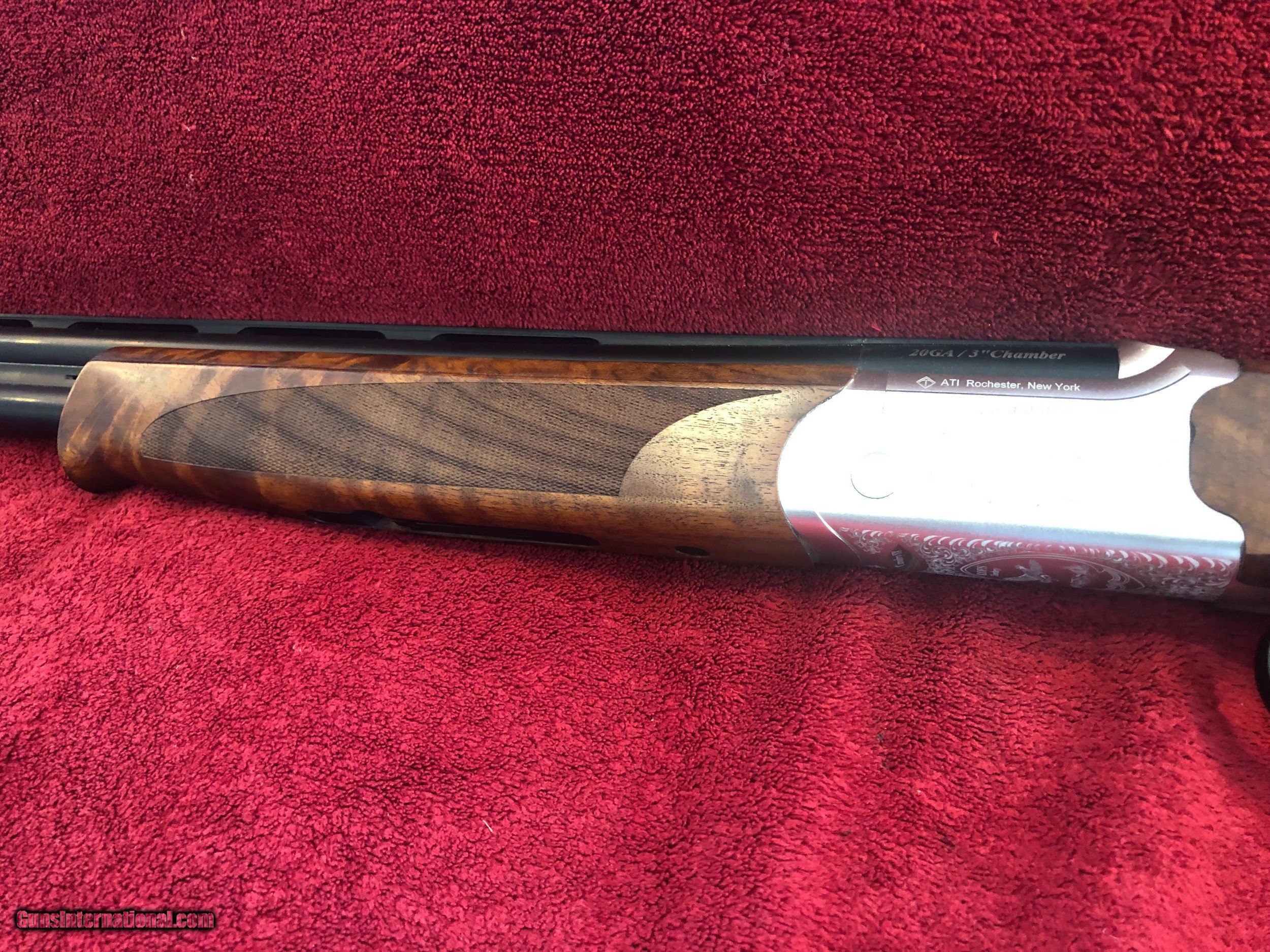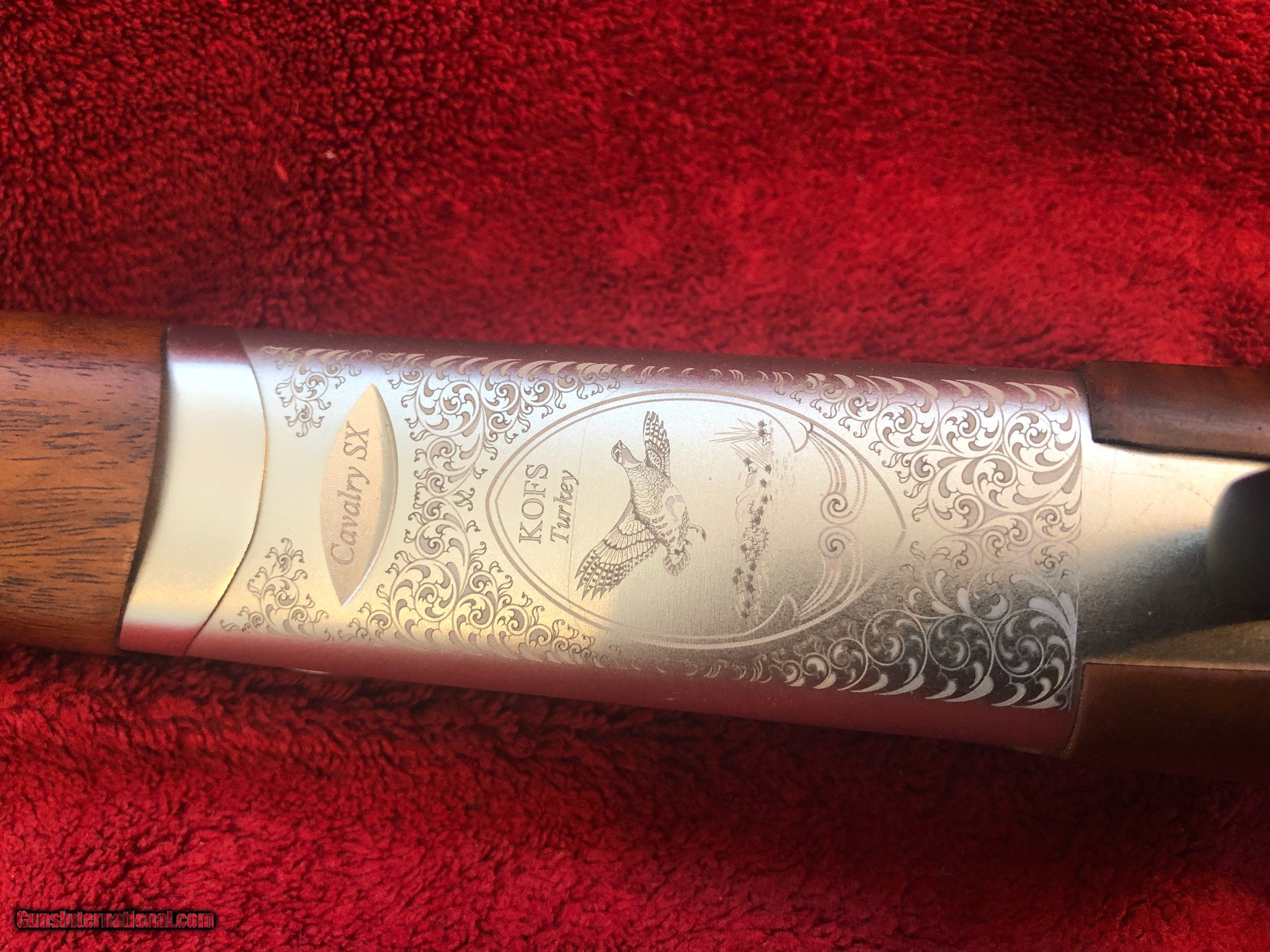 Description: Here is a new in the box 20ga overunder made in Turkey by KOFS and imported by American Tactical. Has 26" barrels that are double ventilated, screw chokes, single selective trigger, nicely engraved with quail scenes. The Turkish Walnut is beautifully figured. The small frame makes this gun light and easy to handle especially for a younger shooter or a woman. SOLD |