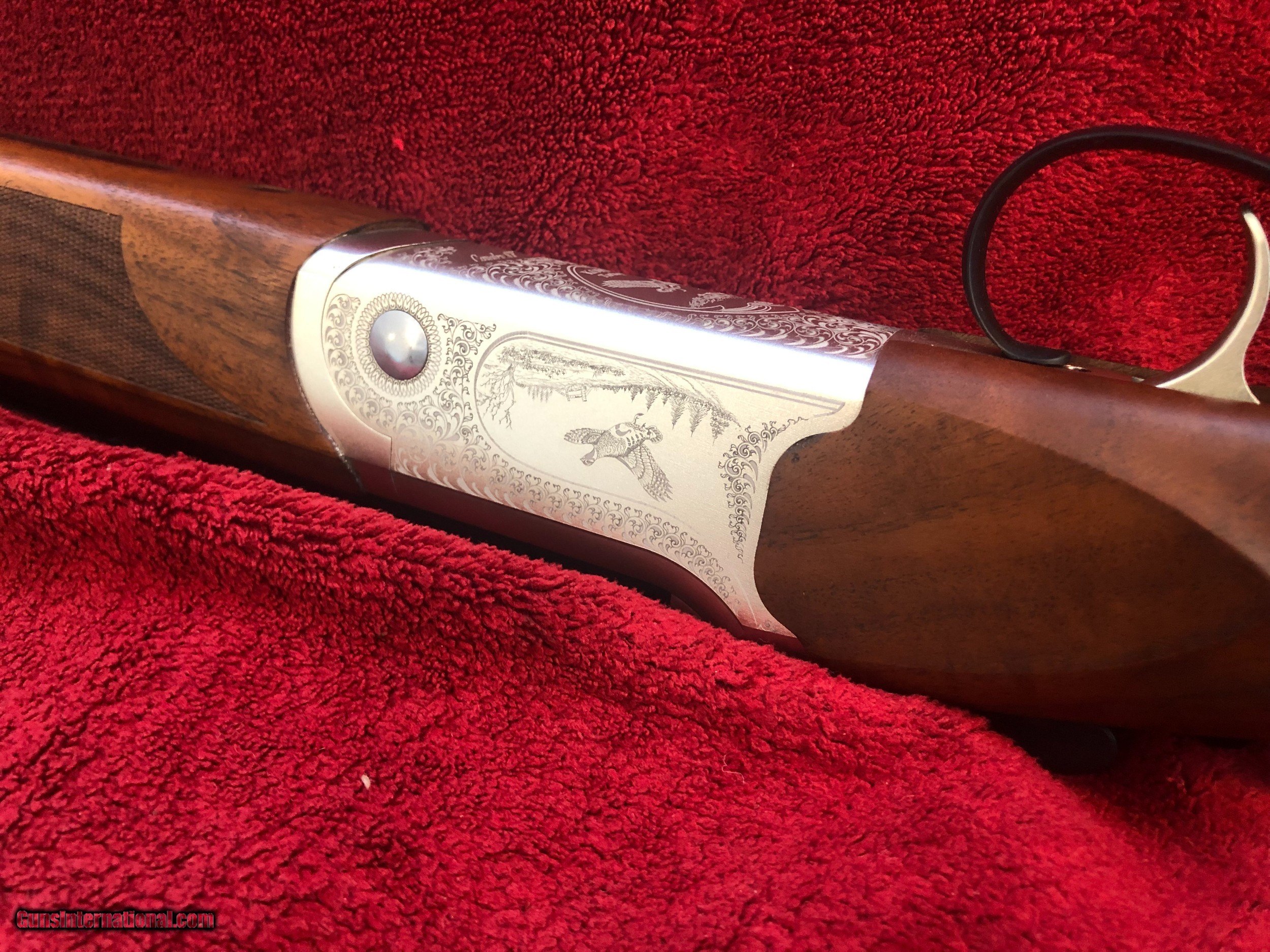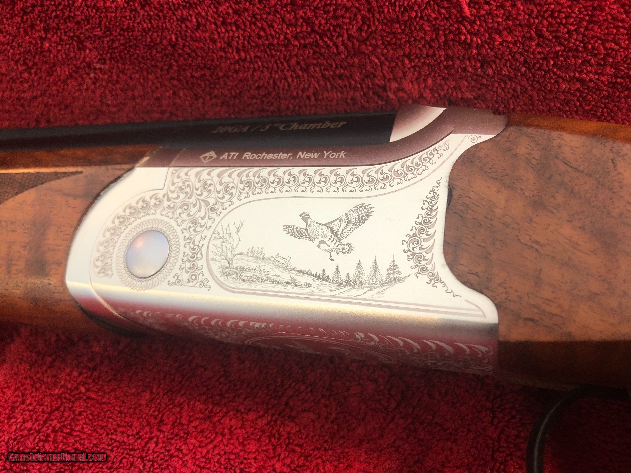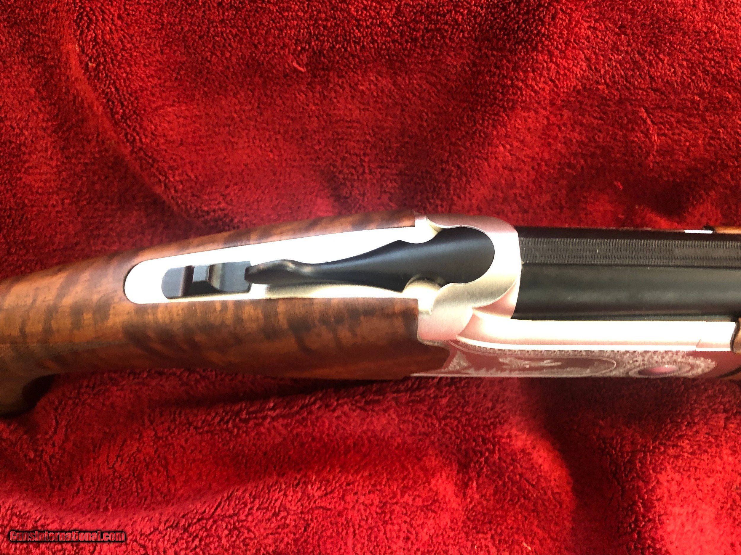 Description: Here is a new in the box 20ga overunder made in Turkey by KOFS and imported by American Tactical. Has 26" barrels that are double ventilated, screw chokes, single selective trigger, nicely engraved with quail scenes. The Turkish Walnut is beautifully figured. The small frame makes this gun light and easy to handle especially for a younger shooter or a woman. SOLD |
