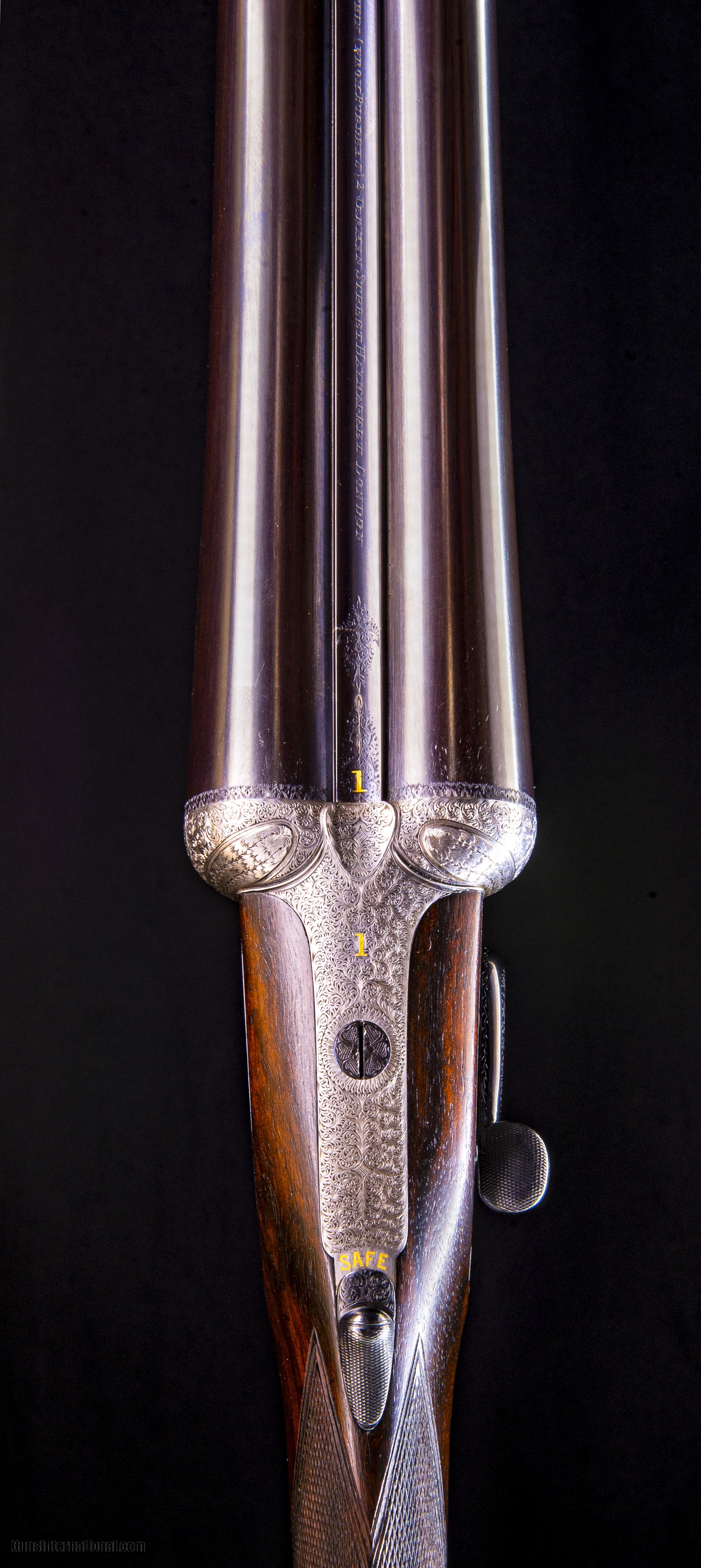 Description: Hammerless Sidelocks - This is an exceptionally nice London Sidelock for a super price. I love the sidelever opening like a Grant and the great stock dimensions for many. With no cast it can be shot by the right or left handed. *This gun dates from 1901.