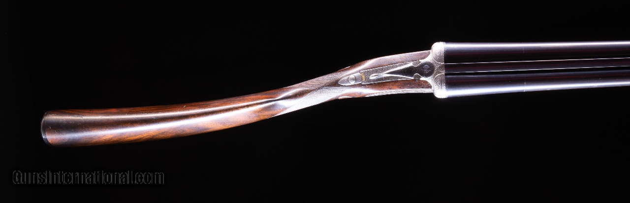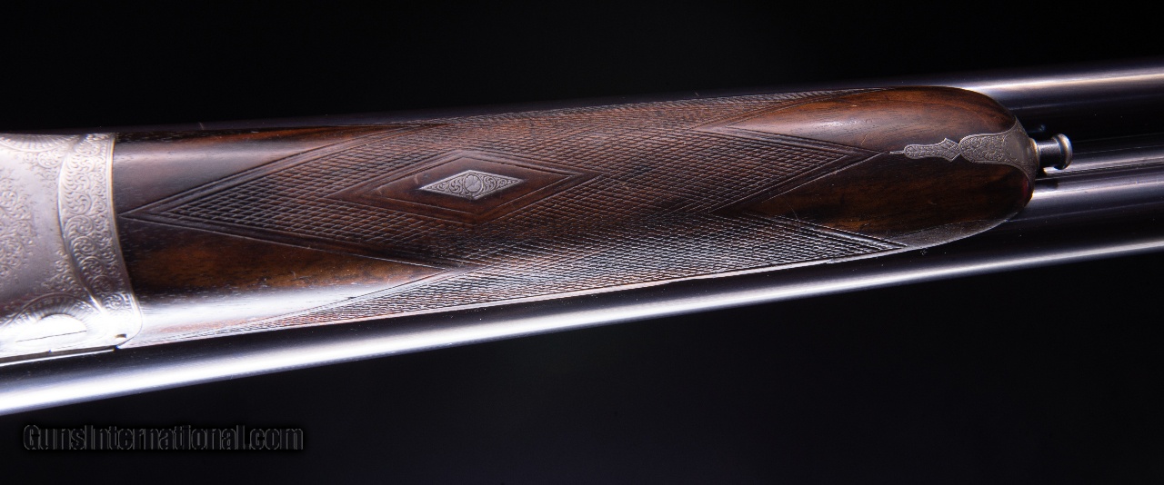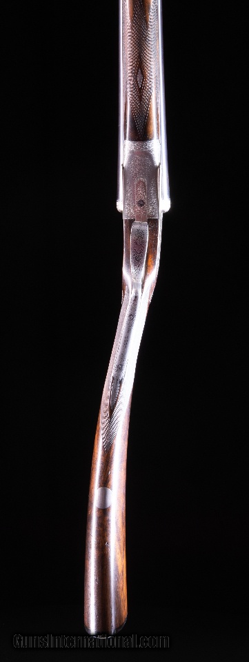 Description: Hammerless Sidelocks - Made between 1915 and 1919 this gun is in excellent condition for its age and offers the person that shoots from the right shoulder but needs to use the left eye an opportunity to shoot well in the field. *** Note: To see this gun with high resolution photos and a zoom-in feature, go to the vintagedoubles main site and search for the gun ID: 4507 or browse the main site to see our full gun collection. SOLD Curio/Relic: Yes Manufacturer: Henry Atkin of London Sidelock with a cross over stock ~ For the left eye and right shoulder Model: None Serial Number: 2357 Ejectors: Yes Barrels: 28 Barrel Type: Steel Gauge Info: 12 gauge Stock Comb: 1 11/16 Stock Heel: 3 1/16 Stock Cast: 1 3/8 LOP: 15 1/8" with ho Weight: 6 lbs. 12 oz. Choke Left: .020 Choke Right: .010 Proof:Nitro: 2 3/4 Minimum Wall Thickness Left: .030 Minimum Wall Thickness Right: .031 |