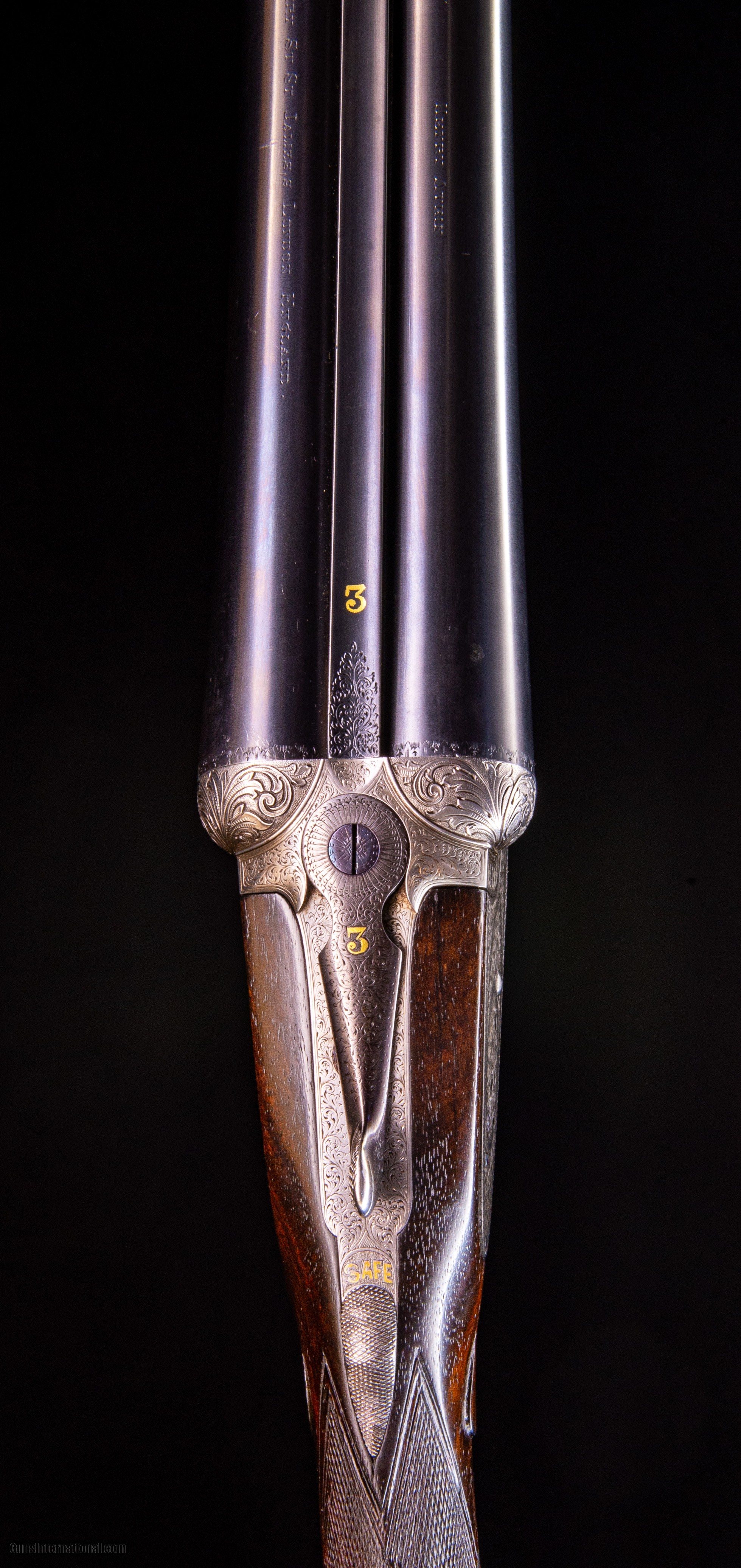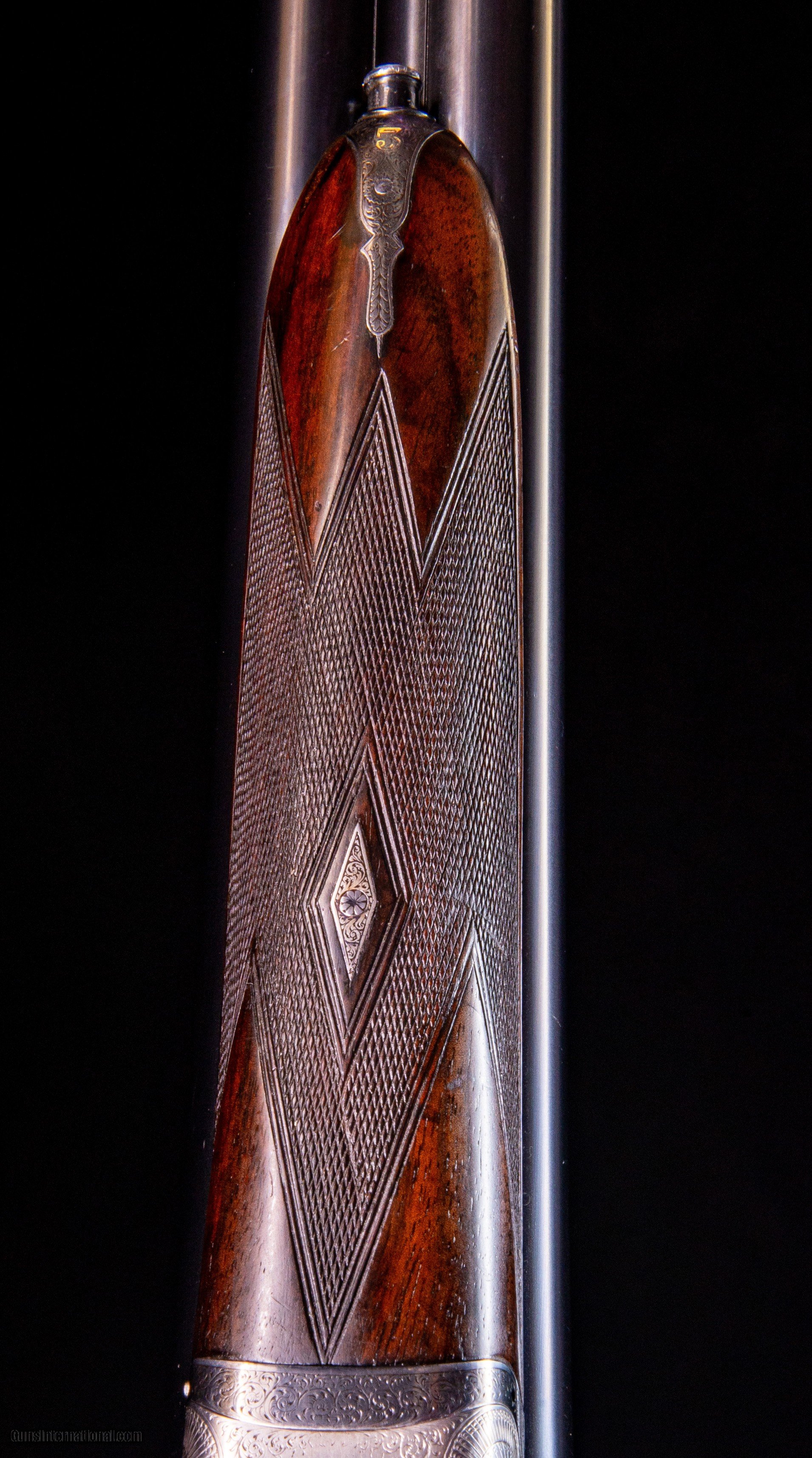 Re-barreled by the maker in 1976 - perfectly fitted and excellent bores. Super attractive carved fences. Typically choked for English pheasant, and a well dimensioned stock. This will make a great upland gun from a Best maker. *** Note: To see this gun with high resolution photos and a zoom-in feature, go to the vintagedoubles main site and search for the gun ID: 6014 or browse the main site to see our full gun collection.