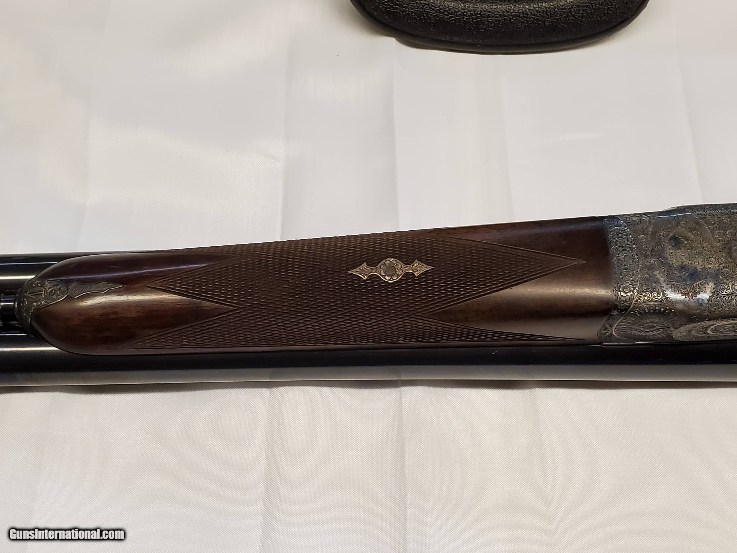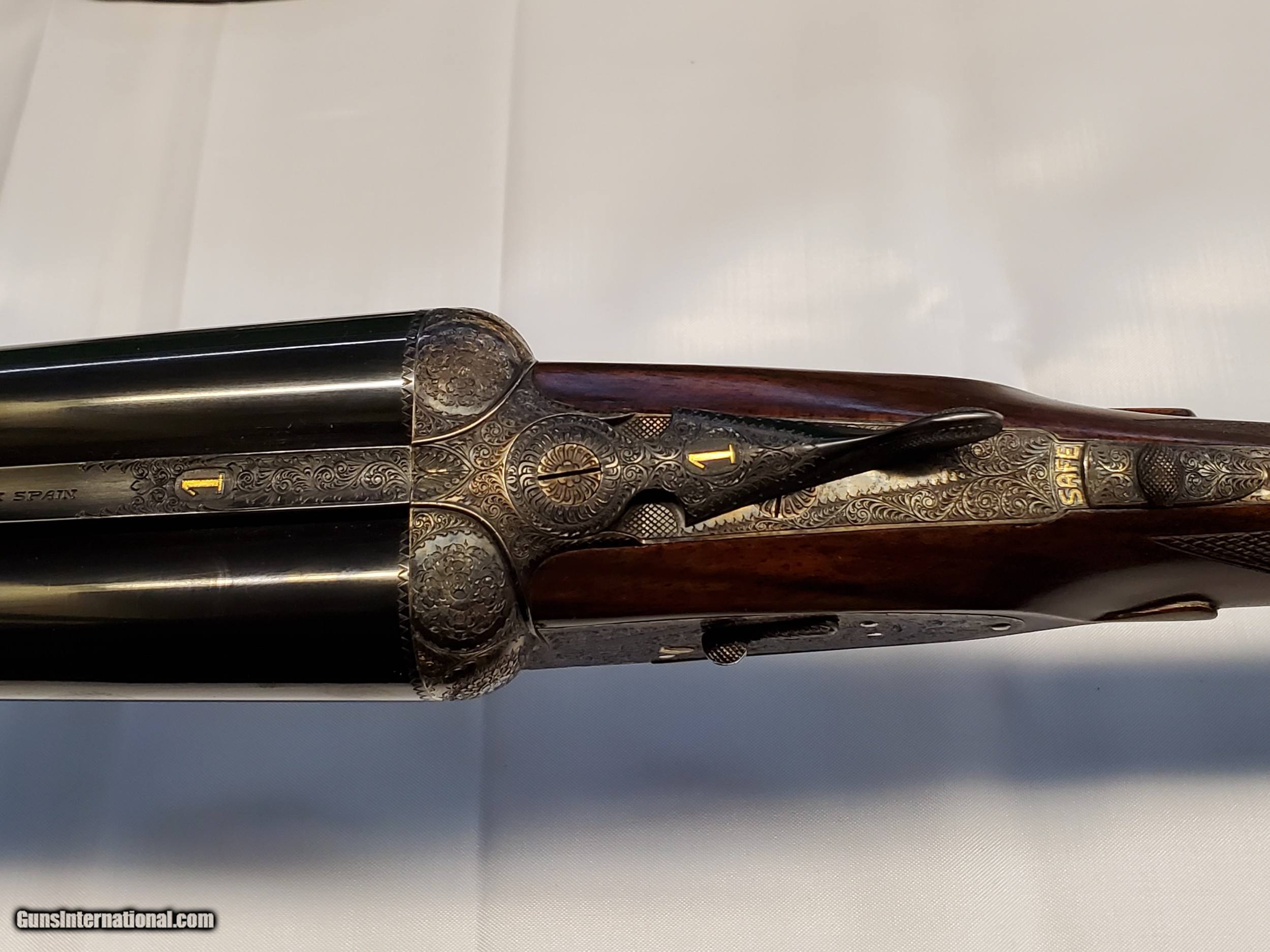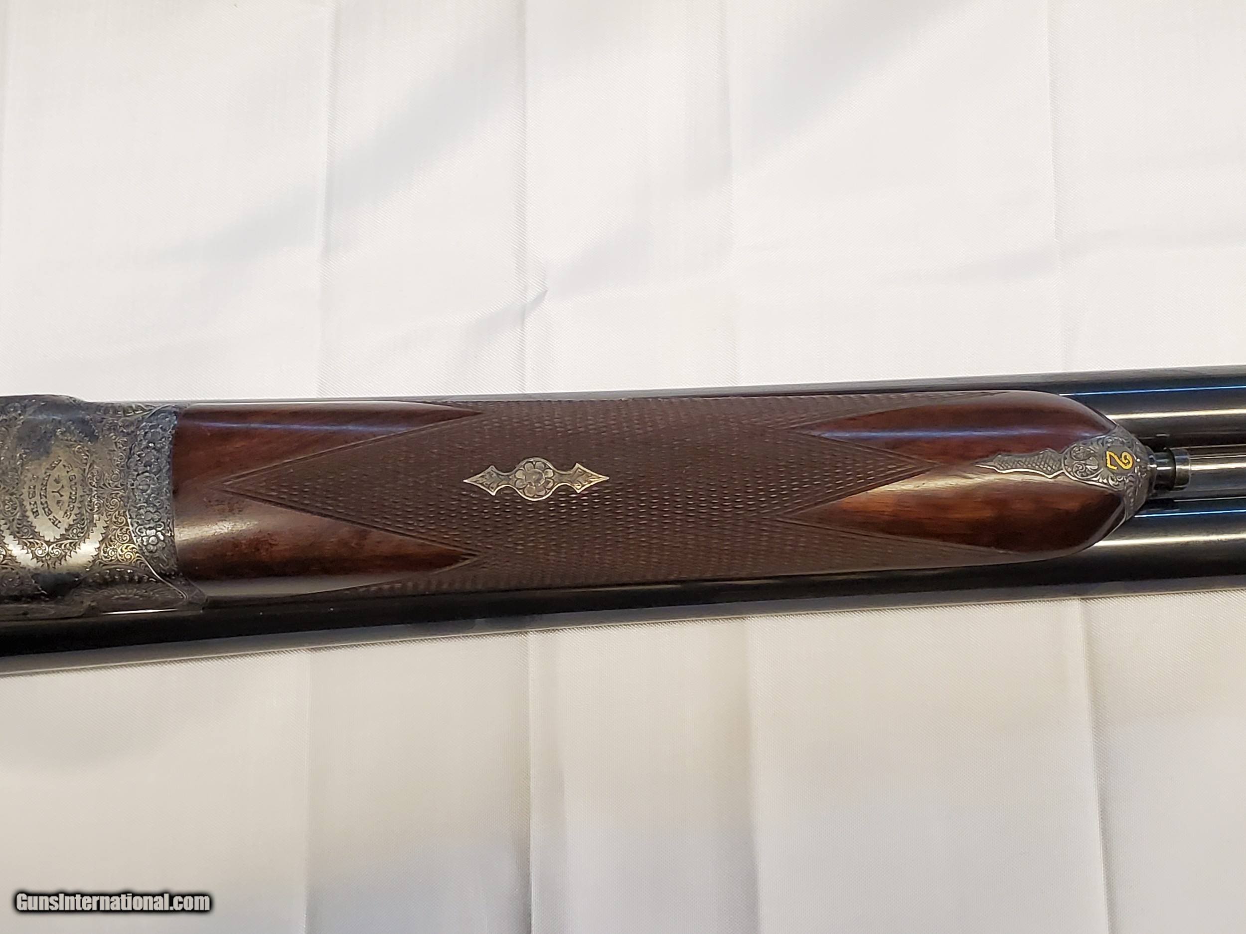 Description: This is a cased set of AYA No. 1 12 gauge side by side shotguns with 28 inch barrels. These shotguns were designed by Purdy for AYA. They are Classic English game guns, with double triggers and straight stocks. They do have ejectors. They are designed for English or Scottish gentleman to use for walking up birds. The firearms are in excellent condition. They only show wear on on the stocks where the user cradled them while walking. No. 1 set barrels appear to be improved modified and modified and the No. 2 set are full and modified. The set includes an Americase Premium Double Shotgun Case. SOLD Shotgun Gauge: 12 Gauge Manufacturer: AYA Model: No. 1 Barrel Length: 28 Chambers: 2 3/4 Ejectors: Yes Condition: Excellent Metal Condition: Excellent Wood Condition: Great Barrel Type: Side by Side Action: SIDELOCK Triggers: Double Stock: Straight Fore End: SPLINTER Manufacture Date: 1989 |