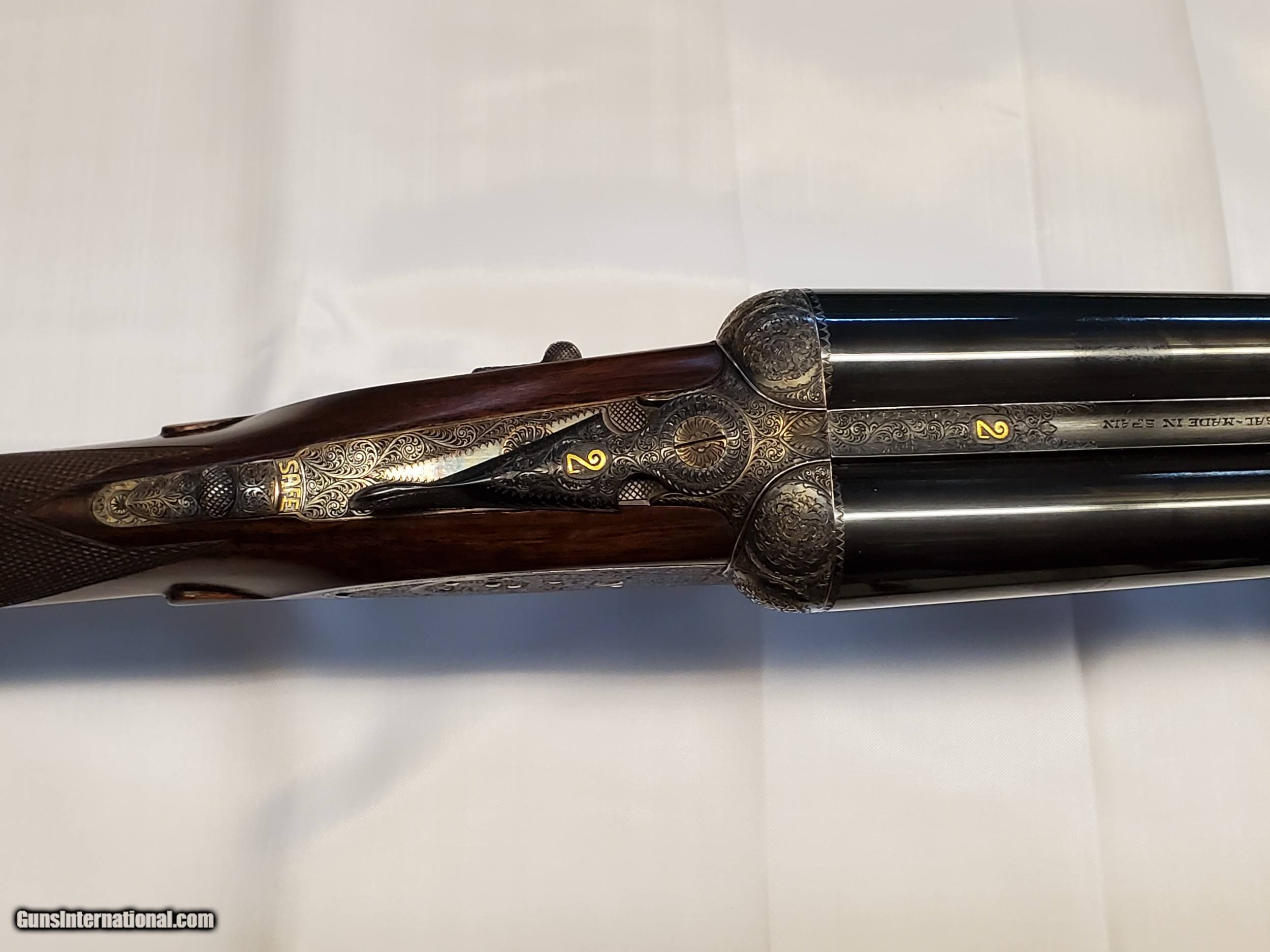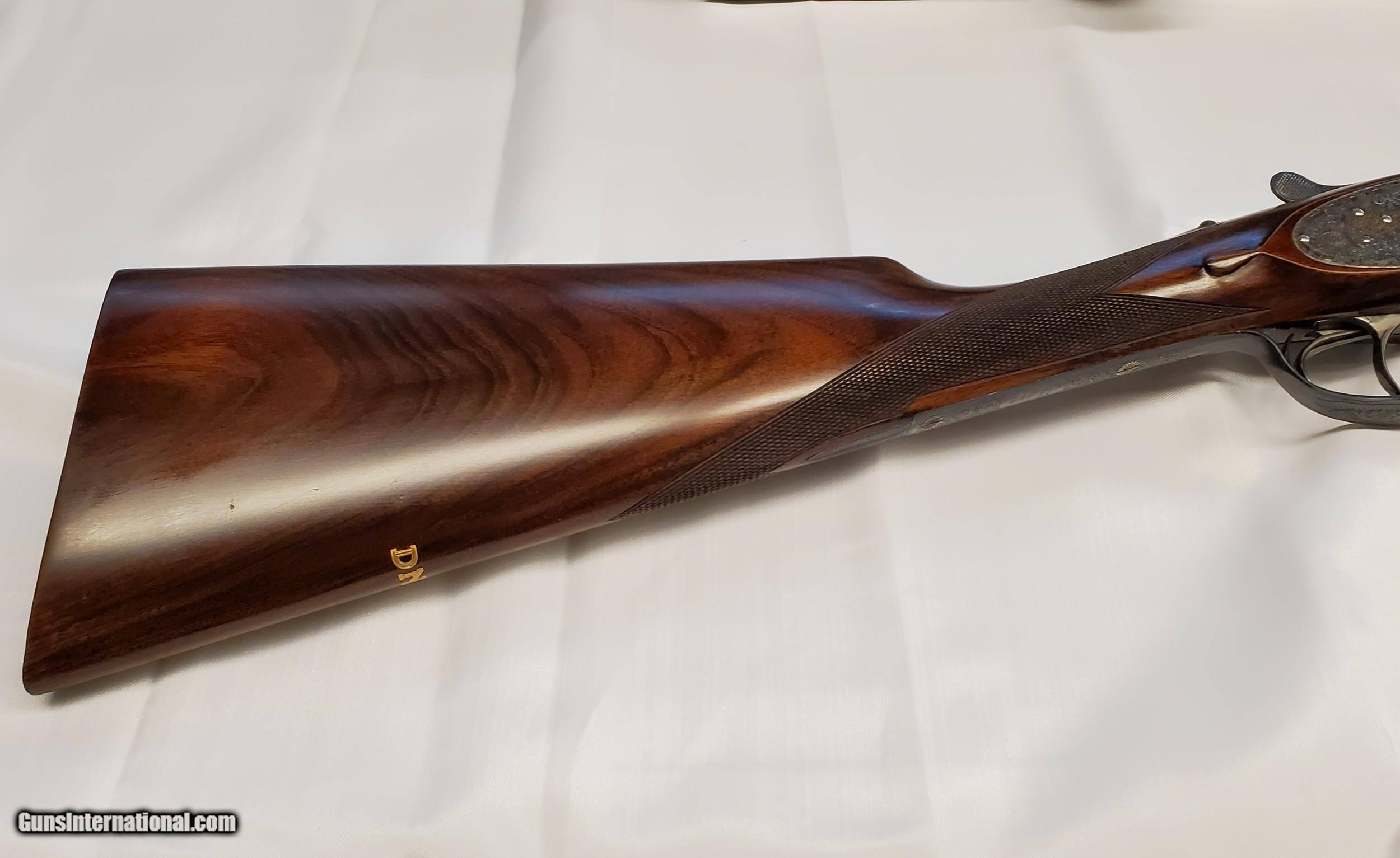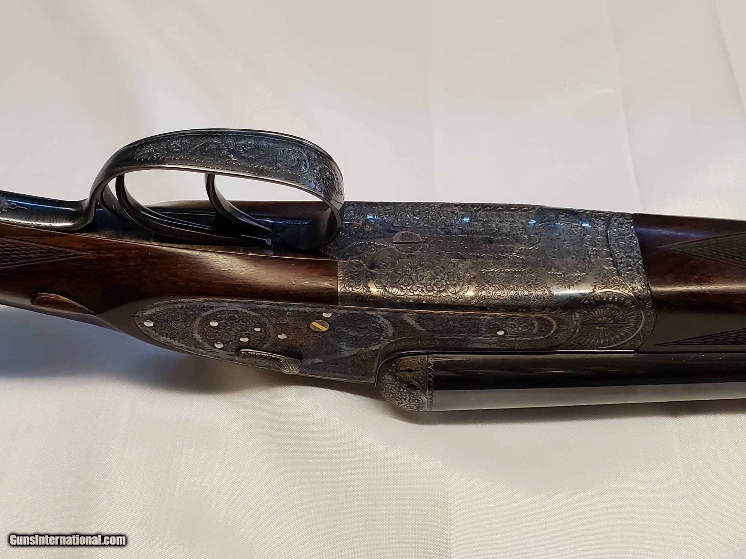 Description: This is a cased set of AYA No. 1 12 gauge side by side shotguns with 28 inch barrels. These shotguns were designed by Purdy for AYA. They are Classic English game guns, with double triggers and straight stocks. They do have ejectors. They are designed for English or Scottish gentleman to use for walking up birds. The firearms are in excellent condition. They only show wear on on the stocks where the user cradled them while walking. No. 1 set barrels appear to be improved modified and modified and the No. 2 set are full and modified. The set includes an Americase Premium Double Shotgun Case. SOLD Shotgun Gauge: 12 Gauge Manufacturer: AYA Model: No. 1 Barrel Length: 28 Chambers: 2 3/4 Ejectors: Yes Condition: Excellent Metal Condition: Excellent Wood Condition: Great Barrel Type: Side by Side Action: SIDELOCK Triggers: Double Stock: Straight Fore End: SPLINTER Manufacture Date: 1989 |