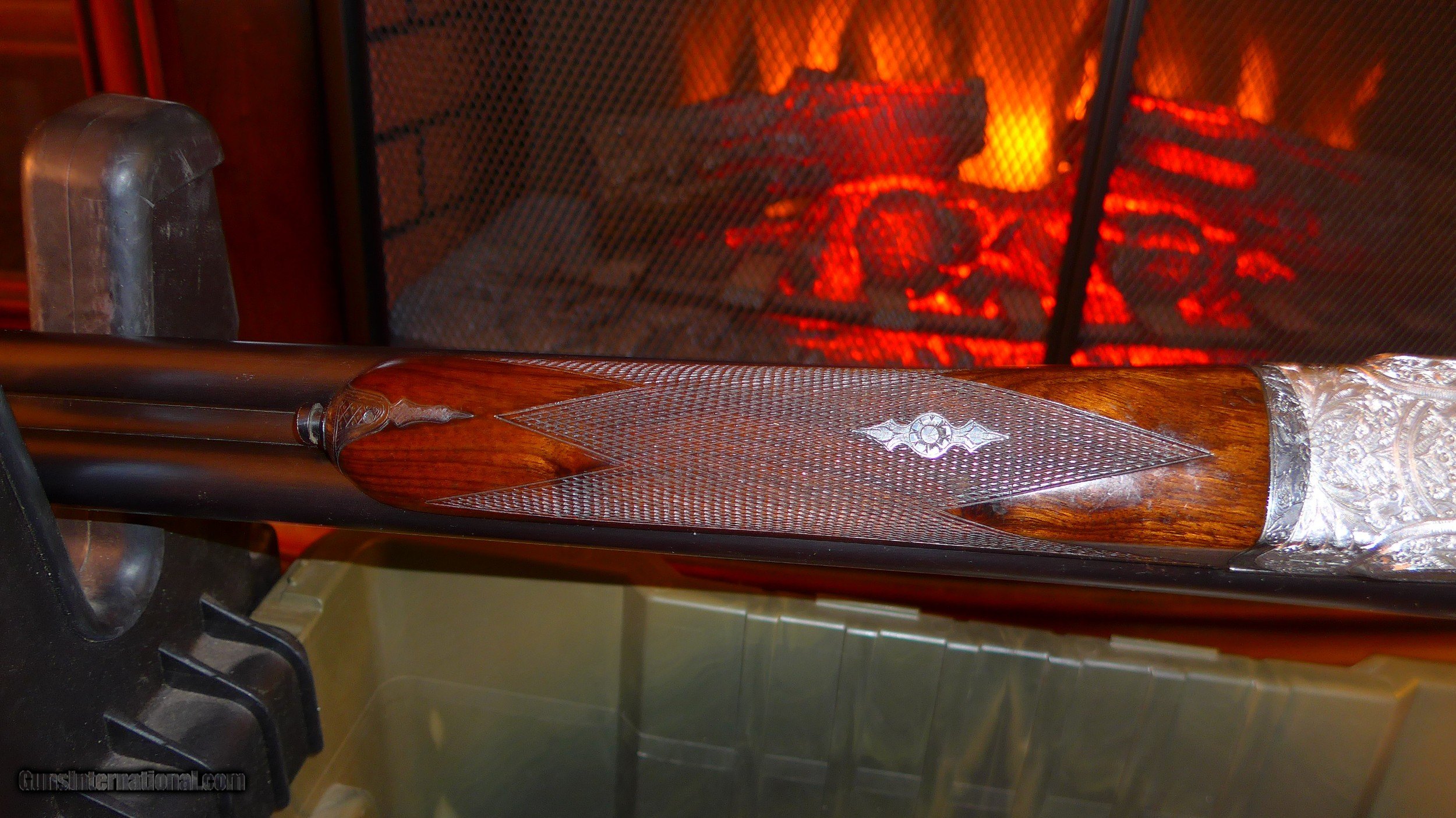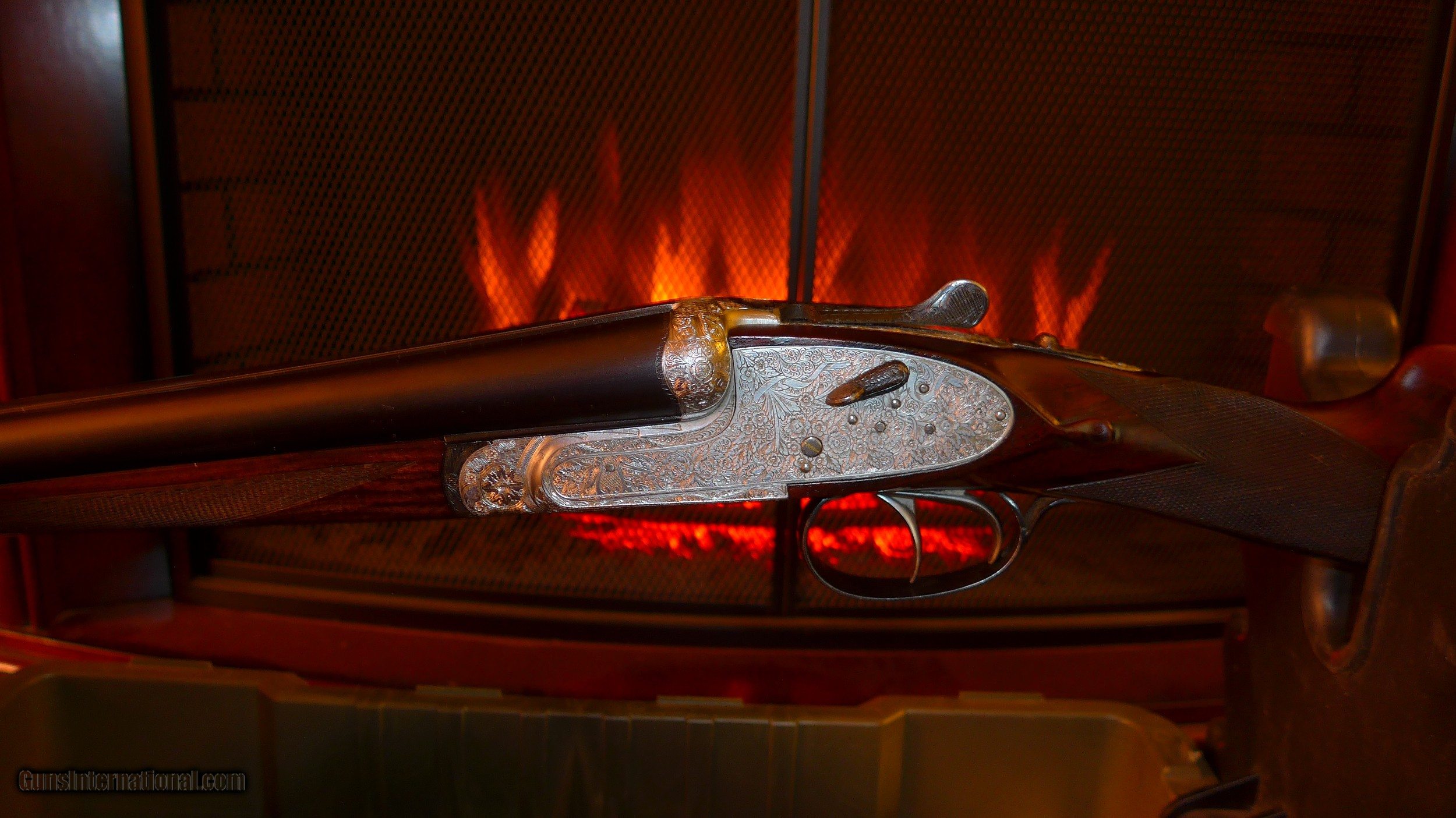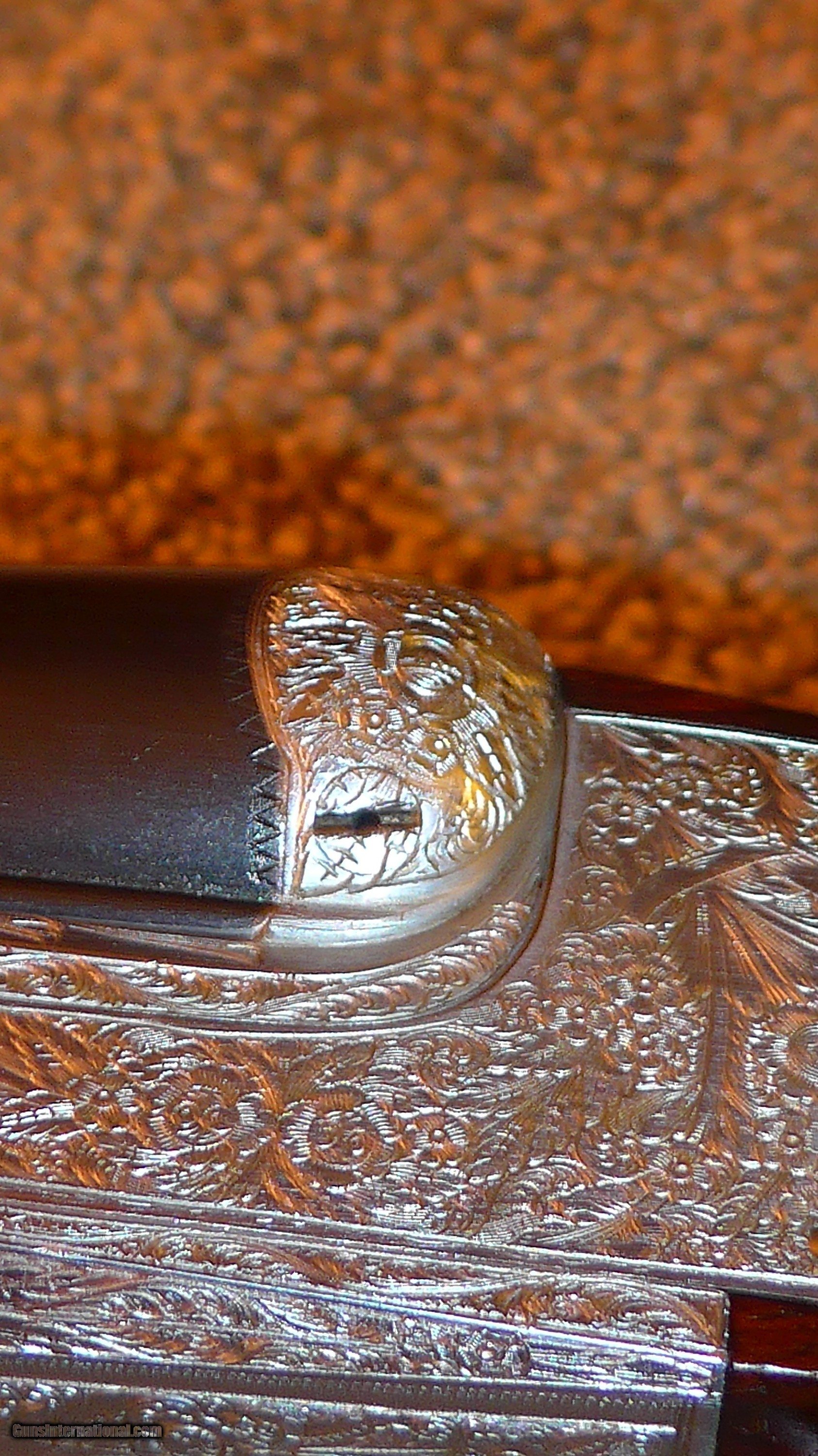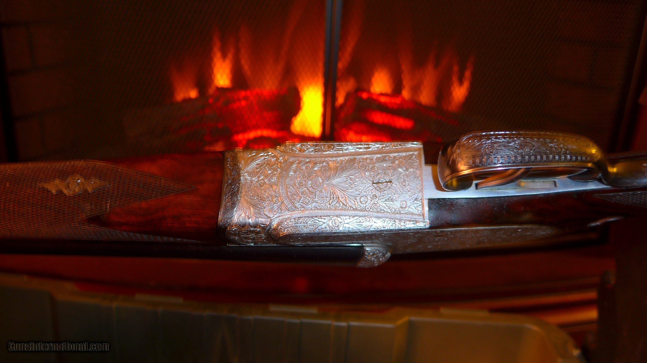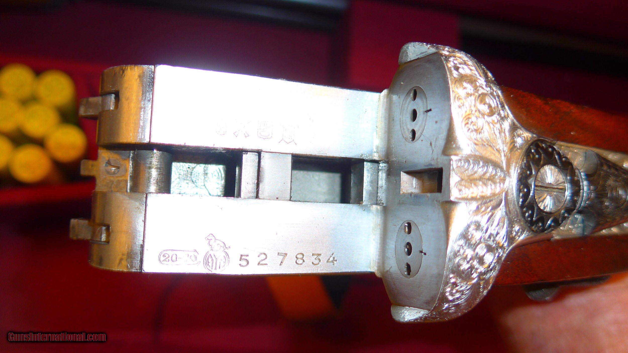 Description: A well-balanced game gun that rivals the best London made doubles. Made in the late 1970s weighing just 6 1/4 lbs with 28 in tubes choke 1/4 and 1/2 is deadly on quail, ruffed and sharp tail grouse doves and early season pheasants. The 20 bore comes cased and was bought in us in 1990 at Asprey's in London Information from AyA: The Nº 53 (also known over the years as the 53E and 53B) is one of the oldest models in the AYA catalogue, having been in production since the early 1950s. Both Jack O’Connor and Col. Charles Askins wrote glowingly about the Model Nº 53, which O’Connor described as one of the best values to be had in a side-by-side shotgun anywhere. The Nº 53 is similar to the Nº 56, in that it employs a Purdey triple-bite and sideclips for maximum strength. However, it is built on a standard-size frame and is slimmer and lighter than the Nº 56. It is engraved in a traditional European ribbon-and-floral patterns Product Description