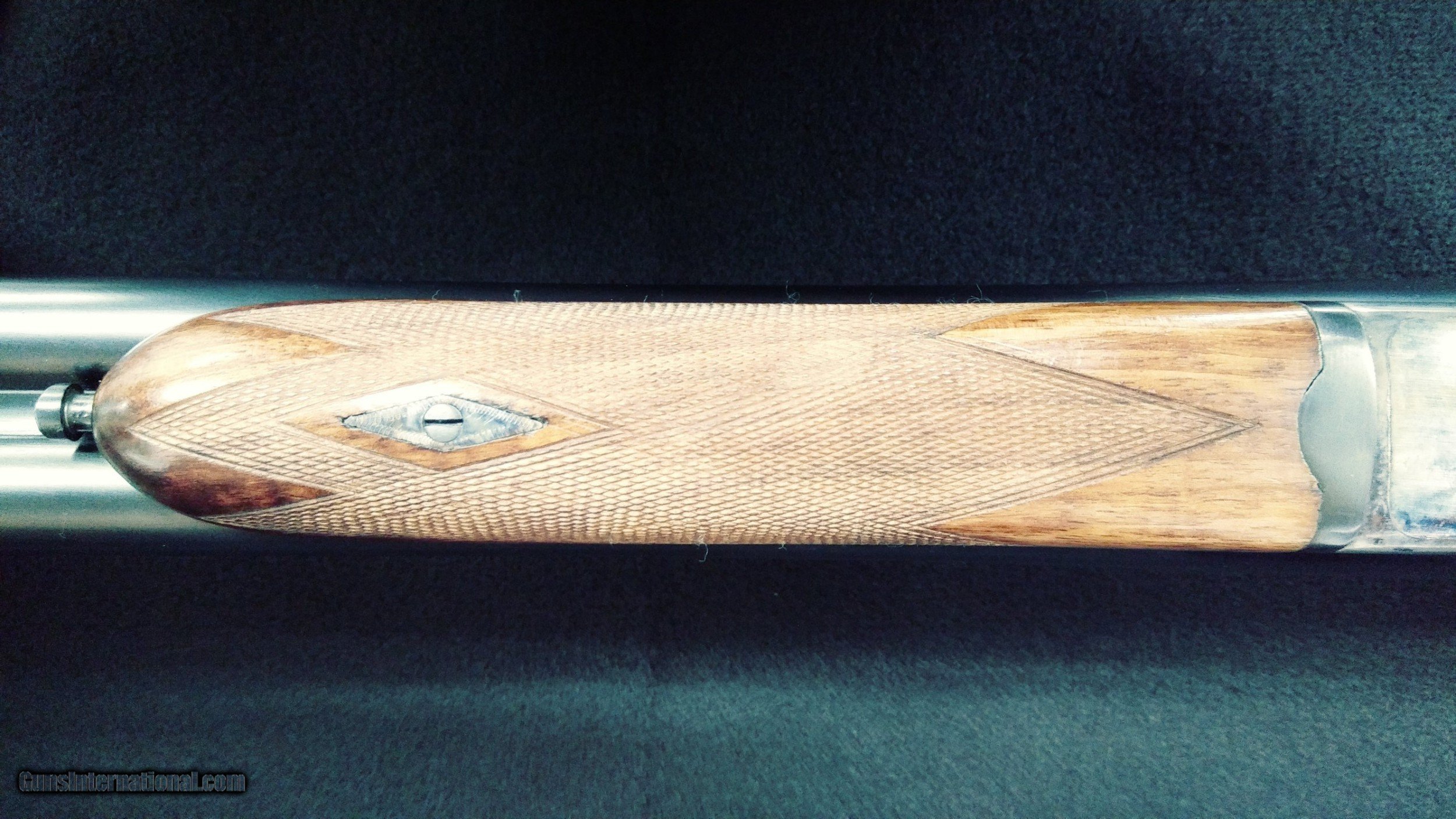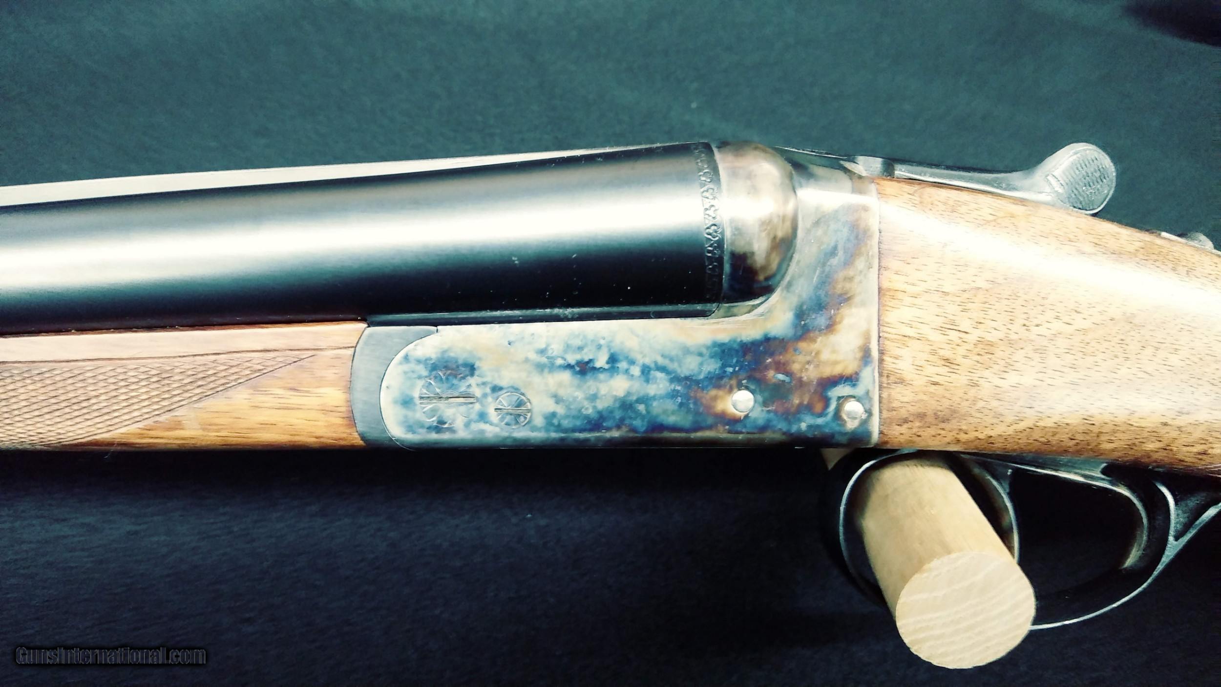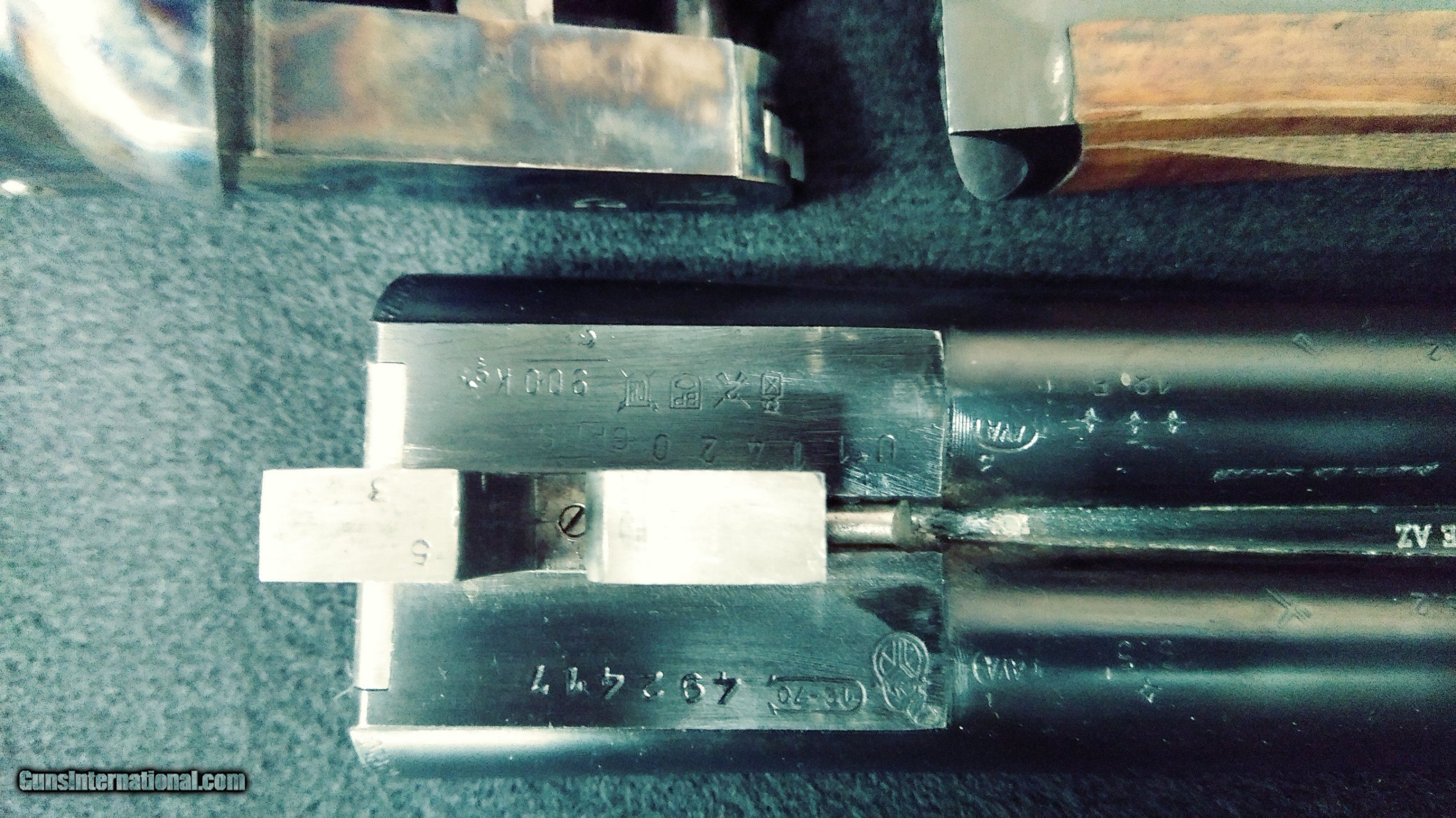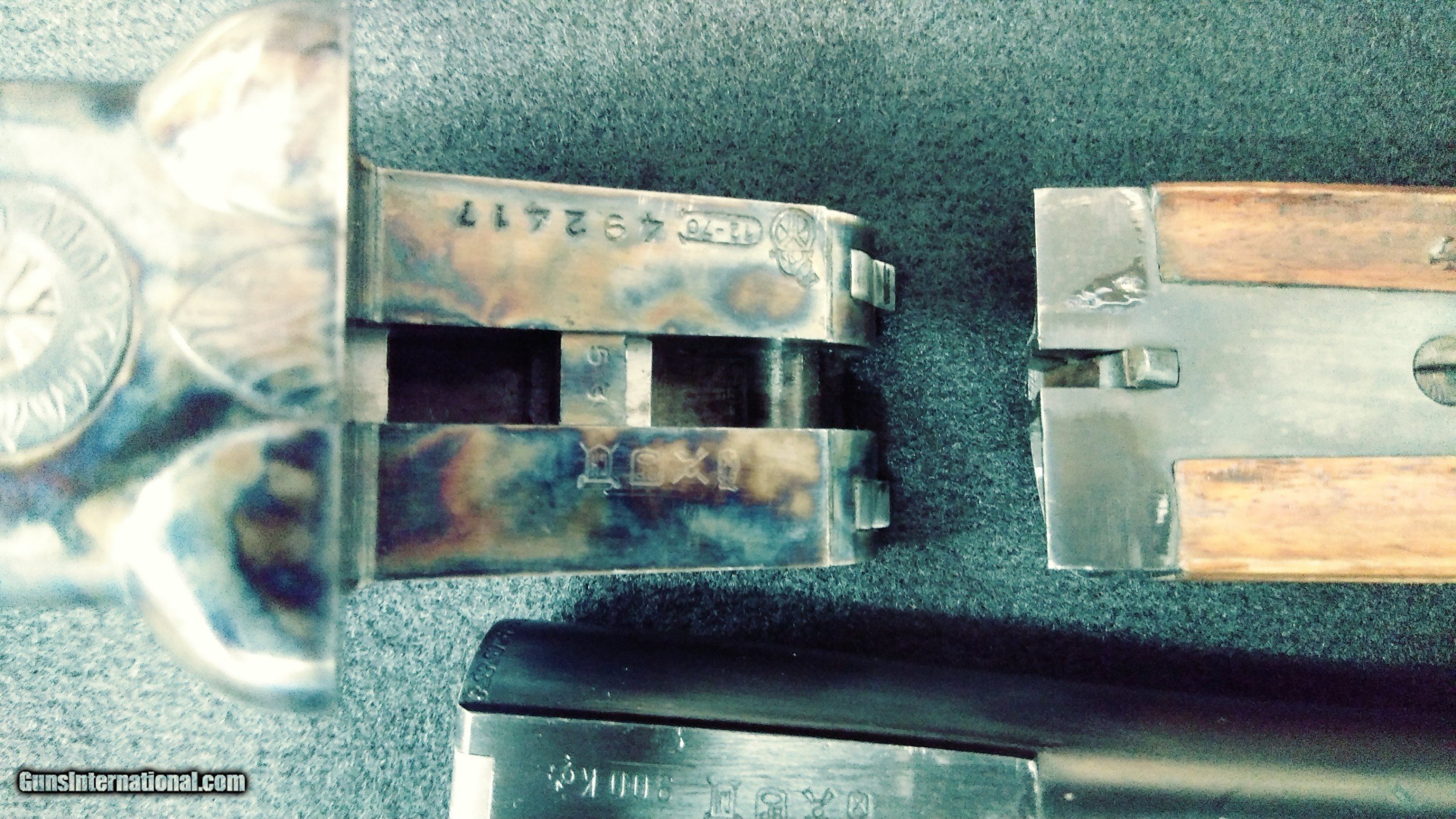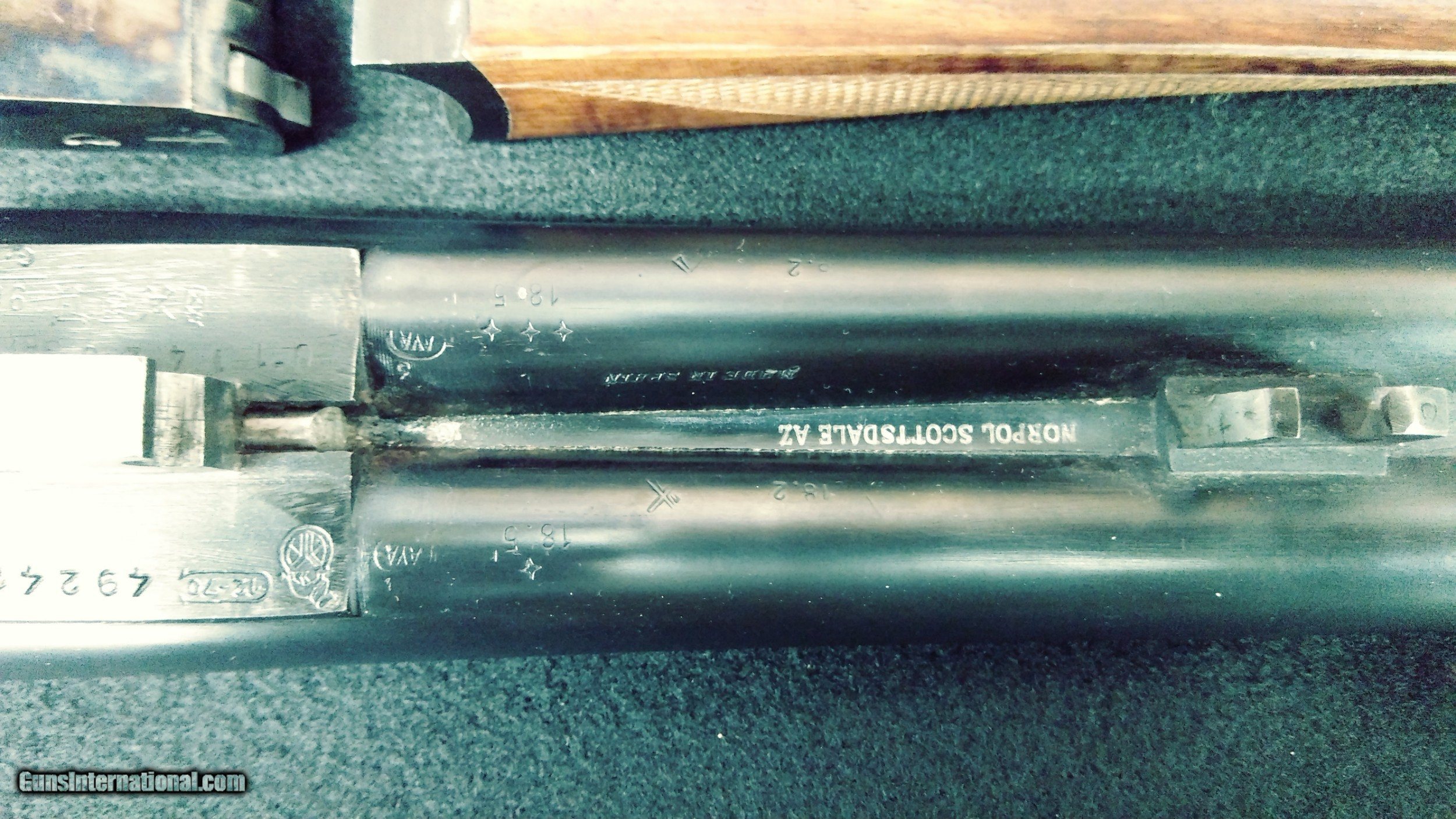Description: Manufactured by one Spain's finest gun makers in the late 70's, this AyA 12 Bore is in basically mint condition. (If you are not familiar with Spanish (Basque region) guns, look up books by Terry Wieland, one of the foremost authorties on them and see what he has to say!) The bores are bright and shiny with no blemishes. The barrels have their original bluing and only the very tiniest and nearly invisible minor blemishes for a gun that is 50 some years old. The lock has excellent case coloring as can be seen in the photos. The honey colored walnut stock is in very good condition with a deep, hard oil finish, and excellent checkering. My phone camera does not do the color justice. It is darker than it appears in these photos. It also does not have the muddy looking red/brown stain often found on some Spanish guns. The splinter fore-end is the Anson style plunger action and it is also oil finished with excellent checkering. The action is crisp and the triggers pull with authority. The gun is nice and tight and on face. The shoulder strap lugs have been removed and professionally plugged, but will come with the gun should a new owner want to re-install them. There is no cast to the stock, so this will work for a right or left hand shooter. I am a lefty and have found that this gun shoulders in beautifully. I will be shipping it in a Leg O Mutton case that I use to cart the gun around in, and it is sound but nowhere near as pretty as the gun! I know that you could buy a cheaper gun, but I am confident that you could not possibly buy a better gun at this price! Whomever the next owner is, that person is going to be delighted they bought this one! SOLD Curio/Relic: Yes Manufacturer: AyA Bore: 12 Chambers: 2 3/4 Ejectors: Extractors Condition: Very Good Metal Condition: Very Good Wood Condition: Very Good Bore Condition: Smooth and Bright Barrels: 28 Barrel Type: Steel Action: Boxlock Triggers: 2 Gauge Info: 12 Stock: Walnut Stock Comb: 1 1/2 Stock Heel: 2 3/8 Stock Cast: none Fore End: Anson Style Splinter Butt Pad: Ebony LOP: 14 1/2 Rib: solid Finish: Very good Choke Left: 18.2 mm (0.716") Choke Right: 18.5 mm (0.728") Case: Leg of Mutton Item Location: OR Proof:Nitro: Yes |