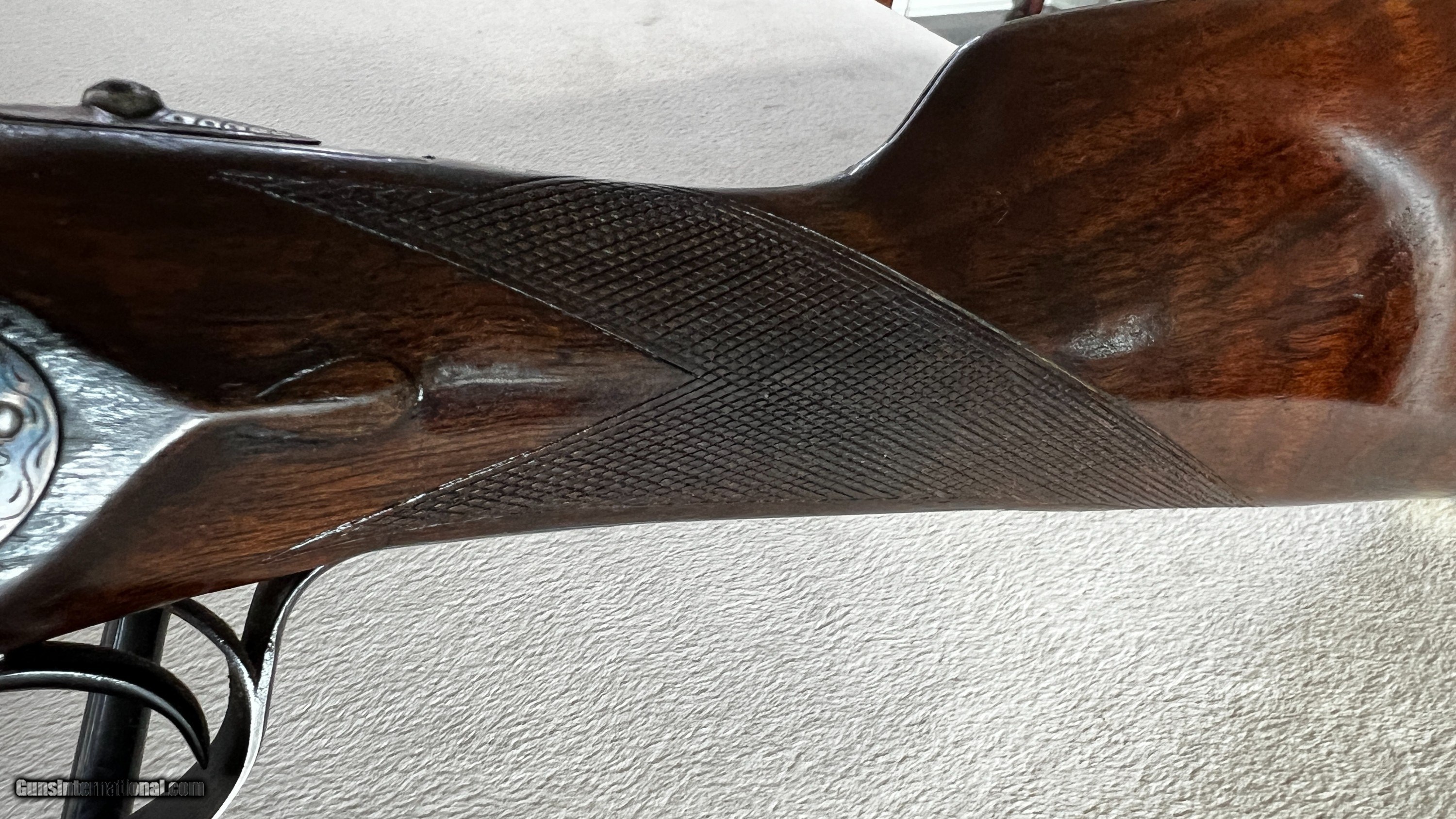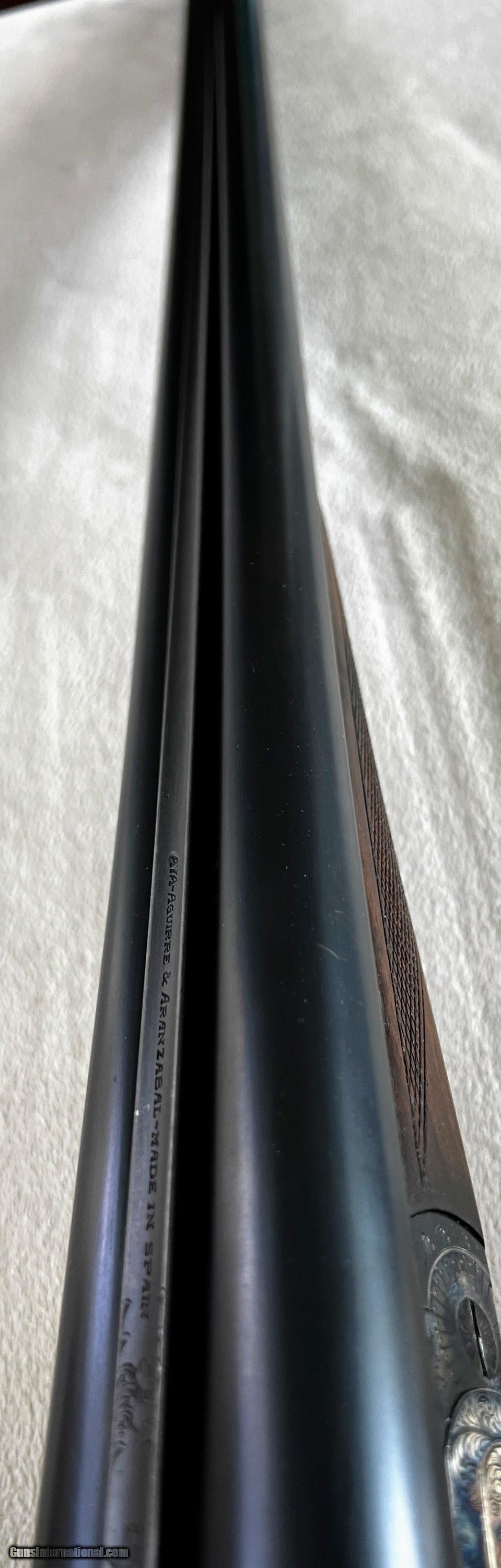 Description: "PLEASE NOTE: I WILL BE UNABLE TO SHIP FROM OCT 23RD UNTIL NOV 5TH. PLEASE DO NOT PURCHASE IF YOU NEED DELIVERY DURING THAT PERIOD!" "REDUCED FROM $2,600" Up for your consideration is an AYA $2 in 12Ga with 28" barrels and choked IC and M. Maintain 85-90% of color cased harden action with great scroll engraving. Metal and wood are all original with no noticible defects. It is however a used gun and has signs of usage. Everything is in excellent condition. Please see all the high quality photos to determine condition for yourself. Let me know if you have any questions or need photos of a particular area. Price listed is for cash, but credit cards are available for and additional charge of 3 1/2%. Gun will be shipped to the lower 47 (no shipping to CA) for $40. Insurance is not included but highly recommended. Shipped only to an FFL and if your FFL does not accept a shipment from an individual with a bill of sale and copy of drivers license, add $25 to the order to cover my cost of using my FFL. Sold only where legal to purchase and you are responsible for knowing your local laws. SOLD Shotgun Gauge: 12 Gauge Manufacturer: AYA Model: #2 Barrel Length: 28 Bore: Excellent Chambers: 2 3/4 Ejectors: Yes Condition: Very good/Excellent Metal Condition: Very Good/Excellent Wood Condition: Very Good Bore Condition: Excellent Barrels: Blued Barrel Type: SxS Action: SxS Triggers: Double Stock: Walnut LOP: 13 3/4" & 14 5/8 |