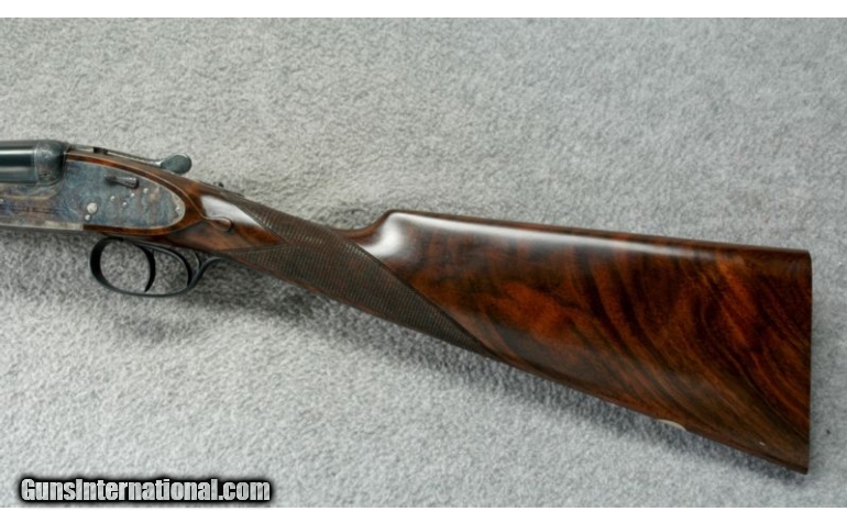 Description: AyA #2 20 Ga. This gun is new in the box, unfired. SOLD Manufacturer: New Caliber Info: 20 Gauge Chambers: 2 3/4 Metal Condition: New Wood Condition: New Bore Condition: New Barrels: 29 Triggers: Double Triggers w/Automatic Safety Stock: Checkered Straight Grip English Fancy Walnut Stock Dimensions: LOP 14 3/4 Fore End: Checkered Splinter Fancy Walnut Butt Pad: Checkered Wood Butt Weight: 6 Lbs., 2 Ozs. Sights: Single Bead on Smooth Concave Rib Chokes: Modified and Improved Cylinder Extras: Box, Cocking Indicators, Detachable Sidelocks. Item Location: East Hartford, CT |