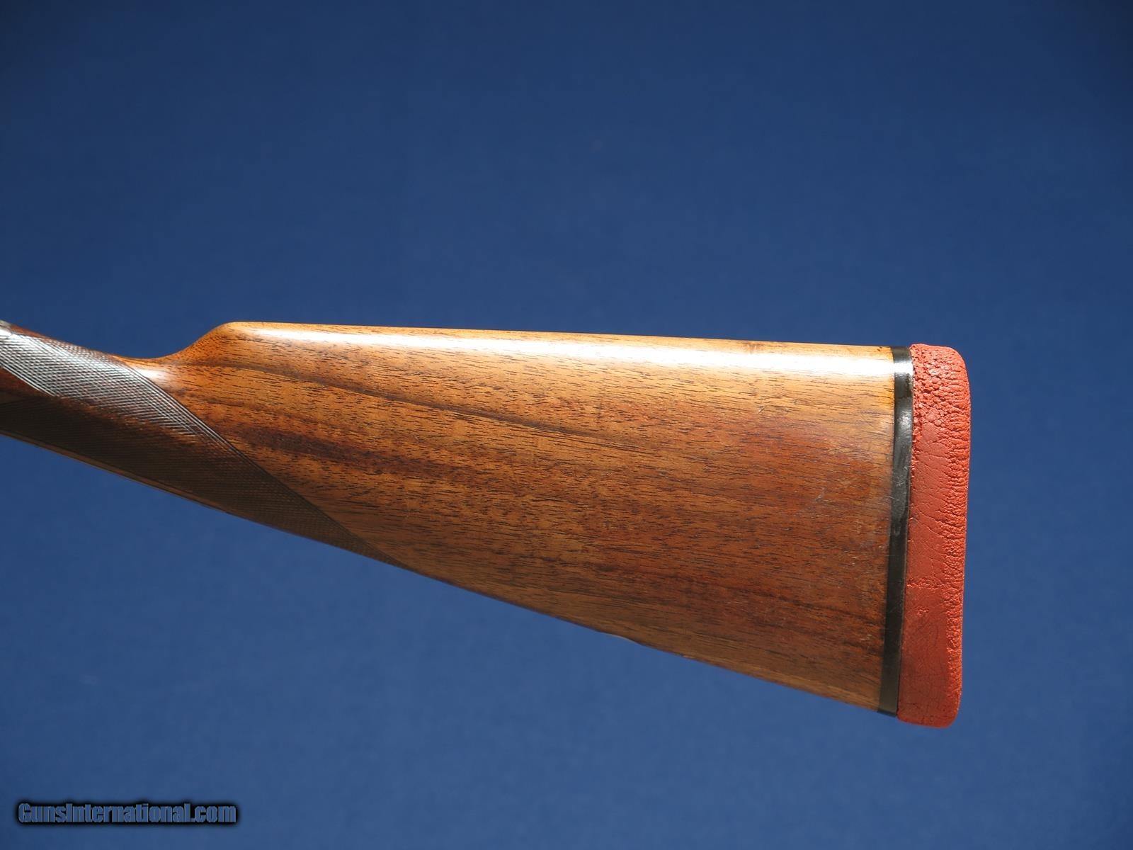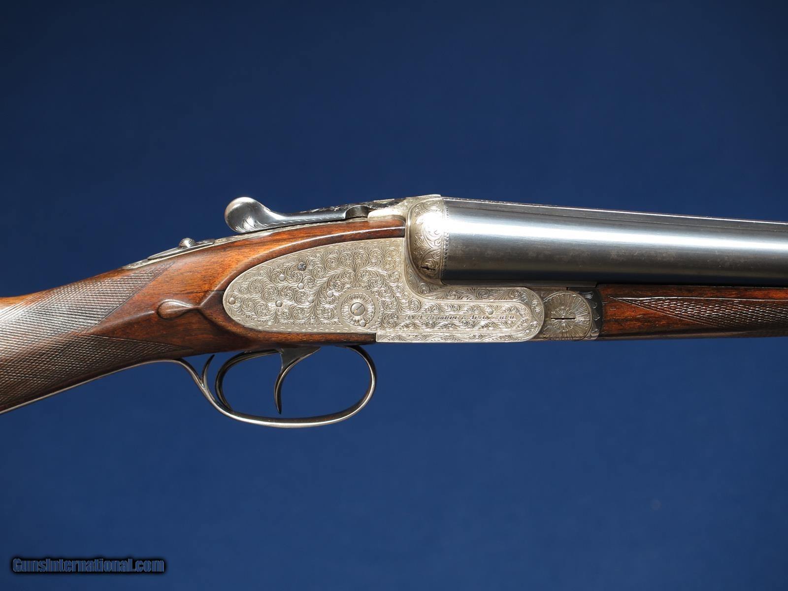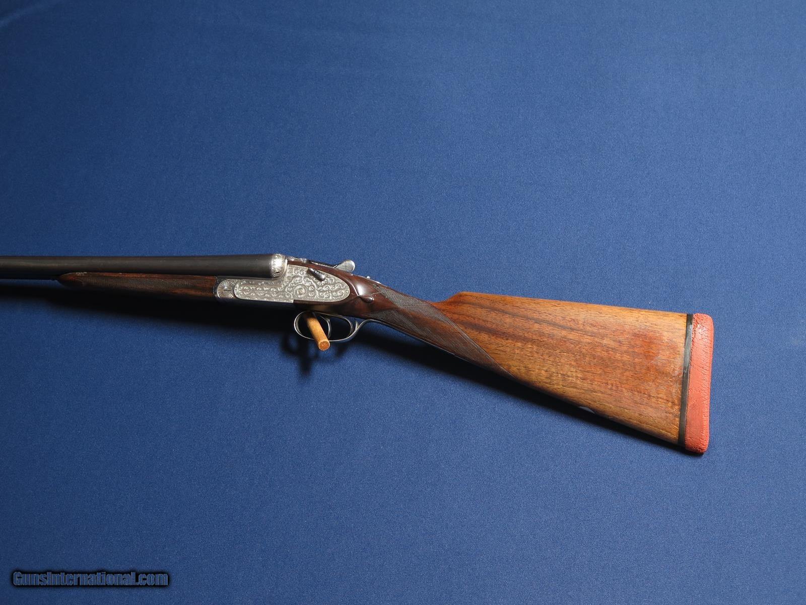 Description: AYA #2 12ga. 26 inch IC & MOd. .010 & .020. Double triggers, hinged front. Automatic ejectors. Detachable sidelock full scroll engraved. 15 3/8 LOP pad. 14 5/16 to wood. Crack in stock in wrist. Nice condition with a little handling wear on barrels. Excellent bores. SOLD |