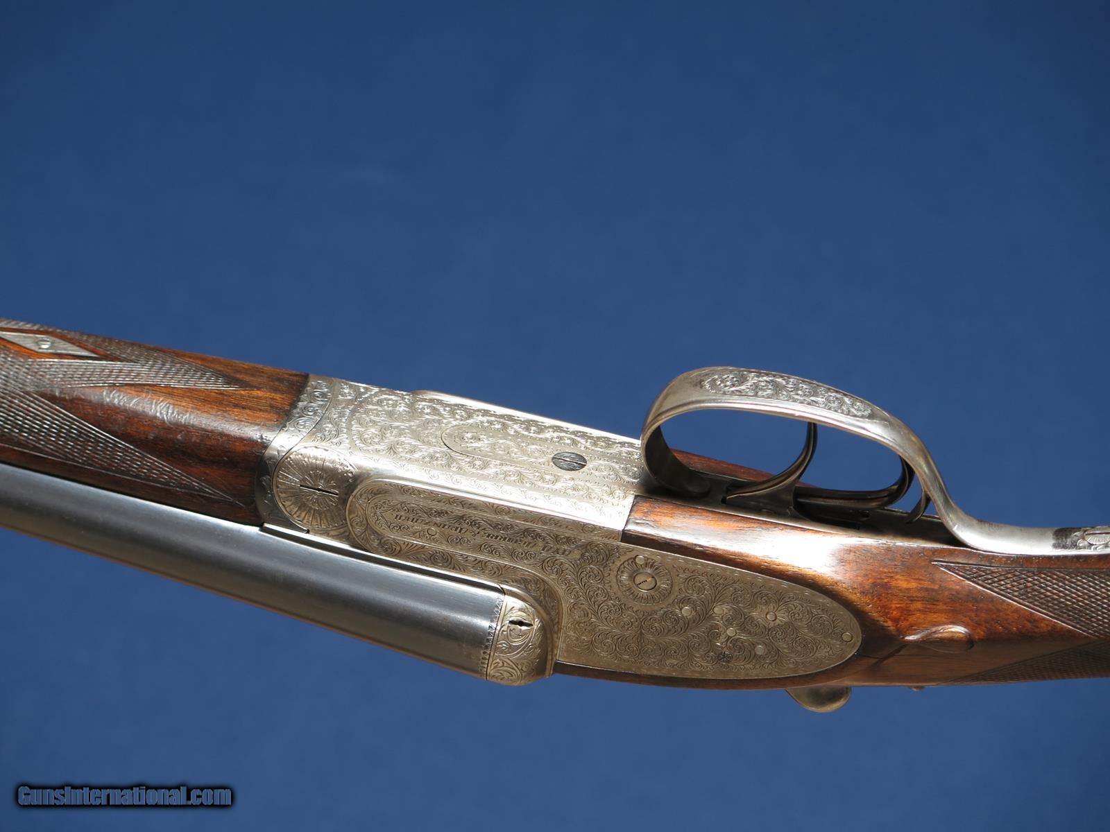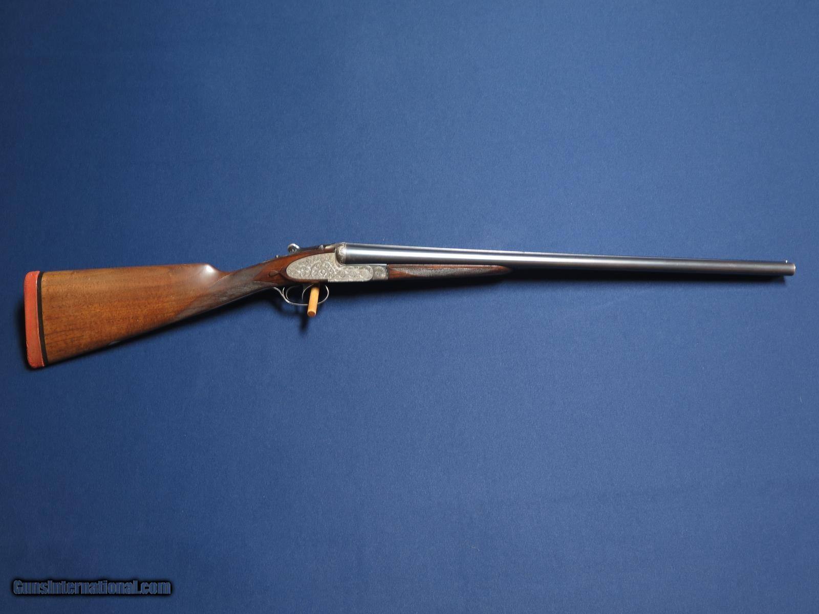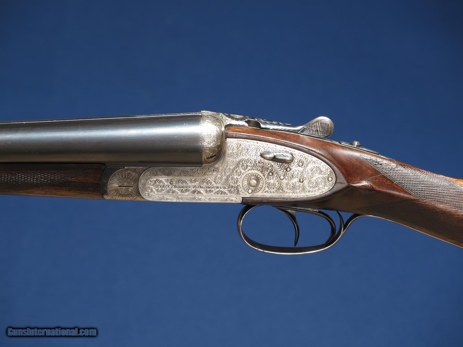 Description: AYA #2 12ga. 26 inch IC & MOd. .010 & .020. Double triggers, hinged front. Automatic ejectors. Detachable sidelock full scroll engraved. 15 3/8 LOP pad. 14 5/16 to wood. Crack in stock in wrist. Nice condition with a little handling wear on barrels. Excellent bores. SOLD |