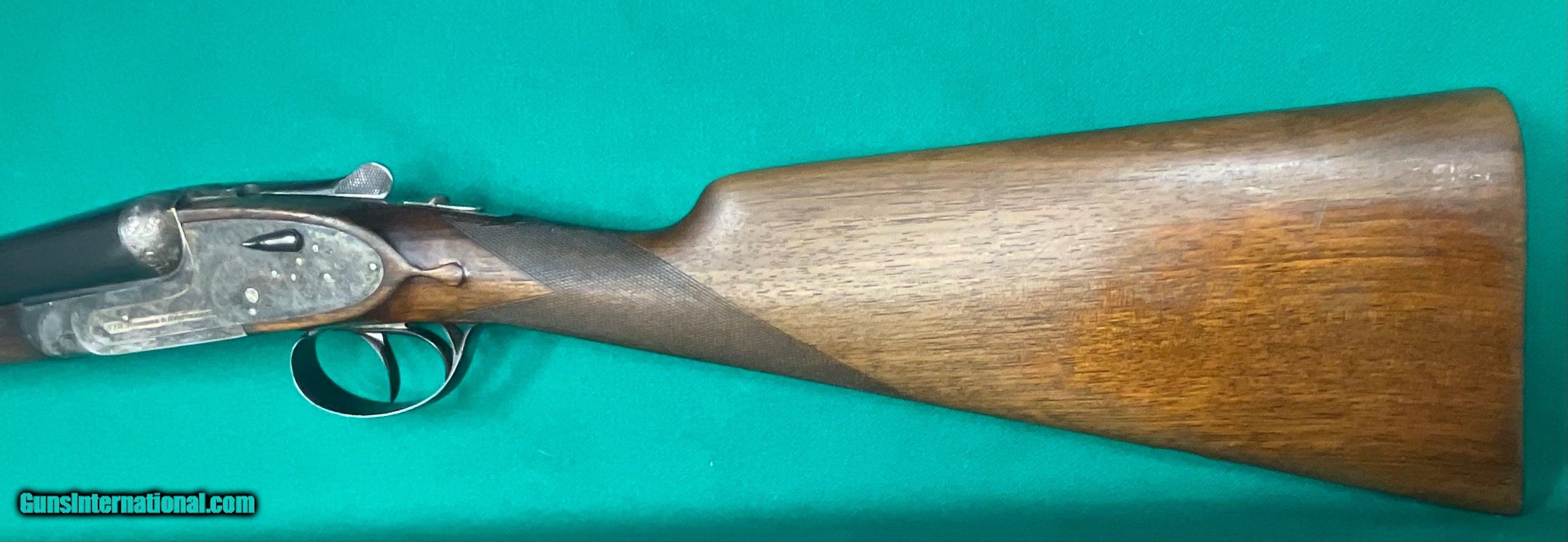 Description: AYA #2 true sidelock with double triggers and ejectors. 12 gauge - 2 3/4 chambers. 26 inch barrels with mirror bores. Improved cylinder in both barrels. Weighs 6 pounds 7 ounces. rather plain wood on this one with English style flat top checkering. Excellent blue. Great upland game gun. $1948 plus $50 insured shipping. No credit cards and no trades. 5 month layaway available. C&R ok. SOLD Curio/Relic: Yes |