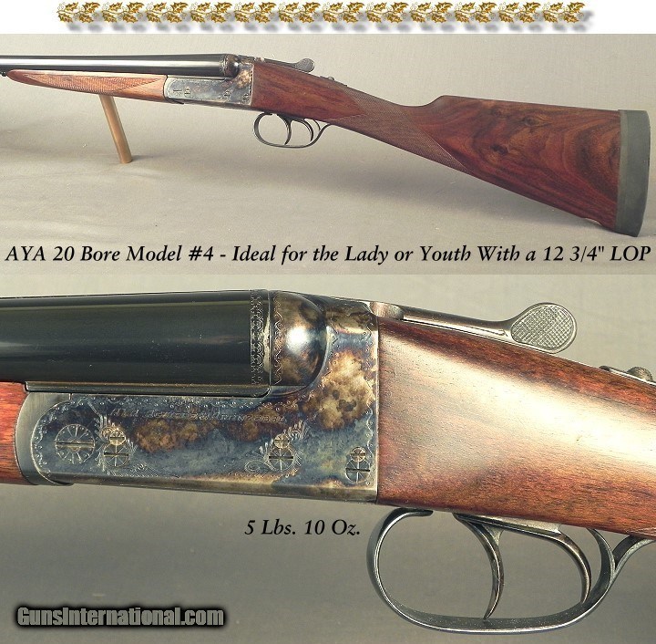 AYA 20 BORE BOXLOCK EJECT MOD No. 4- IDEAL FOR THE LADY or YOUTH with a 12 3/4" LOP- 2004- 28" CHOPPER LUMP Bbls.- DOUBLE TRIGGERS- OVERALL 99% COND
