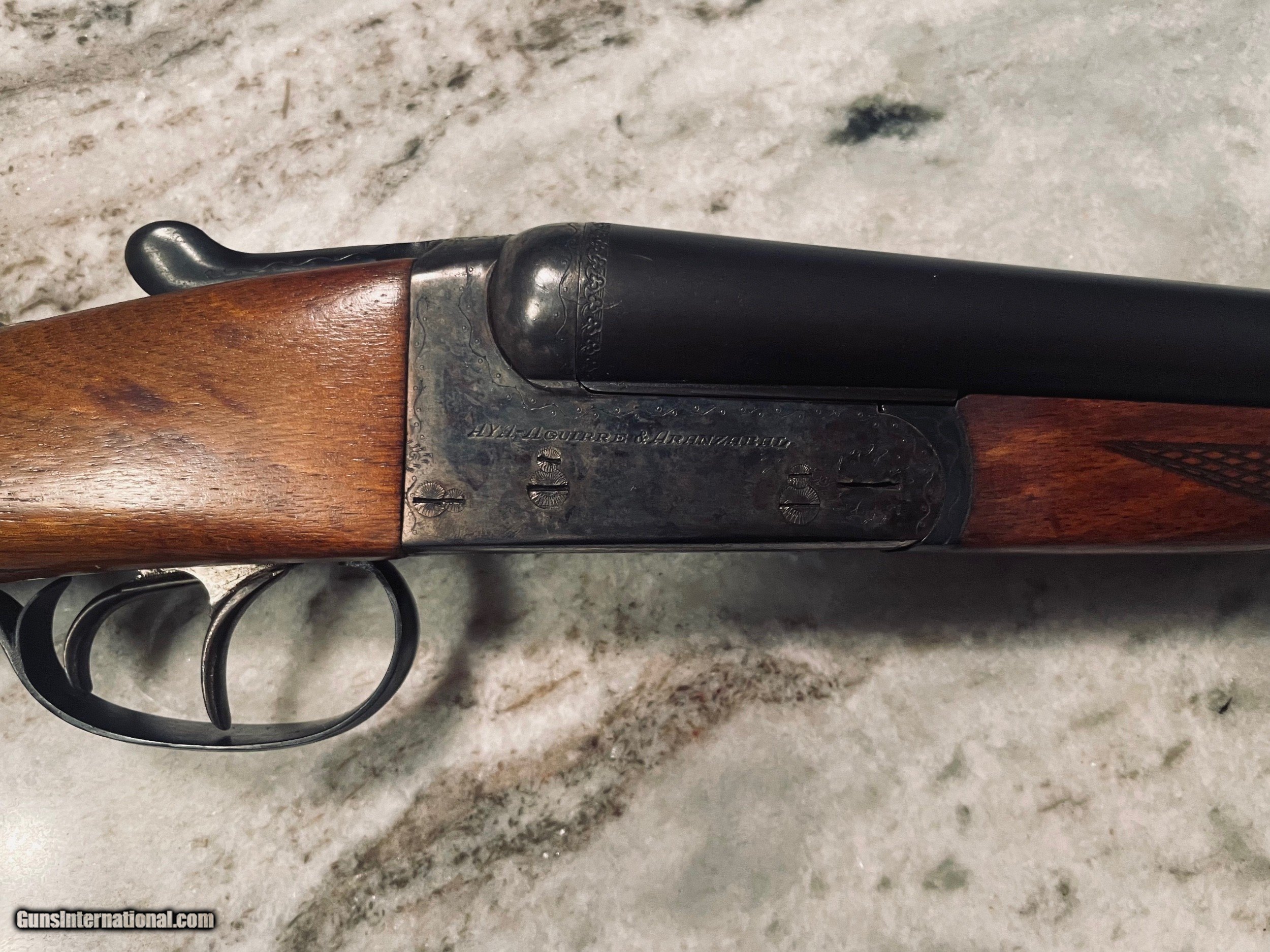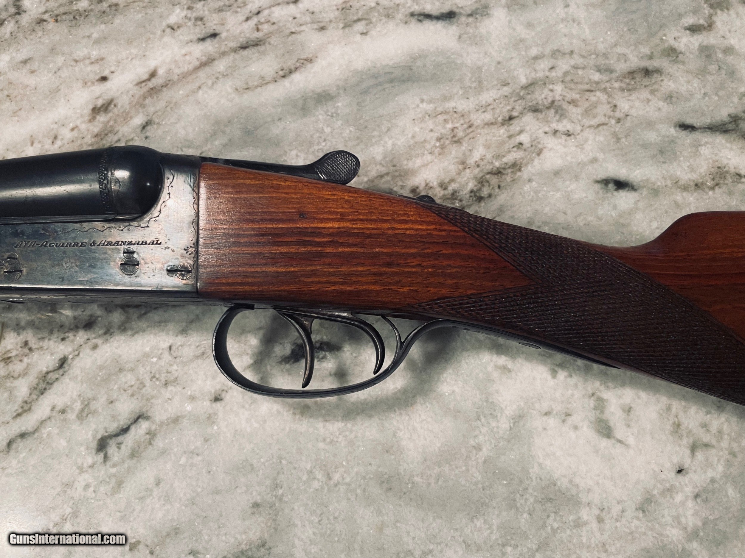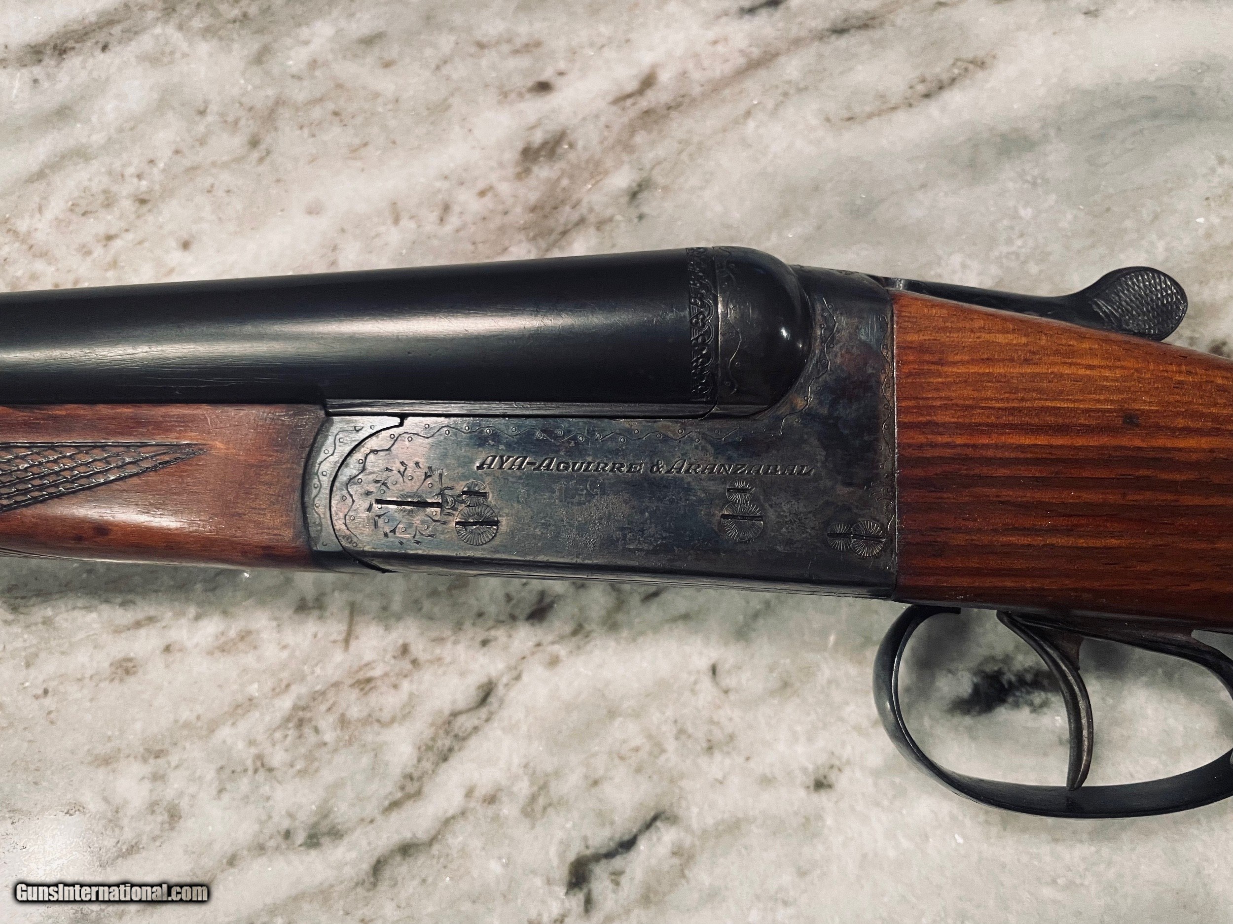 Description: AYA box lock in very good condition. The ejector version of this gun cost $4500. Nice wood, sharp checkering, good bluing and case hardening. $1500 shipped Fedex. 786-375-1709 AYA #3-20g 27” Barrels 14 3/8 LOP 1 1/2 DAC 2 DAH 5 lbs 10oz. Choked IC/M SOLD |