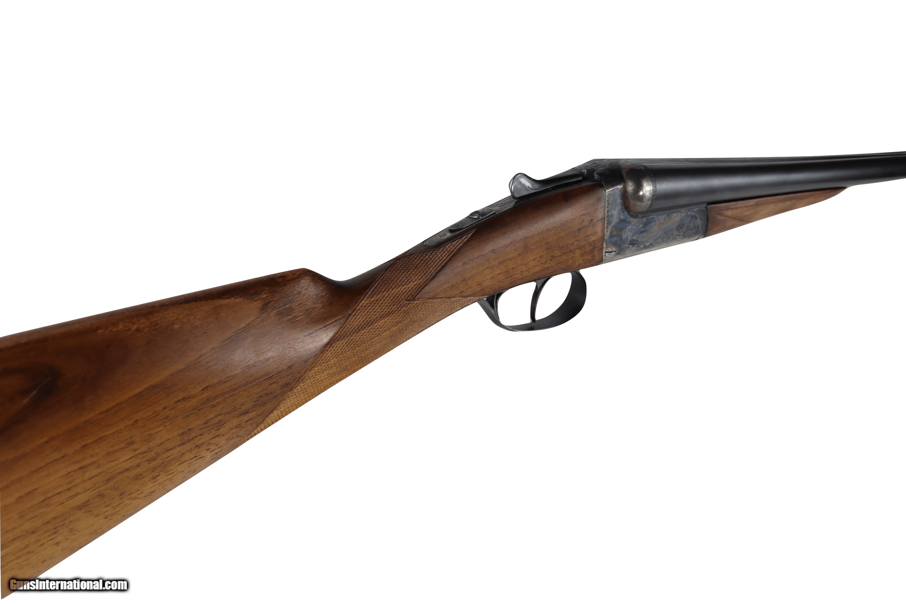 Description: For your consideration is an AYA No.4/53 12-bore BOXLOCK EJECTOR, serial no. 475272. The gun features 28in. nitro-proved, chopperlump barrels, 2 3/4in. chambers, choke-bored improved cylinder in the right tube and improved modifed in the left, automatic safety, removable striker discs, border engraving, and a 14 1/4in. stock. Weight is 6lb. 7oz. The gun retains most case colors and finish. Brass escutcheon on the stock. Trigger pulls have been regulated to 4lbs on the front trigger, and 5 lbs on the rear. The stock length of pull can easily be adjusted to suit a new owner by adding recoil pads of different thicknesses. Bores are bright and shiny. Also included is a lovely leather case, also in very good condition. The green felt lining inside the case is in very good condition, with little wear and no musty smell. This gun handles beautifully, and balances nicely directly over the hinge pin. This gun has just been completely mechanically overhauled by an English gunmaker, and has not been used since. Inside it is in like-new mechanical condition. All checkering on the grip, fore end and stock butt has been professionally re-cut, and the diamonds are sharp and crisp. Moreover, the gun has been demonstrated to be in proof. The stock is London-style oil finished, and the wood is in very good shape. It is ready and safe to shoot, and needs no work done to it. I have provided a copy of the work invoice, with personal and bank details blacked out, to confirm this. You can see the Norfolk, UK, address of the gunmaker in the top left corner of the invoice, and the gun is referenced by its serial number. I have also blacked out the details of another gun on the same invoice. I purchased this gun from the UK, and had it overhauled there by an indepedent gunmaker/gunsmith formerly affiliated with Holland and Holland. Essentially, the gun has been brought up to a like-new mechanical standard by a world-class craftsman. I purchase all my guns for re-sale from the UK because it is illegal to sell a gun there that is out of proof, so the buyer is protected by law from purchasing an unsafe or un-use-able shotgun. Moreover, they have world-class gunsmiths who perform outstanding work. As long as you continue to maintain this gun to its present standard by having it professionally cleaned and lubricated every year, it will continue to function without fault well into the future. There is nothing else which would need to be done. Everything has been inspected, and brought up to standard. The recent maintainence regime performed on this gun was as follows: 1) Completely dissassembled and all metal work boiled in a specially-formulated solution to deep clean and raise any rust down to the smallest crevice. 2) Every part was checked over for soundness, and then all parts were polished and lubricated. 3) The action was tightened, and barrel and fore-end fit were regulated. 4) Bores, chambers and chokes were lapped and polished. 5) Triggers pulls were verified to be at 4 and 5 lbs. 6) All checkering re-cut. As is the English custom, the gun was then fired 50 times by the gunsmith to verify that all work was done properly. The gun has not been fired since. AyA was founded in 1917 by Miguel Aguirre and Nicolas Aranzabal to make locks for the trade in Eibar, in the Basque region of northern Spain. By 1953 the company had expanded to become the largest gunmaker in Eibar with over 500 employees, not counting outworkers. From 1950 to 1965 the annual production was approximately 20,000 guns per year. Following economic downturns and a series of reorganizations, by 1988 AyA was reshaped as a gunmaking company by Imanuel Aranzabal, who focused on producing British-pattern side-by-sides in box- and side-lock configurations in smaller numbers and in higher quality only. The company now employs between 12 and 25 employees who preserve traditional methods to hand-make high-quality guns in side-by-side and over/under models that closely match the traditional British ideal of style and handling. Today, AyA guns represent some of the best value-for-quality firearms found anywhere in the world. The gun is a faithful Anson and Deeley boxlock with Southgate-patent ejectors, which are well timed, and perform nicely. Although this is AYA's most basic model, it is a very lively gun, with excellent handling characteristics, and features all the construction details found on their much more expensive guns, such as chopper-lump barrels, remove-able hinge pin, hand-struck barrels, disc-set strikers to limit gas escape and a heat-treated action with true case coloring. The only qualities that have been omitted are the superficial, such as highly-figured wood and lavish engraving. New, this gun sells for between $6,000 and $7,000. Gun Details: Drop at Comb: 1 11/16"" Drop at Heel: 2 1/2" LOP 14 1/4" Cast Off: 1/8" at face; 1/4" at heel Weight: 6 lbs 7 oz. This gun is located at my premises in Maine. Please contact me with any questions. I am happy to help. 3-day, non-firing/non-disassembly inspection and return policy on used guns. Buyer is responsible for shipping, insurance and FFL fees for all returns. Firearms are transferred to FFL Dealers only. The buyer is responsible for finding a FFL to handle the Firearms Transfer from a non FFL seller. SOLD Manufacturer: AYA Model: 4/53 Serial Number: 475272 Bore: 12 Chambers: 2.75 Ejectors: Southgate Patent Condition: Very Good Metal Condition: Very Good Wood Condition: Excellent Bore Condition: Excellent Barrels: chopper lump Barrel Type: side by side Action: Anson and Deeley Triggers: double Stock: walnut Stock Dimensions: 14.25 Stock Comb: 1 11/16 Stock Heel: 2 1/2 Stock Cast: off Fore End: Splinter Butt Pad: checkered LOP: 14 1/4 Rib: Concave Finish: oil Weight: 6lb 7 oz. Choke Left: improved modified Choke Right: improved cylinder Case: Leather Proof:Nitro: Yes |