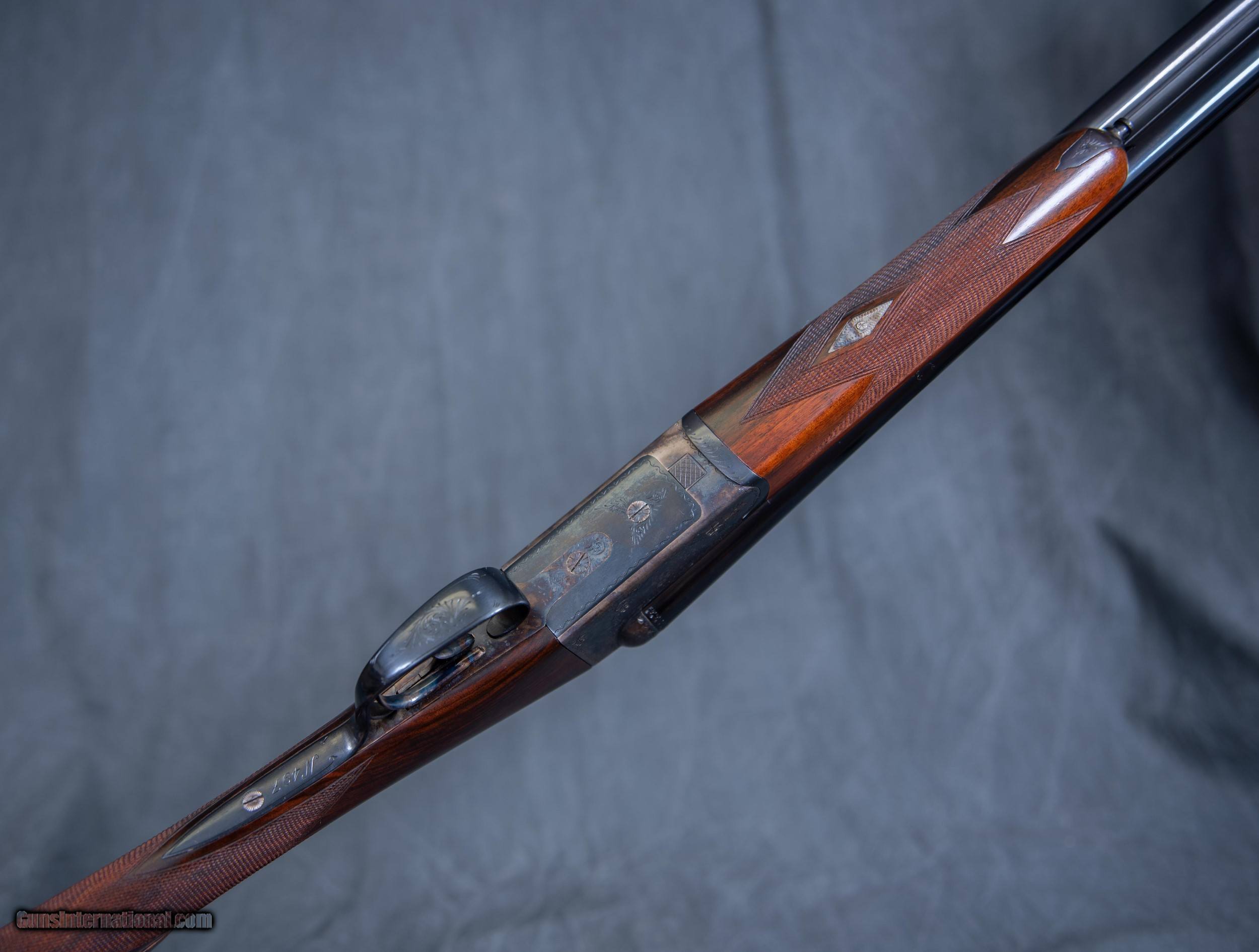 Description: AyA 4/53 20 gauge SxS, Color case hardened scroll engraved action, 29" bbls. w/ 2 3/4" chambers, Concave rib, Chokes: Right .624 / .007 / IC & Left .623 / .013 / M, Double triggers, Automatic ejectors, Automatic safety, Well-figured straight grip stock w/ adjustable comb & Pachmayr SC100 pad, Splinter forearm, Stock Dimensions: DC: 1 5/8" x DH: 2 5/16" x Cast: 3/8" OFF at Heel x LOP: 14 7/8", Weight: 6 lb., Condition: Very Good-Excellent, Made in Spain circa 2004, Serial #16.03.497.04 (C7888) Current MSRP: $6000+ FIELDSPORT: $3995. To see and enjoy the entire inventory of fine shotguns, rifles and handguns on display in the Fieldsport Gun Room, please visit us at: FieldsportLTD SOLD |