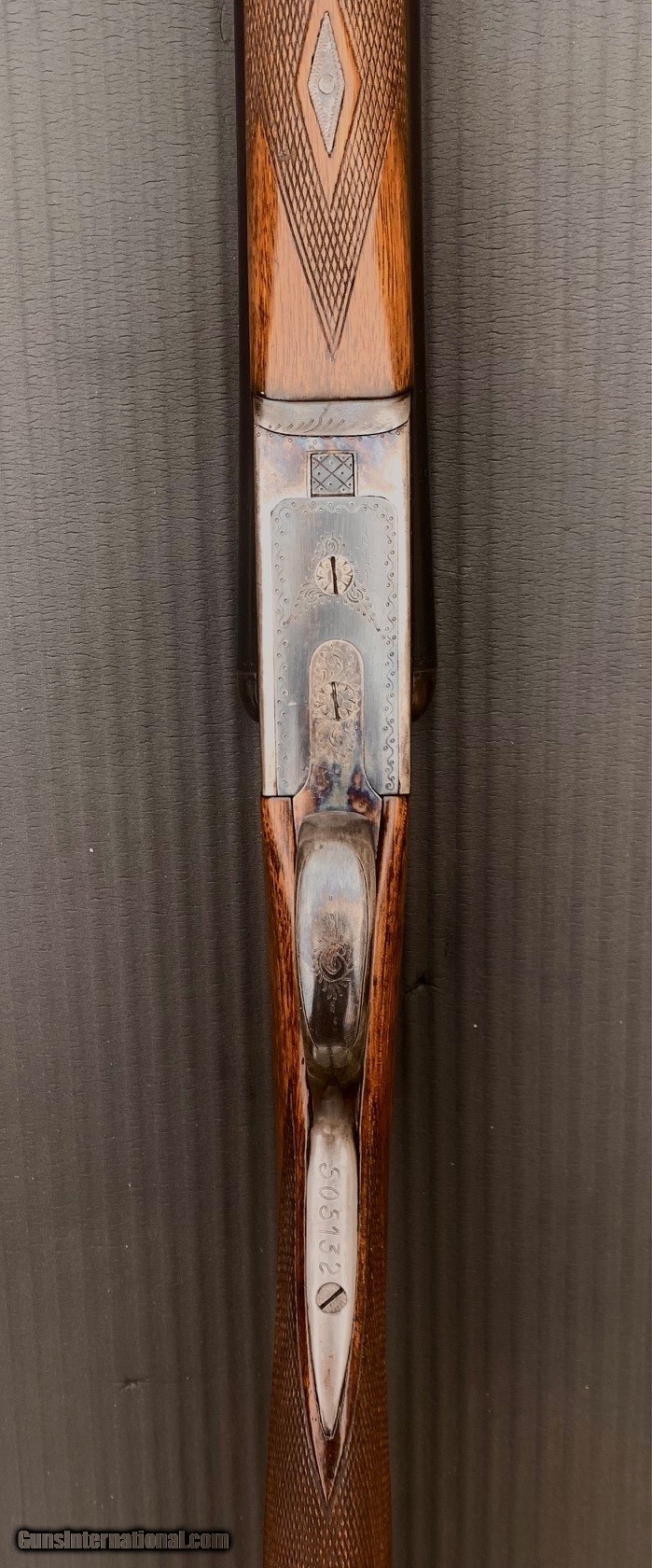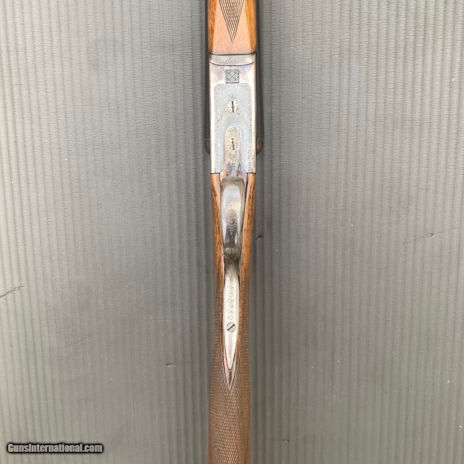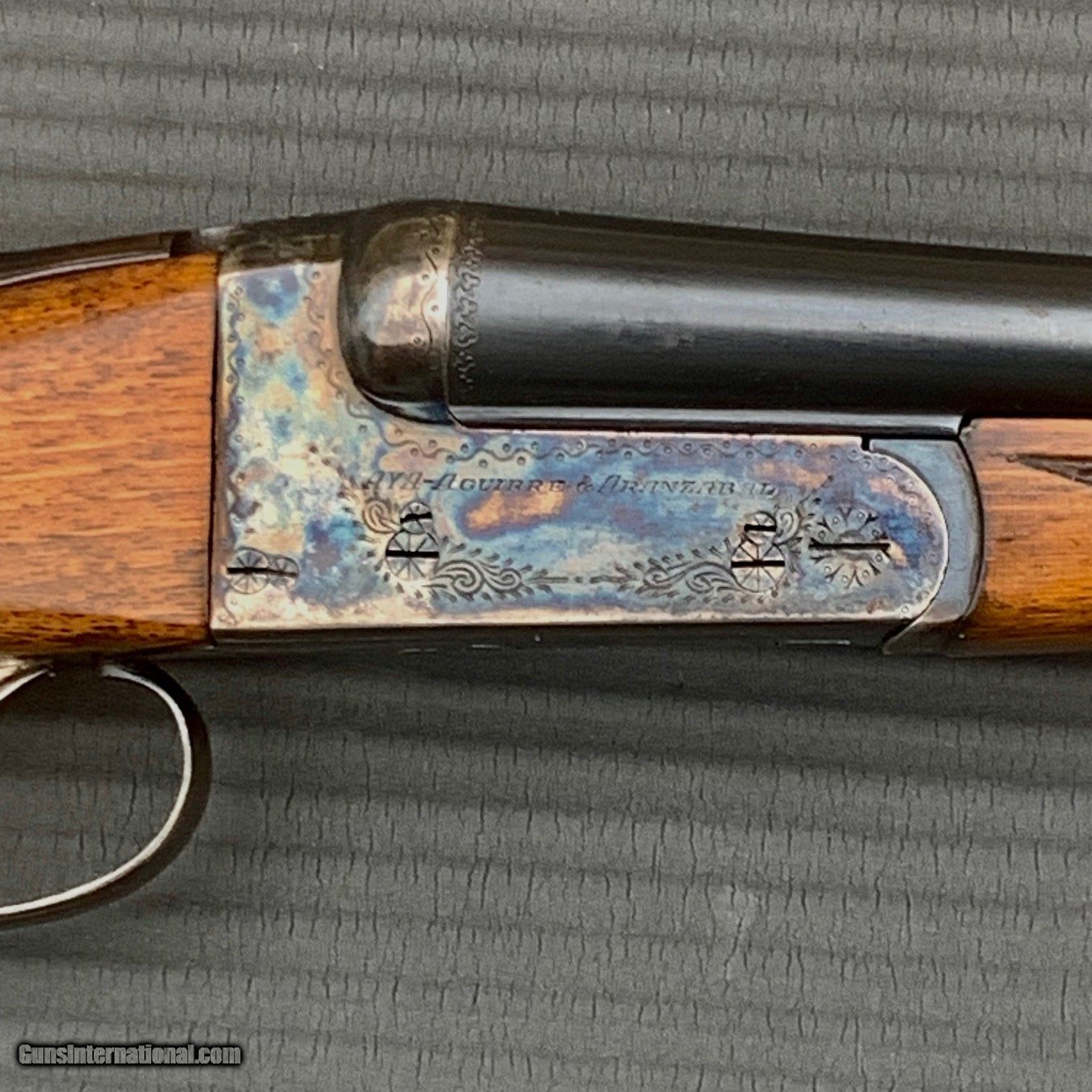 Description: Nice little #4 20ga box lock with ejectors. Arguably the best small bore game gun for the money to be had. 27" barrels that have had chokes opened to IC/Cyl. Locks up tight with shiny bores. Wood is in excellent condition and vibrant case coloring on the action. Some small pitting on rib and barrels (see pic) but in very good condition overall. Gun has wonderful balance and a real joy to shoot. Ideal for upland birds and a lot of fun on the skeet course too. Just an overall great little shooter! SOLD Shotgun Gauge: 20 Gauge Manufacturer: AyA Model: #4 53 Barrel Length: 27” Chambers: 2 3/4” Ejectors: Yes Bore Condition: Excellent Action: Boxlock Triggers: Double LOP: 14 5/8” Choke Left: Imp Cyl Choke Right: Cyl |