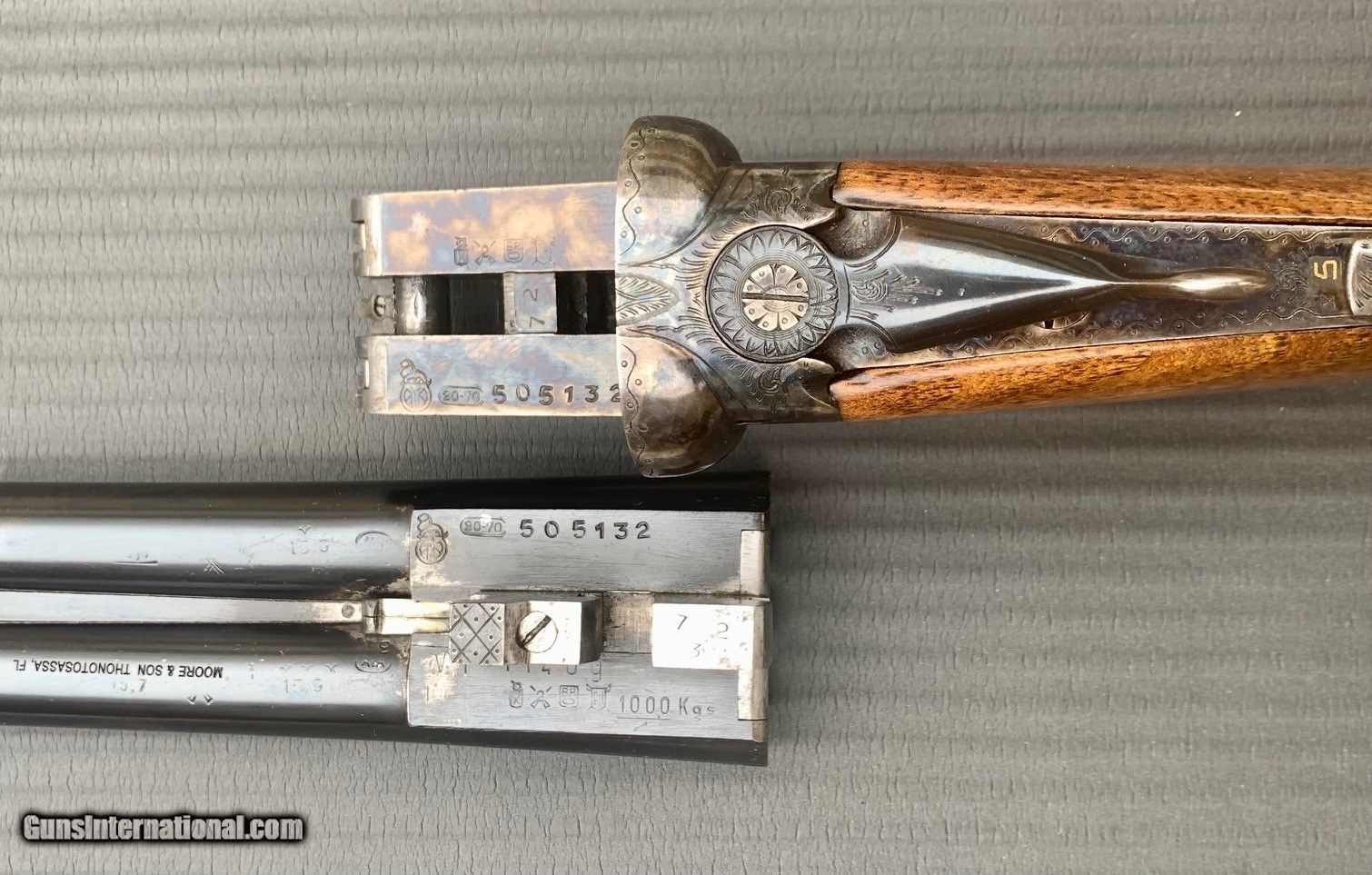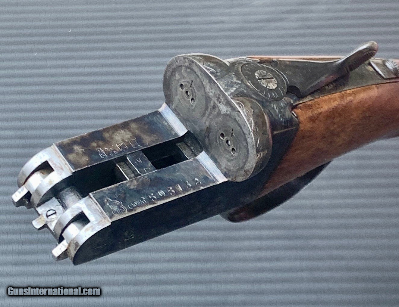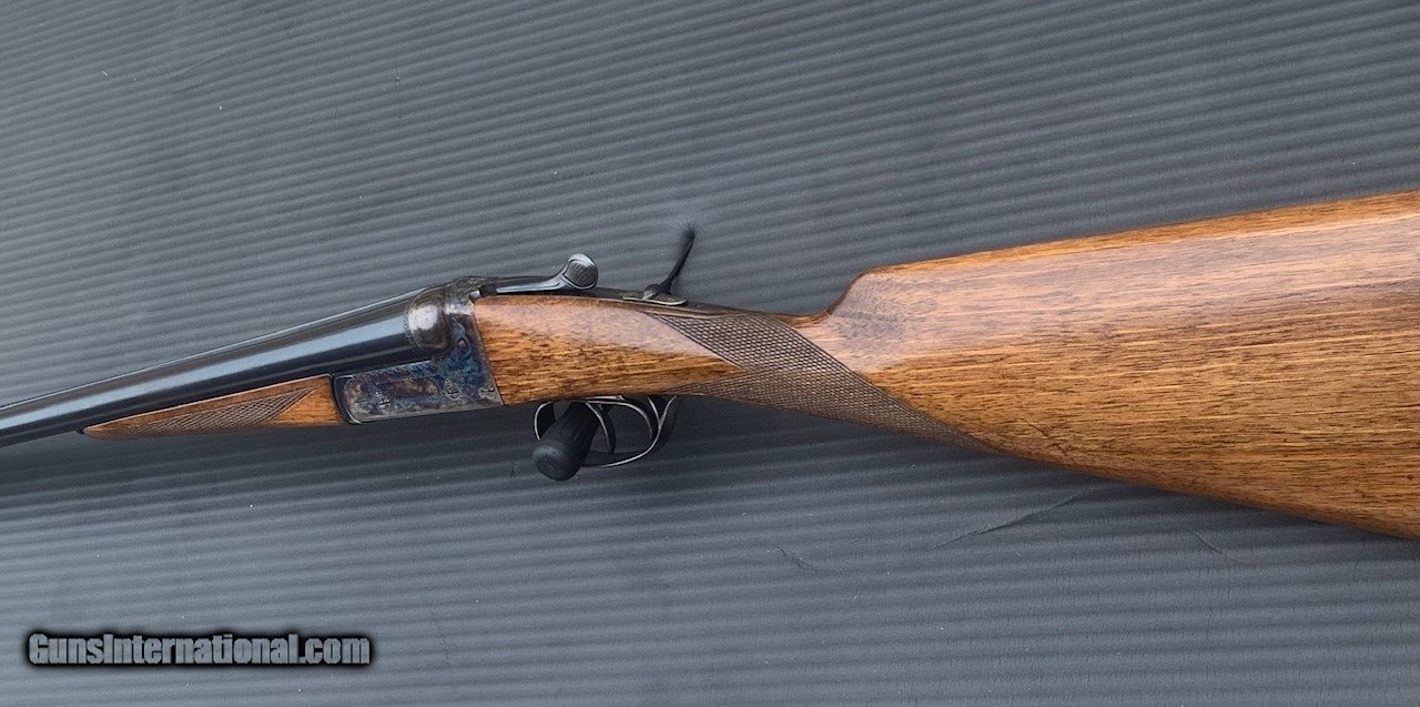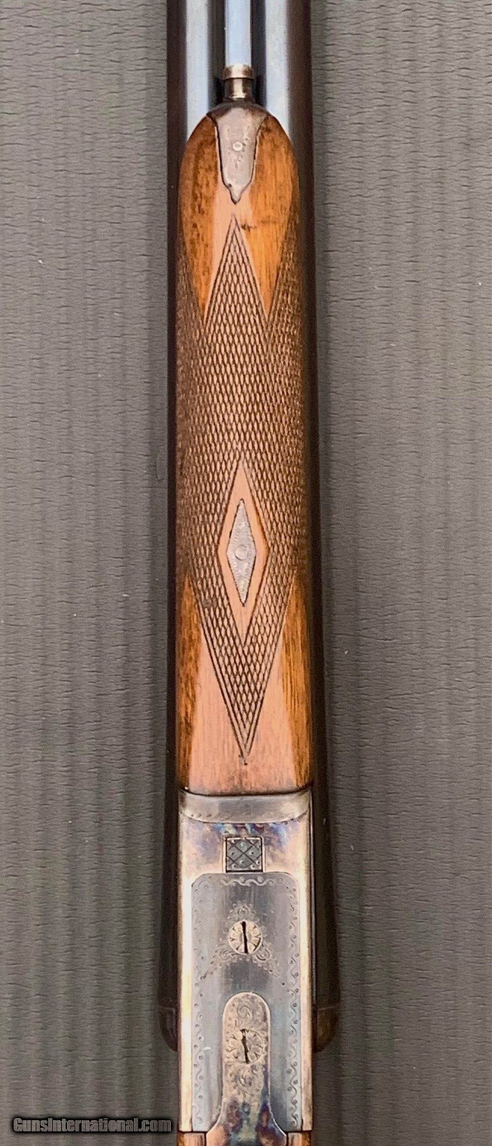 Description: Nice little #4 20ga box lock with ejectors. Arguably the best small bore game gun for the money to be had. 27" barrels that have had chokes opened to IC/Cyl. Locks up tight with shiny bores. Wood is in excellent condition and vibrant case coloring on the action. Some small pitting on rib and barrels (see pic) but in very good condition overall. Gun has wonderful balance and a real joy to shoot. Ideal for upland birds and a lot of fun on the skeet course too. Just an overall great little shooter! SOLD Shotgun Gauge: 20 Gauge Manufacturer: AyA Model: #4 53 Barrel Length: 27” Chambers: 2 3/4” Ejectors: Yes Bore Condition: Excellent Action: Boxlock Triggers: Double LOP: 14 5/8” Choke Left: Imp Cyl Choke Right: Cyl |