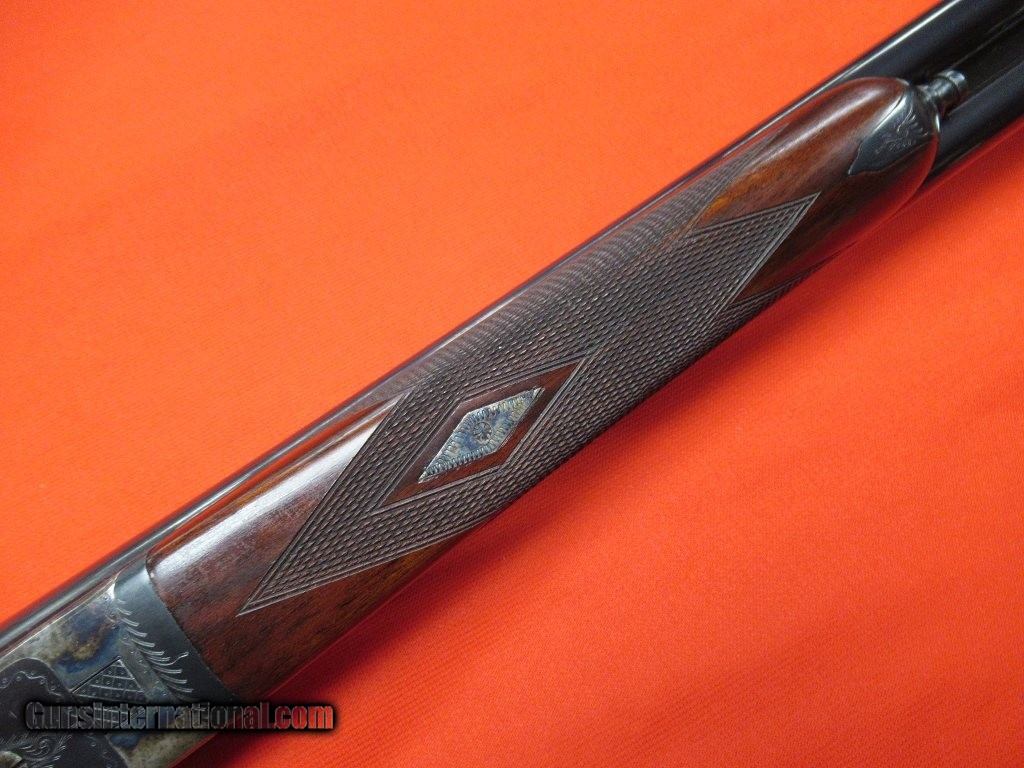 Description: AYA 4/53 28ga/29" IC/M -- Case colored boxlock with double triggers, auto-ejectors, straight grip stock, 14 7/8" over checkered butt. This gun has some very light handling to the wood. Color case and blue are excellent. This gun shows very little use overall. SOLD |