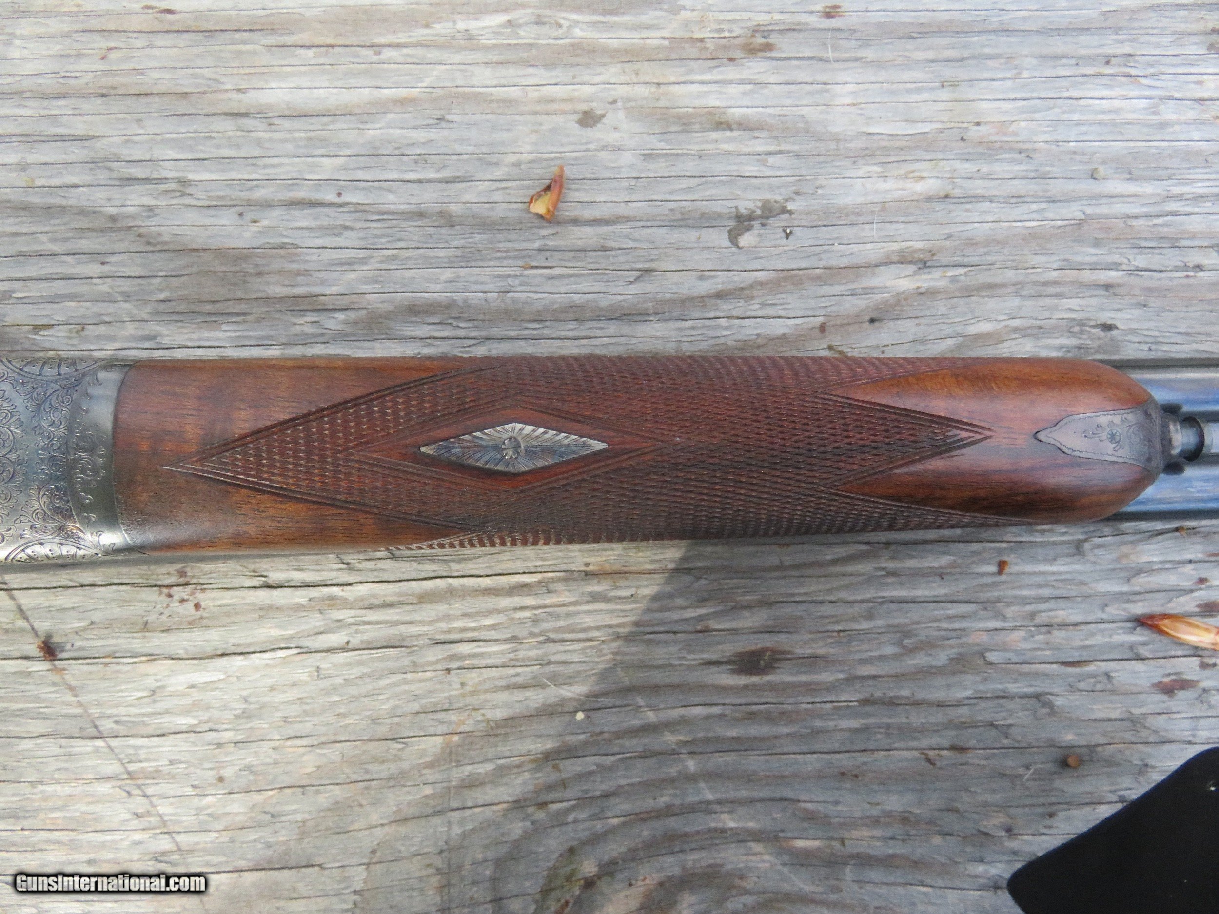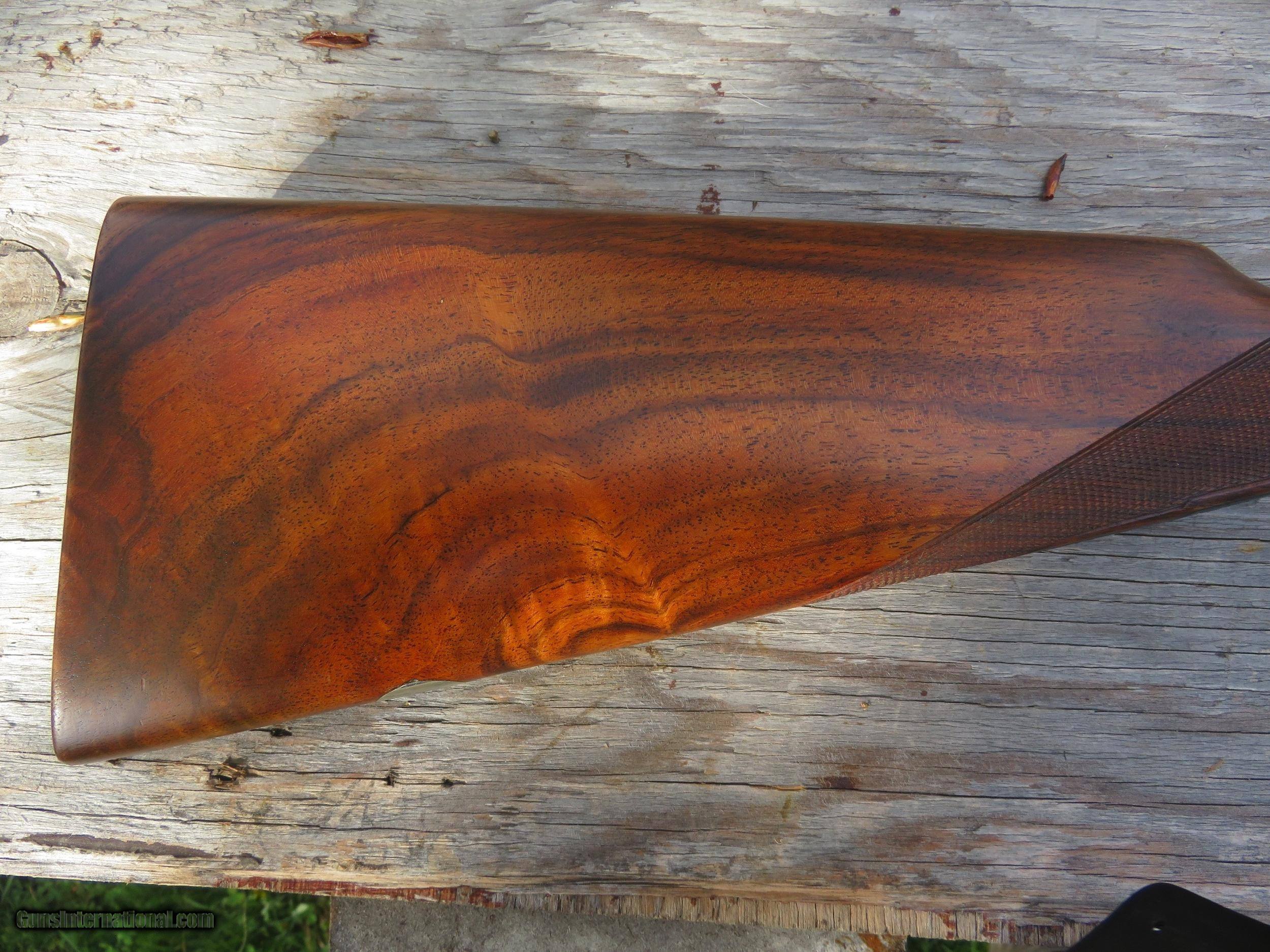 Description: Round Body AyA #2 in overall Excellent condition 98% . Barrels are 27" chokes IC/Mod 3" chambers. 100% engraved in typical #2 style with cocking indicators. Case color remains at 95% . Bluing 98% . Stock LOP is 15" to checkered Butt and has NO marks of any kind is 100% and is nicely figured. Gun weight is 5lb 6 oz. You don't see Round Bodied 410s very often and the style is quite elegant. Please keep in mind that this gun is priced below book value and comes with nice canvas and leather case .Offered at a great (but firm) price of $4995 shipped to your FFL (lower 48) Contact Chris E Nelson christo502003yahoo or call 406 728-9434 SOLD Manufacturer: AyA Model: No.2 Serial Number: 416-05 Bore: 410 Chambers: 3 Ejectors: Yes Condition: 98% Metal Condition: 98% Wood Condition: 100% Bore Condition: 100% Barrels: 27 Barrel Type: Double Action: Sidelock Triggers: Double Gauge Info: 410 Stock: Oil walnut Stock Dimensions: 15 LOP Stock Drop: 2 Stock Cast: 1/8 castoff for right hand Fore End: Splinter Butt Pad: Checkered Butt LOP: 15 LOP Rib: concave game Finish: Oil Weight: 5lb 6oz Sights: Single Manufacture Date: 2005 Chokes: Factory Choke Left: Mod Choke Right: Imp Cyl Engraving: 100% Item Location: Montana Proof:Nitro: Yes |