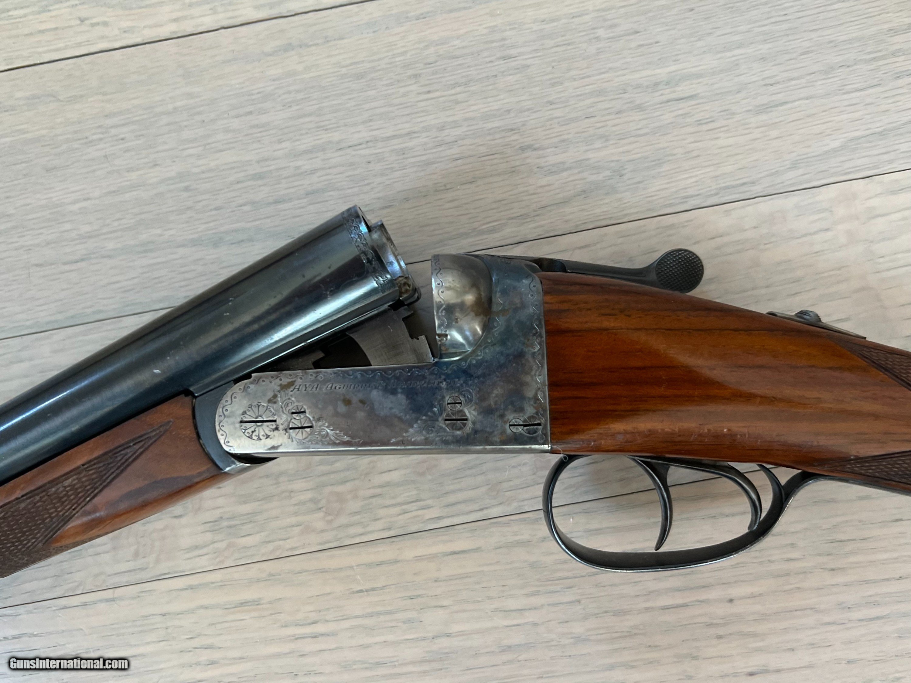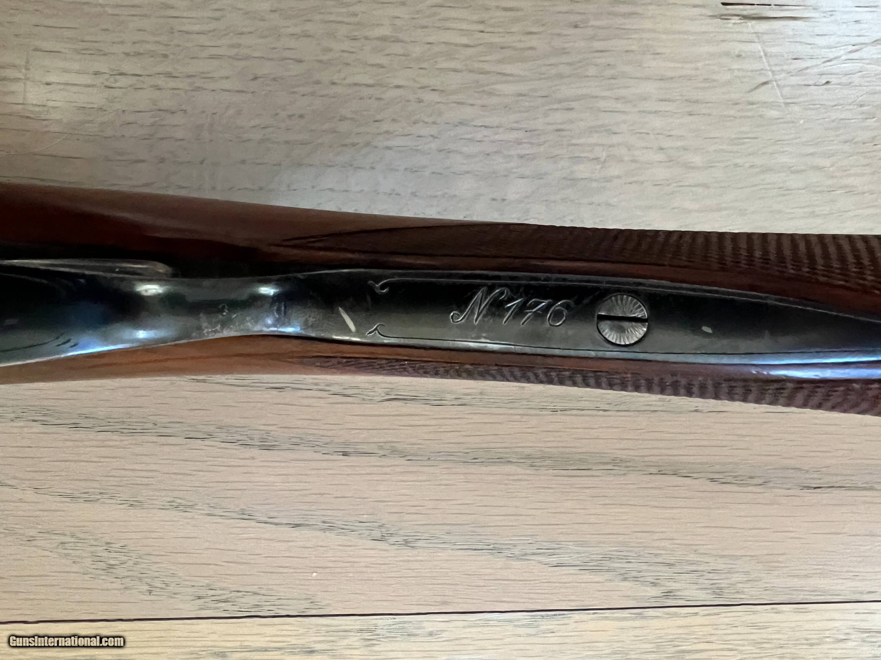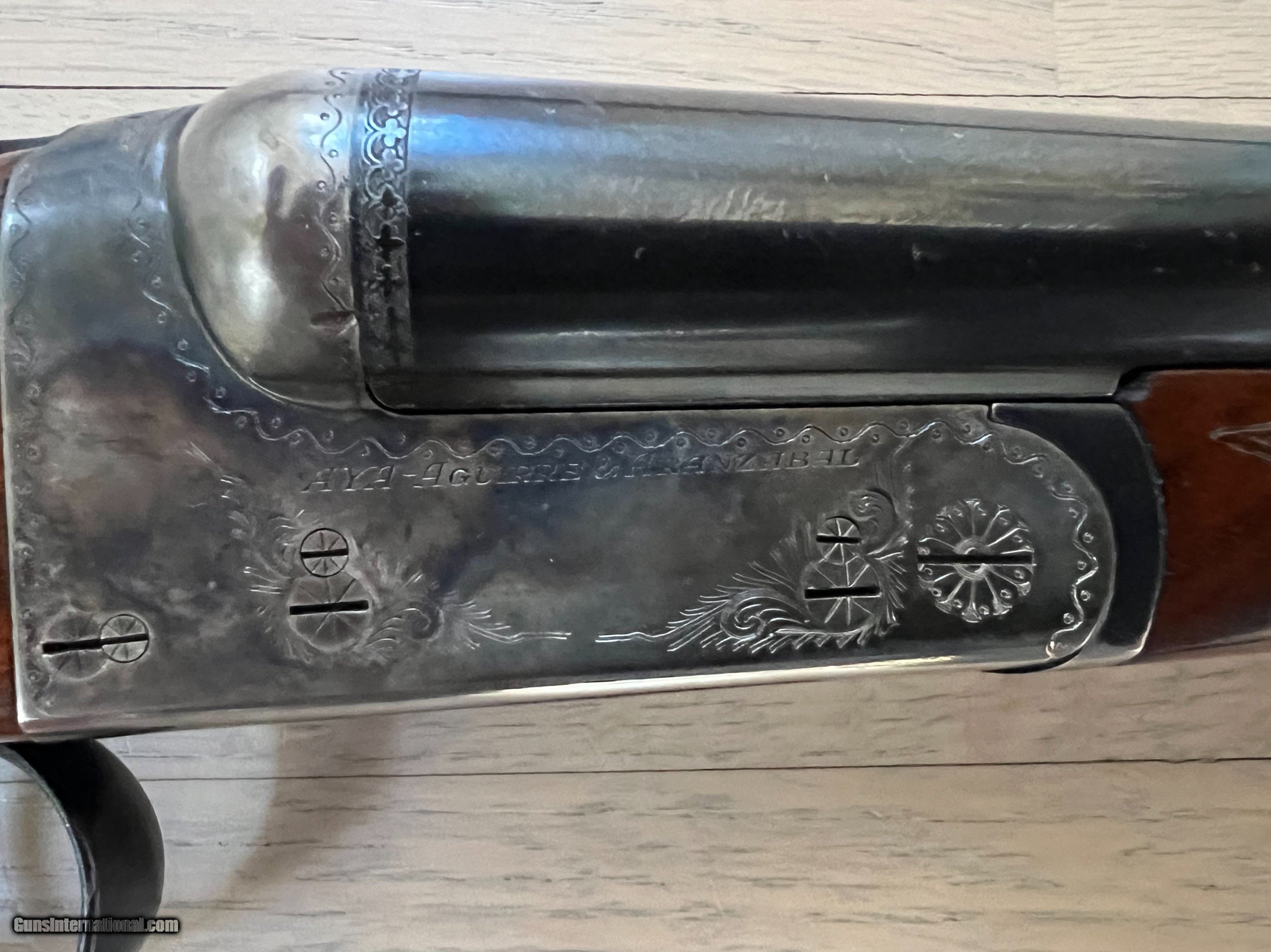 Description: A traditional light weight upland bird gun imported by New England Custom Gun with double triggers, straight stock and splinter forearm. Overall the gun is in great shape with minor character marks and wear. SOLD Shotgun Gauge: 16 Gauge Manufacturer: AYA Model: 453 Serial Number: N176 Chambers: 2 3/4 Ejectors: Yes Barrel Type: Steel Action: Boxlock Triggers: Double Stock Comb: 1 1/2 Stock Heel: 2 1/8 Stock Cast: Neutral LOP: 14 7/8 Weight: 6 lbs Choke Left: Mod Choke Right: Imp Cyl Item Location: MA |
