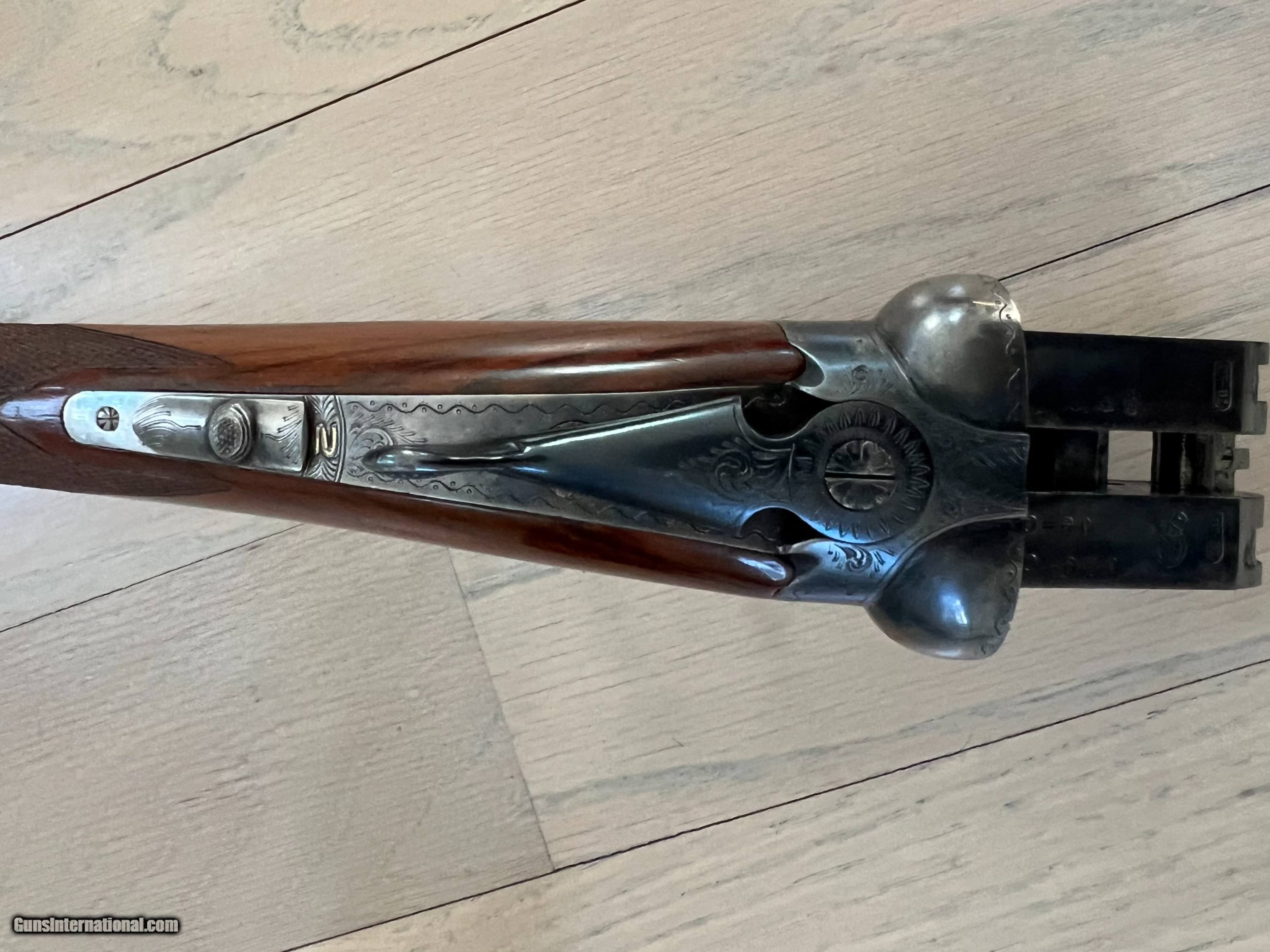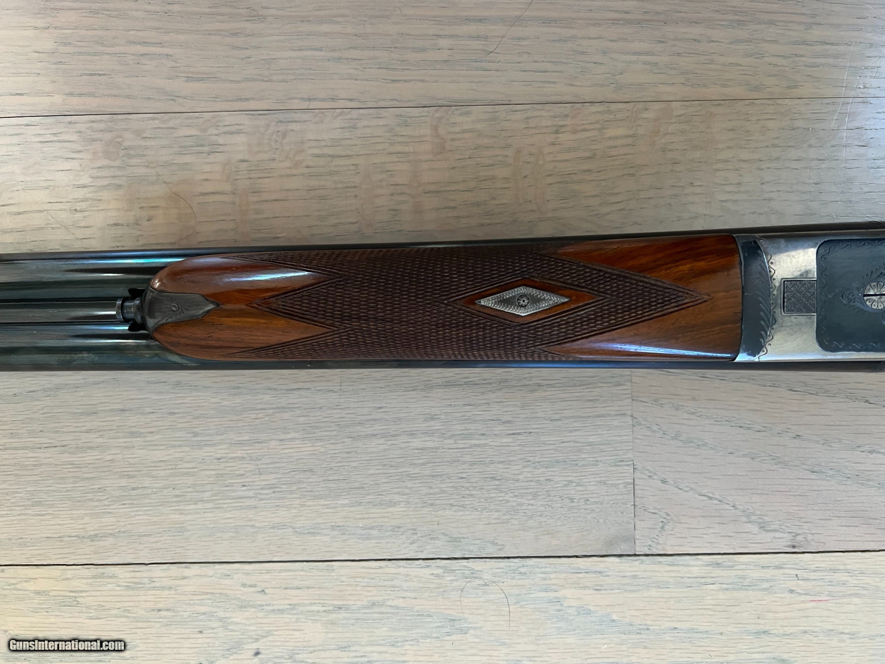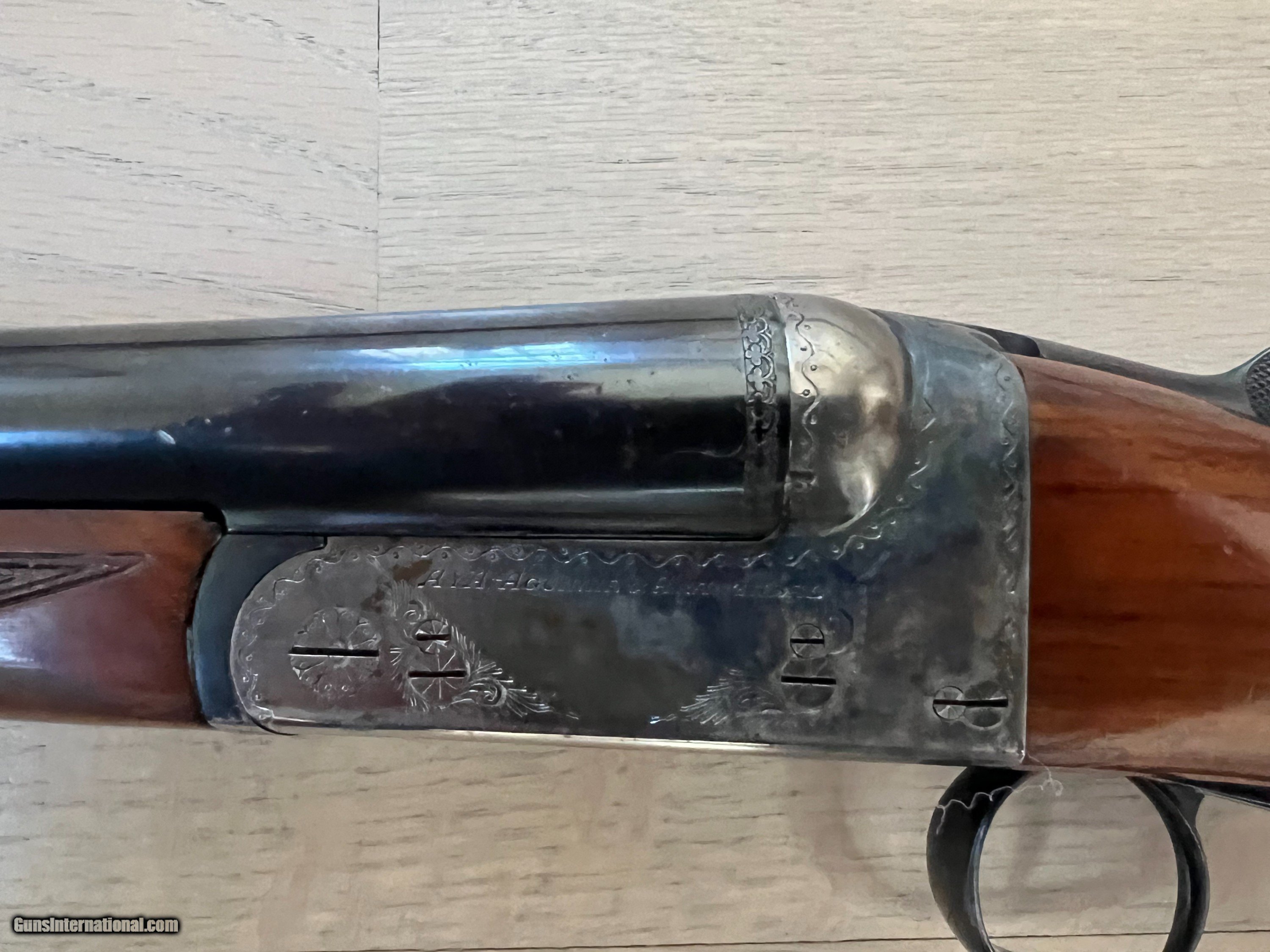 Description: A traditional light weight upland bird gun imported by New England Custom Gun with double triggers, straight stock and splinter forearm. Overall the gun is in great shape with minor character marks and wear. SOLD Shotgun Gauge: 16 Gauge Manufacturer: AYA Model: 453 Serial Number: N176 Chambers: 2 3/4 Ejectors: Yes Barrel Type: Steel Action: Boxlock Triggers: Double Stock Comb: 1 1/2 Stock Heel: 2 1/8 Stock Cast: Neutral LOP: 14 7/8 Weight: 6 lbs Choke Left: Mod Choke Right: Imp Cyl Item Location: MA |