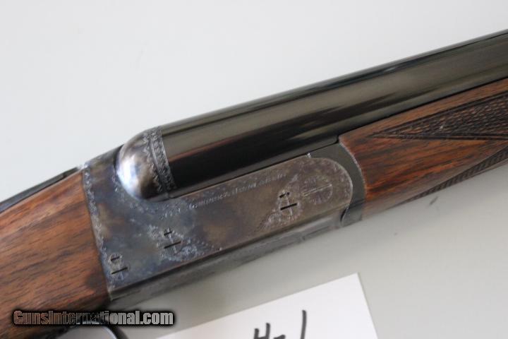Description: AYA Model 453. 20 ga. 30" Mod/full. Here is a very fine AYA boxlock shotgun that you do not normally see with 30"barrels. The receiver on this gun has a beautiful case coloring with light scroll engraving. The wood on this gun has been upgraded to a higher grade and comes with AYA best grade finish. This wood has many more coast of oil and hand rubbing than the normal 453 so there is an extra charge for this. A traditional upland gun with double triggers, straight stock and a splinter forearm. We can alter the chokes to what ever the buyer wants. Gun is almost new. Layaways ok. Only $2995. Quality Arms, Houston, TX. Call Direct: 281-870-8377 ( 1 1/2 x 2 1/4 x 15 * 6 lb. ) LL-4-1 SOLD |