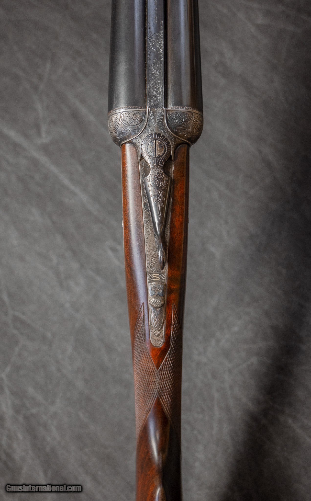 Description: Specifications Maker: AYA/AGUIRRE y ARANZABAL Model: No 2 Gauge/Caliber: 16 Barrel Length: 28" Chambers: 2 3/4" Rib Design:CONCAVE / SMOOTH Weight: 6lbs. 8ozs. Bore/Chokes Right/Bottom: .668/ .010/ SKT. IC Left/Top: .668/ .020/ MOD Choke Tubes:N/A Stock Dimensions Drop At Comb:1 1/4 Drop At Face:1 5/8 4 1/2 Drop At Heel:2 1/8" Cast At Face:3/16" OFF 4 1/2" Cast At Heel:1/4" OFF Length Of Pull:14 3/16 Pitch:2 1/2" 5 DEGREES Special Features: CASE HARDENED SIDELOCK ACTION CHURCHILL PREMIER STYLE ENGRAVING AYA SINGLE SELECTIVE TRIGGER EJECTORS NO. 1 WOOD UPGRADE WITH AYA BEST QUALITY OIL FINISH WELL FIGURED STRAIGHT GRIP STOCK W/ CHECKERED BUTT & SPLINTER FOREARM AUTO SAFETY LEATHER & CANVAS HARDCASE MADE IN SPAIN Circa: 2003/ SERIAL # 16.03.280.03 Number : C9340 SOLD |